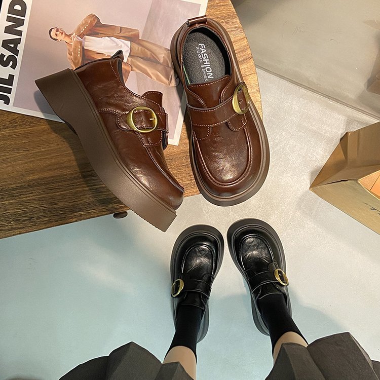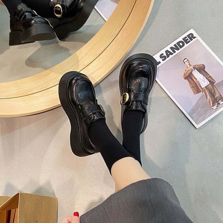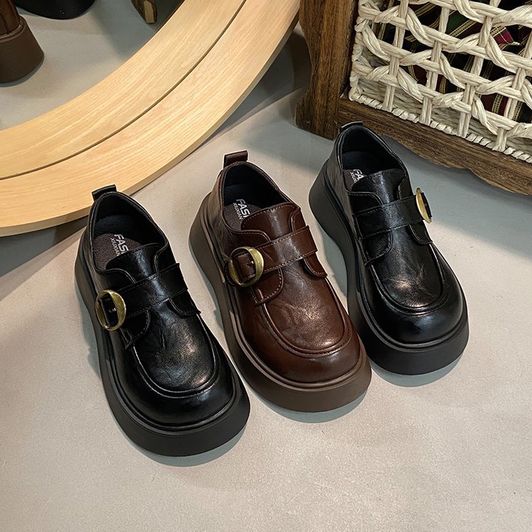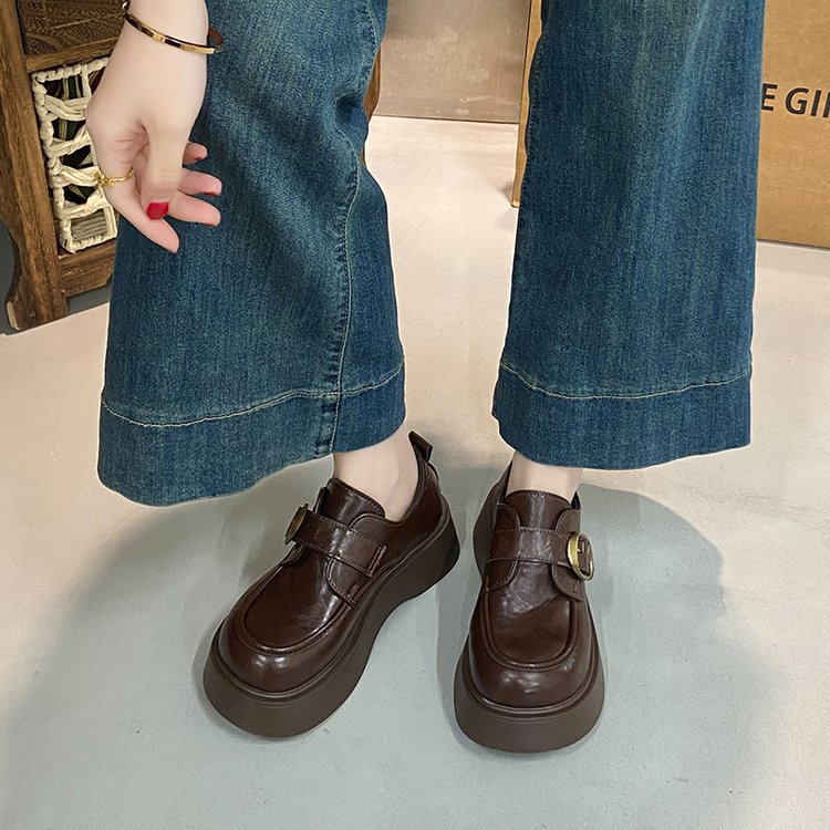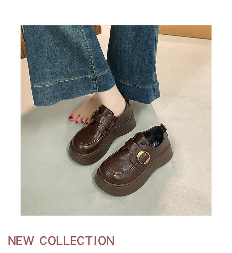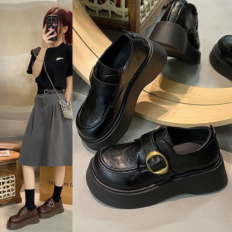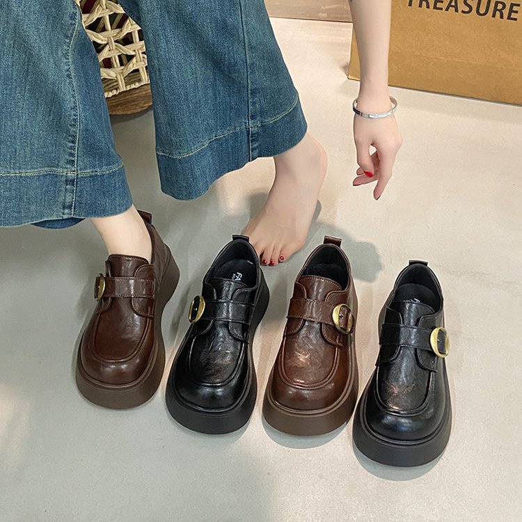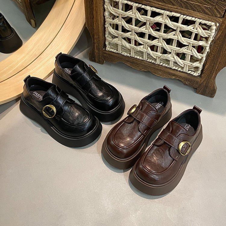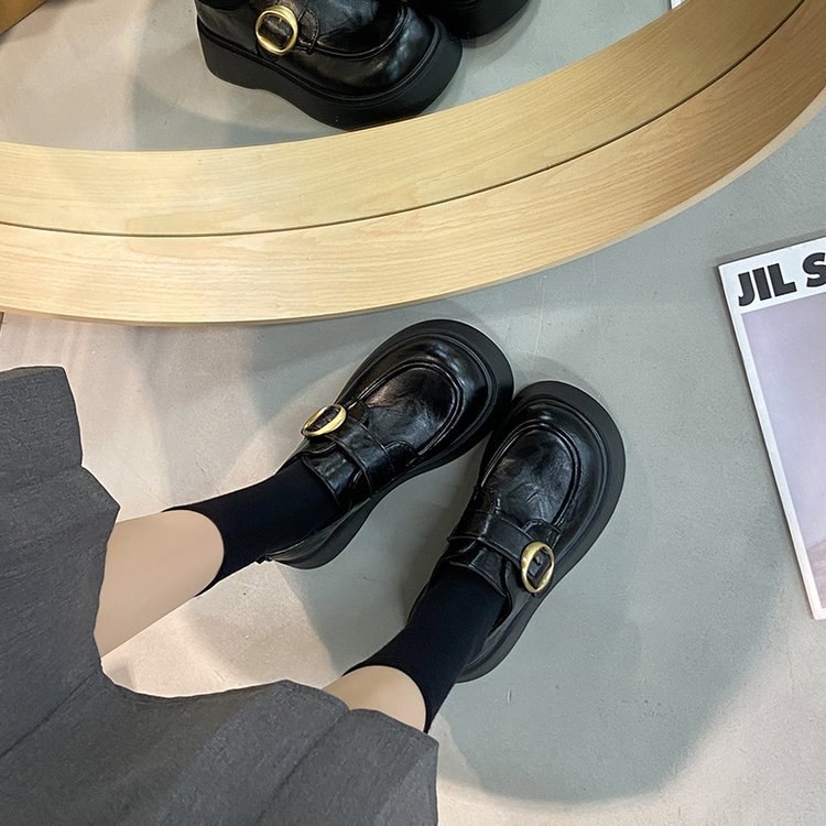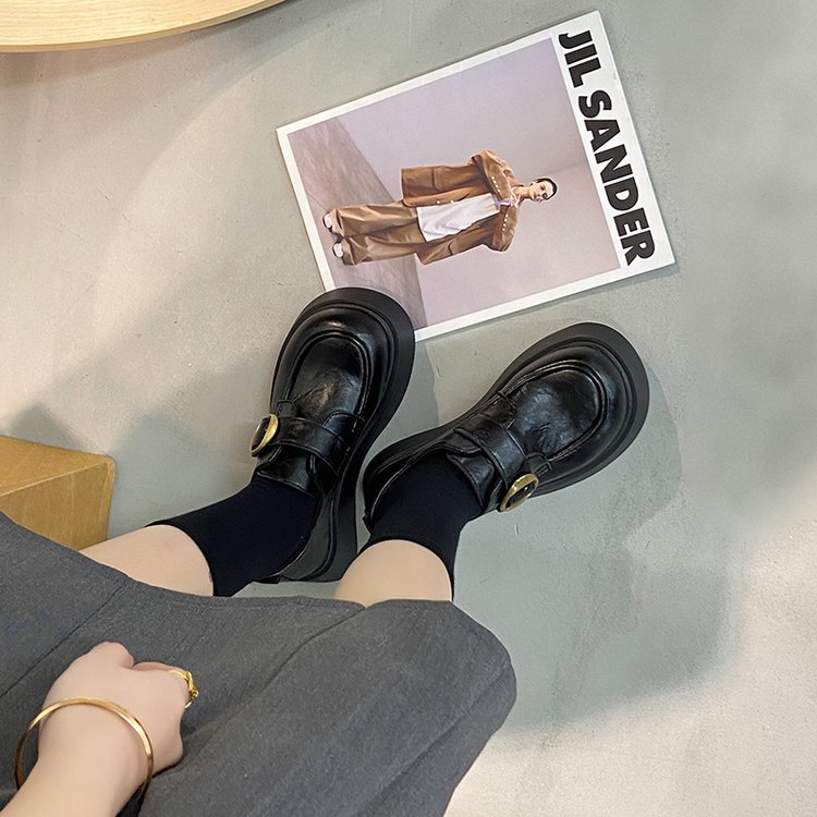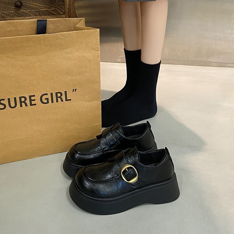 여성용 블랙 슬립온 로퍼 2025 봄 신작 다용도 두꺼운 밑창 신발 영국식 부드러운 밑창 작은 가죽 신발스토어 가기