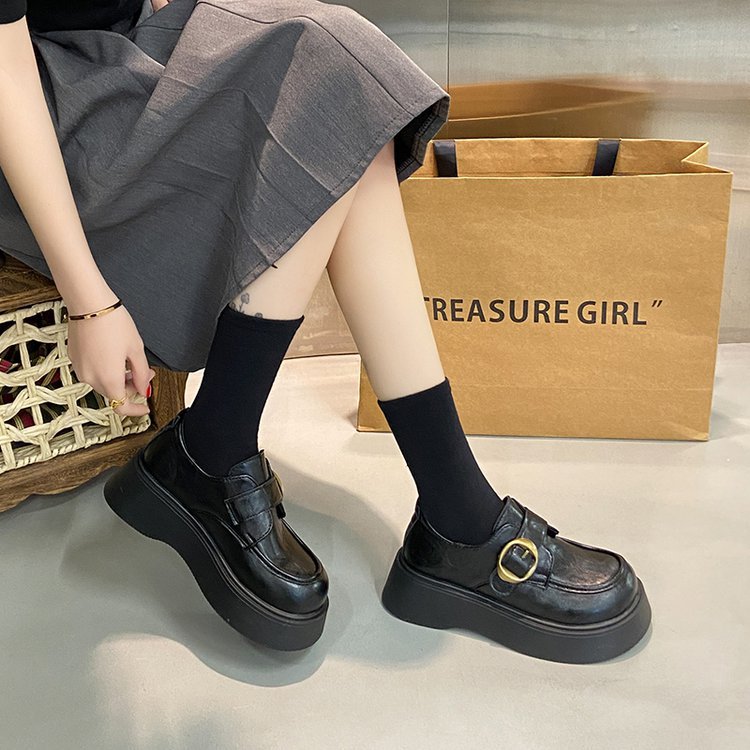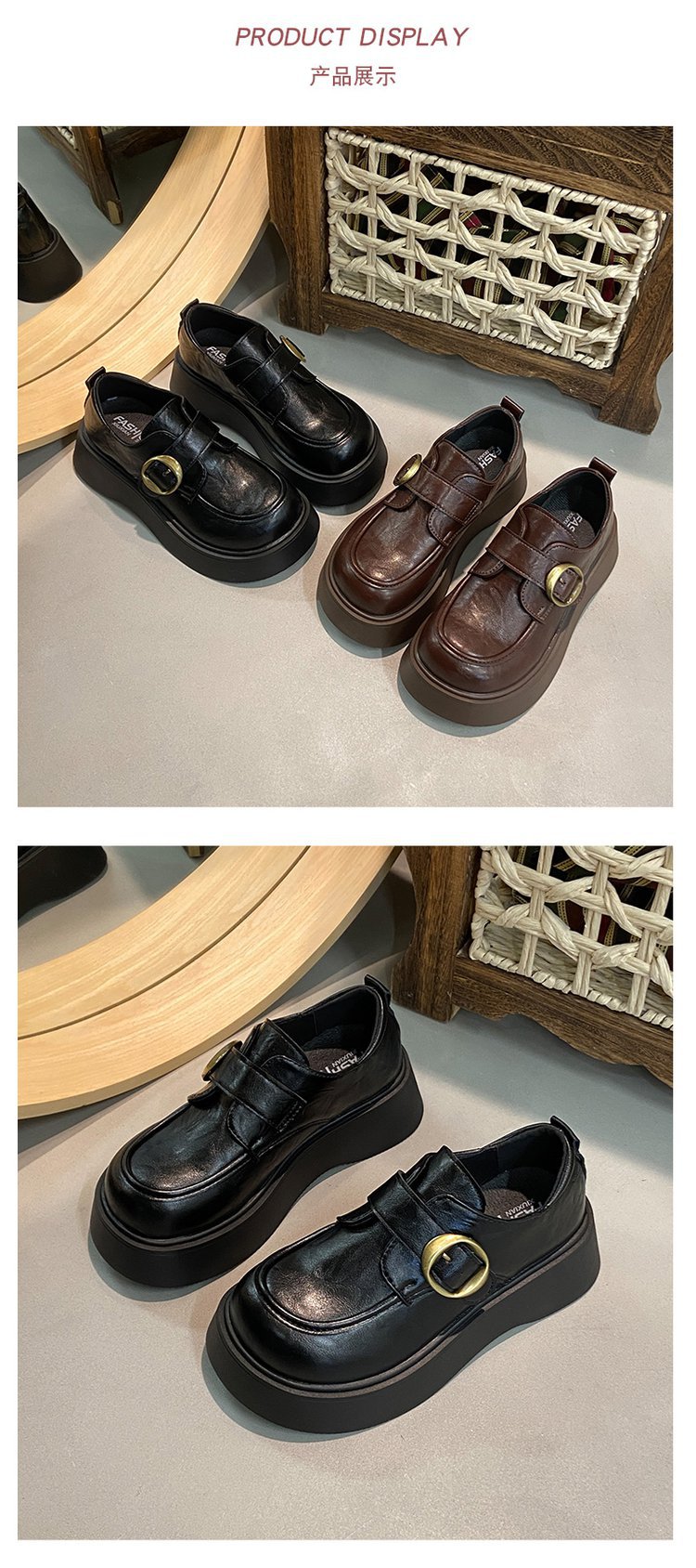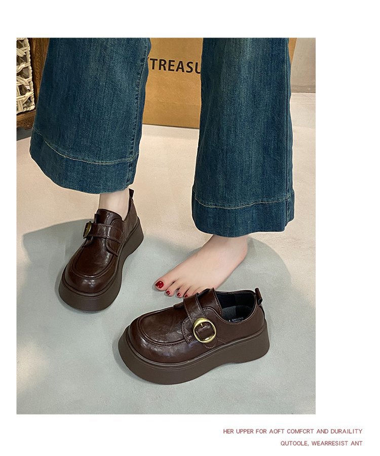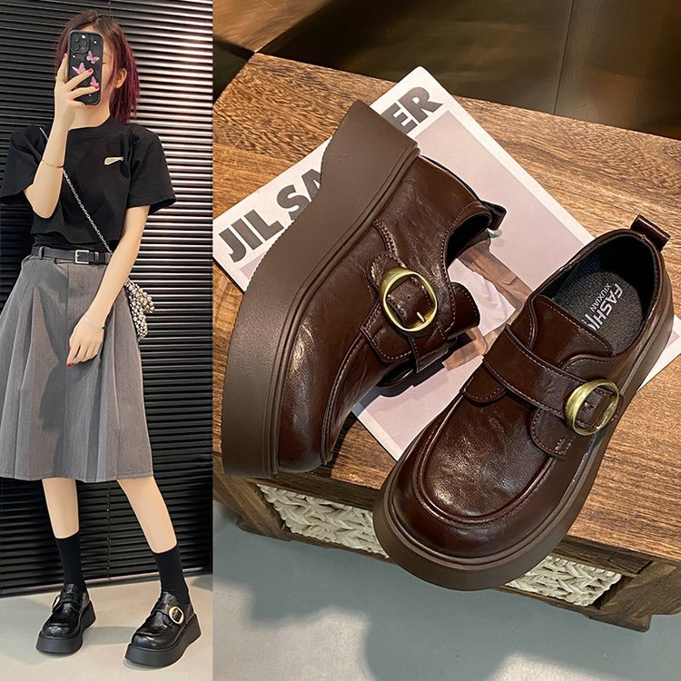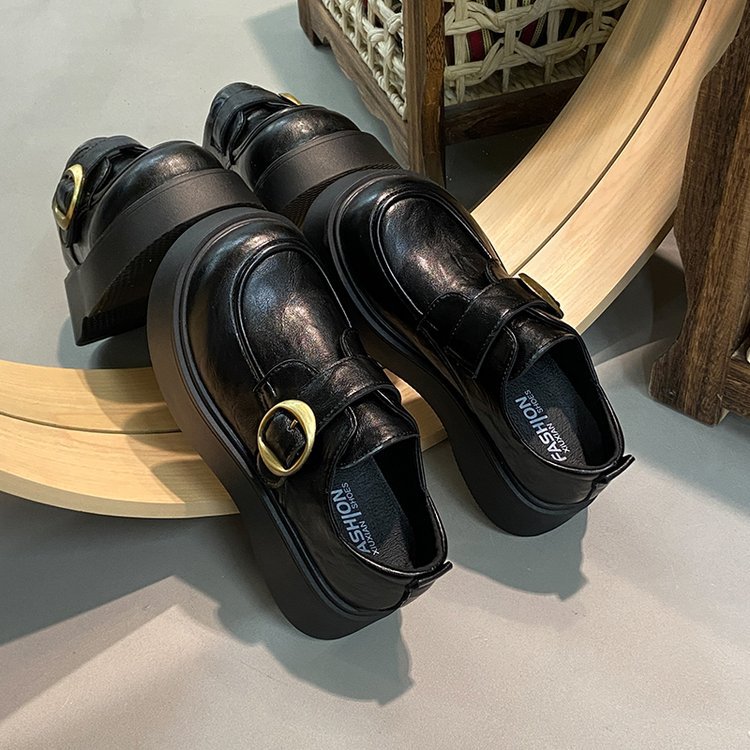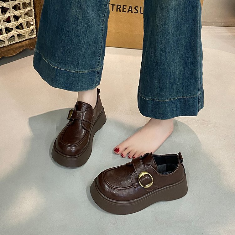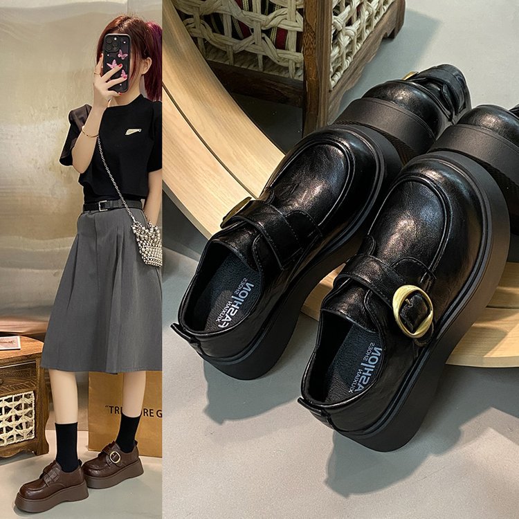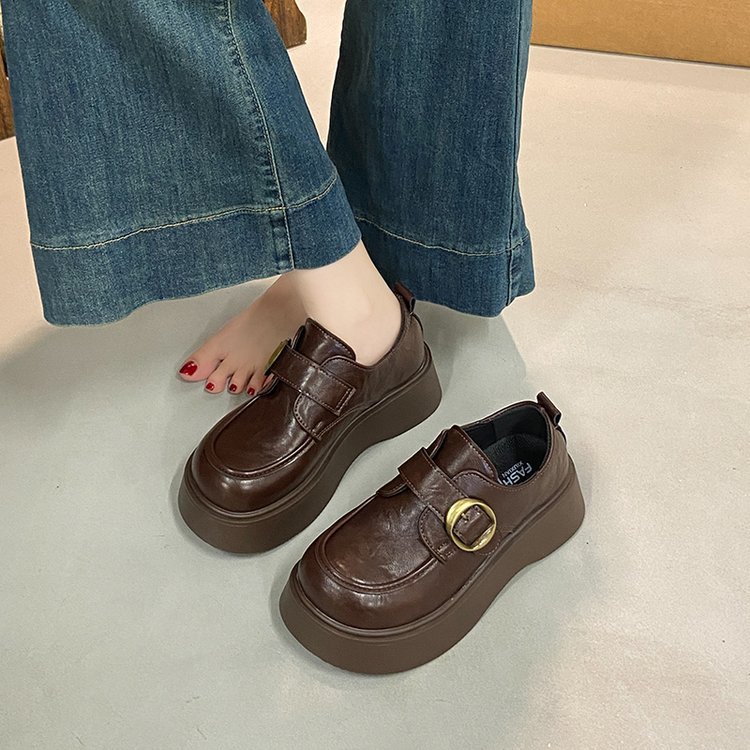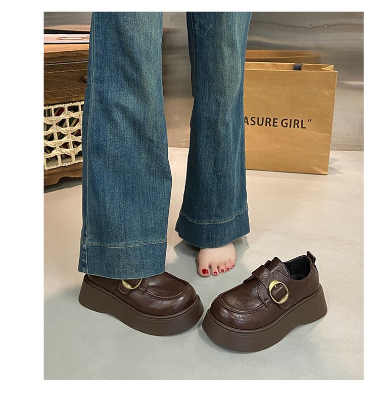 여성용 블랙 슬립온 로퍼 2025 봄 신작 다용도 두꺼운 밑창 신발 영국식 부드러운 밑창 작은 가죽 신발스토어 가기