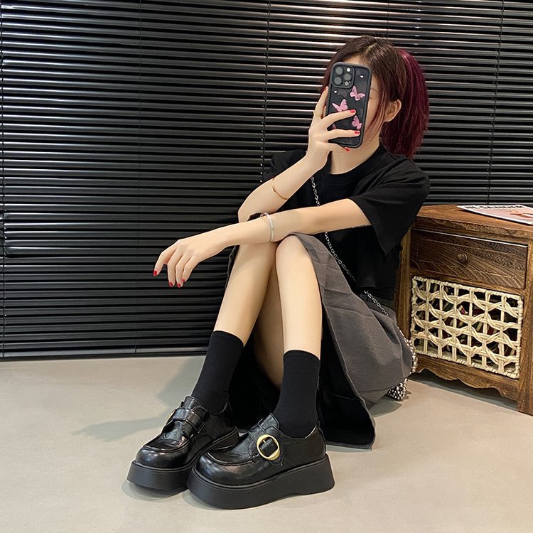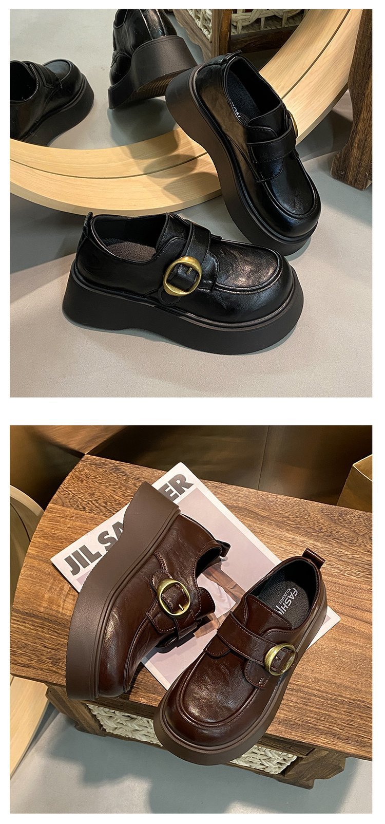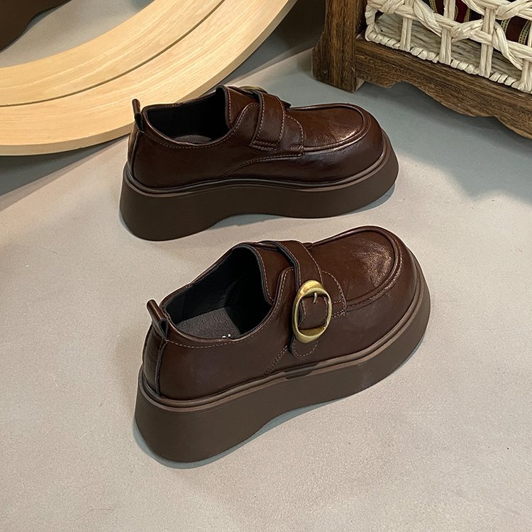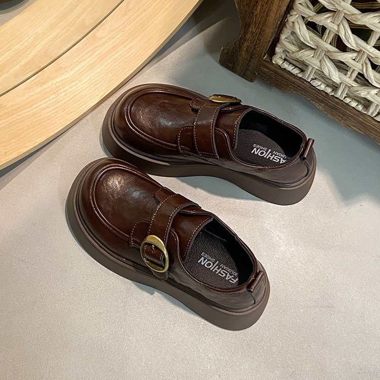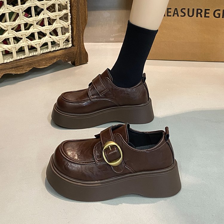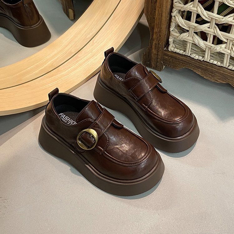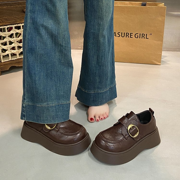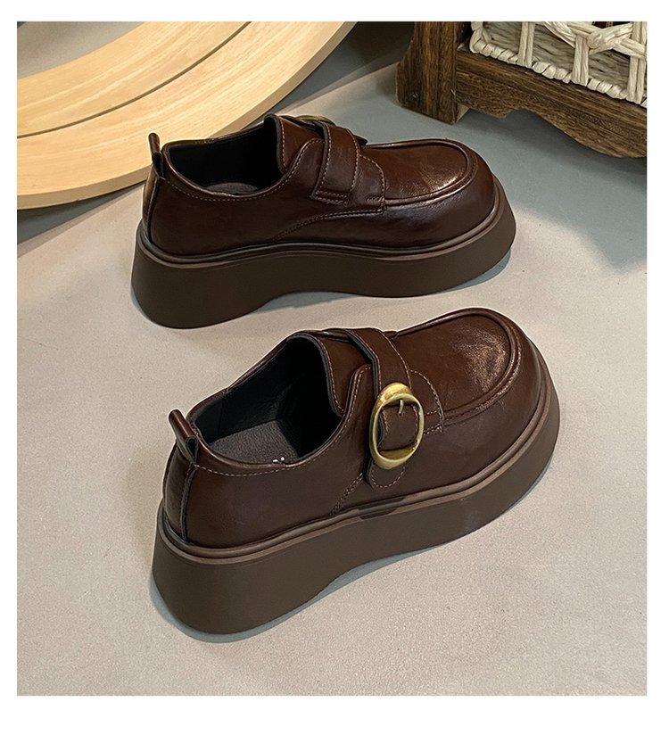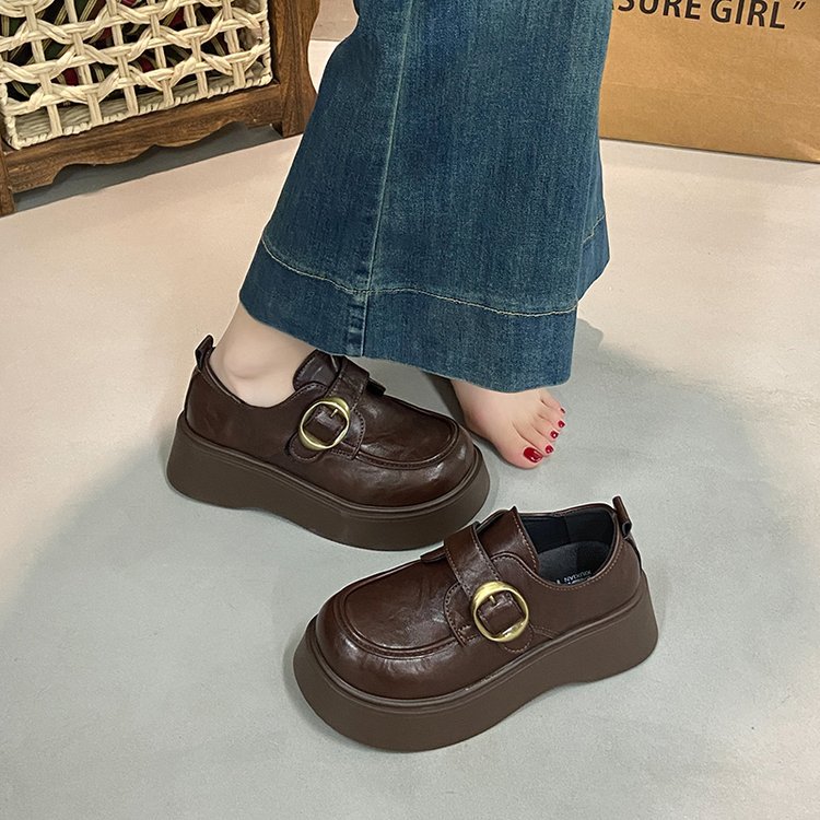 여성용 블랙 슬립온 로퍼 2025 봄 신작 다용도 두꺼운 밑창 신발 영국식 부드러운 밑창 작은 가죽 신발스토어 가기