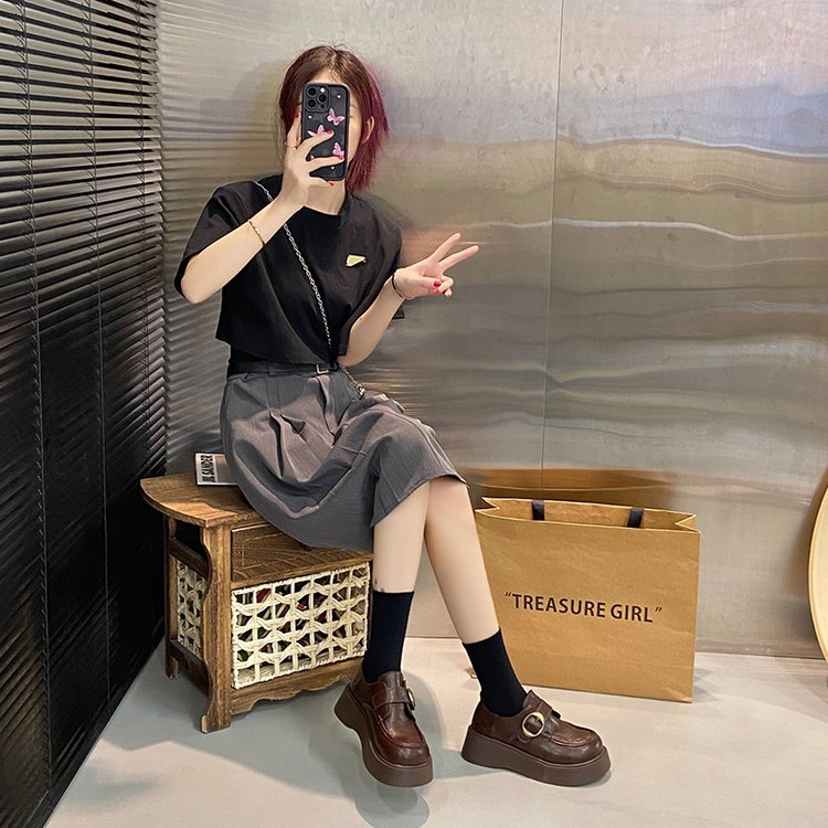 여성용 블랙 슬립온 로퍼 2025 봄 신작 다용도 두꺼운 밑창 신발 영국식 부드러운 밑창 작은 가죽 신발