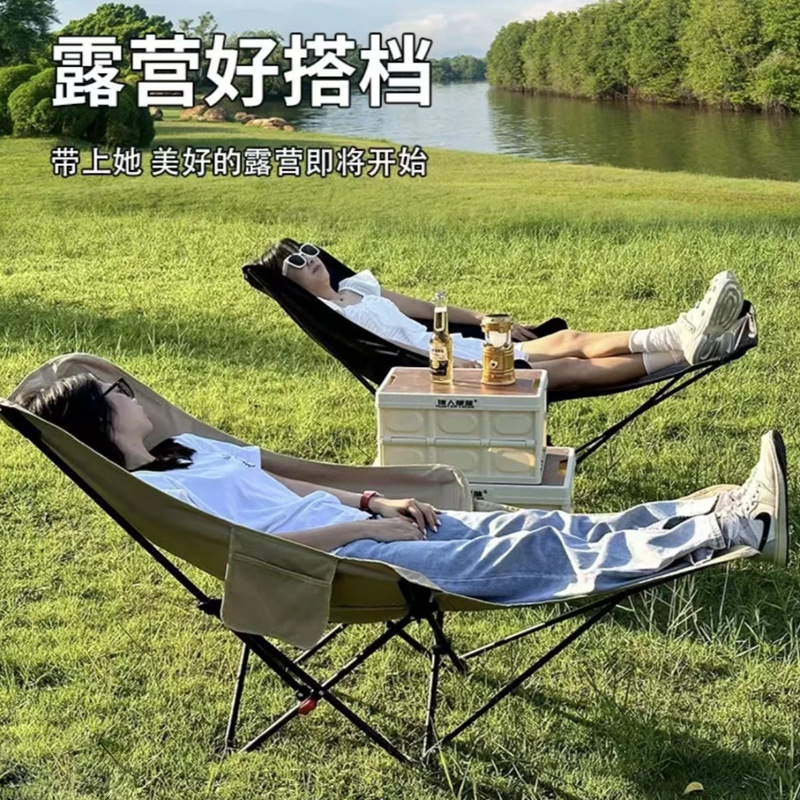 户外躺椅折叠椅子带腿托三档调节便携午休月亮椅子野外露营折叠椅