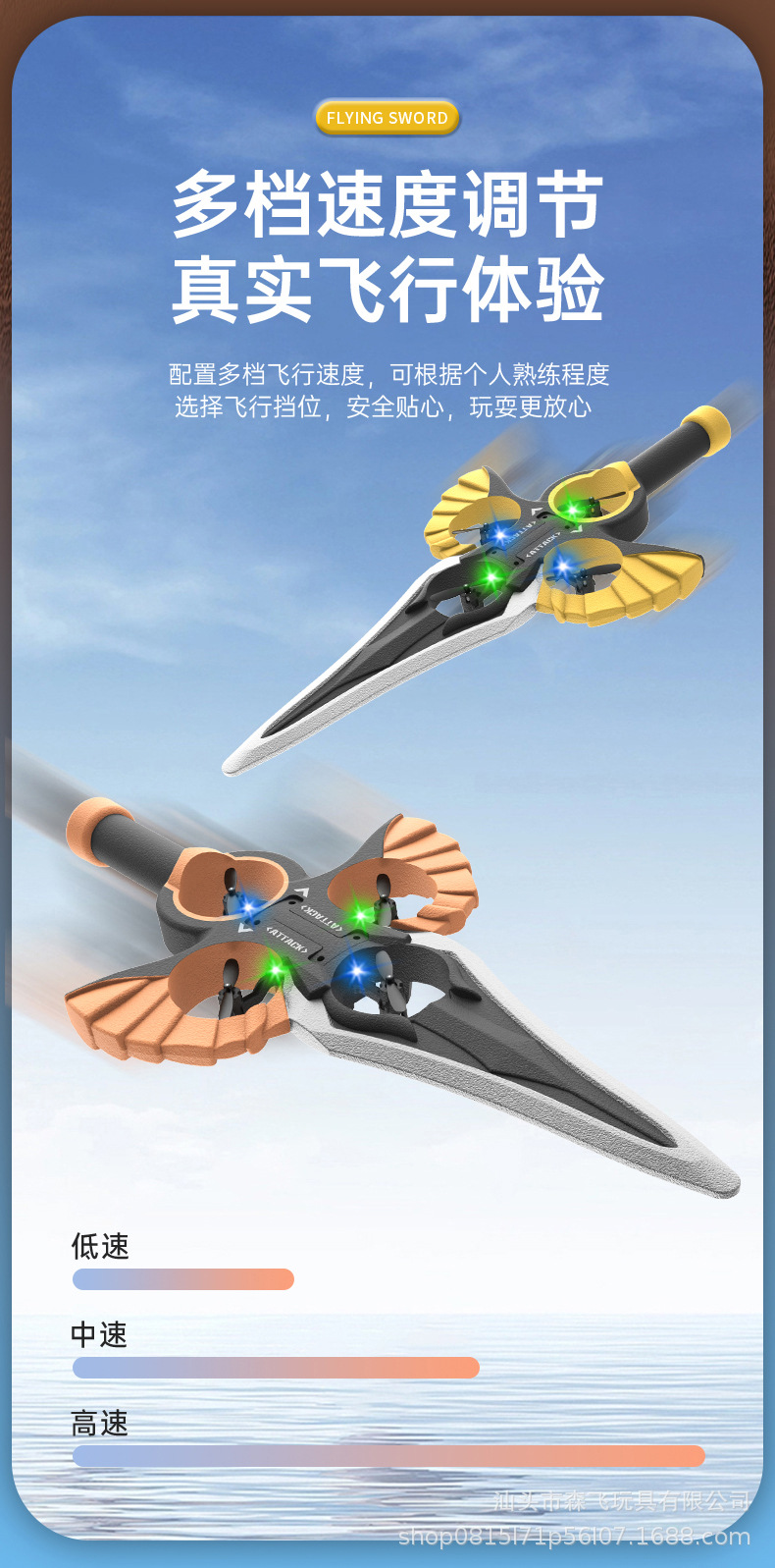 • 多种操控方式:宝剑飞行器玩具通常具备手柄遥控和体感遥控两种方式。手柄遥控可以让玩家精准地控制飞行器的飞行方向、高度和速度等,感受操控的精准性和稳定性。体感遥控则通过玩家的手势来控制飞行,增加了游戏的趣味性和互动性。