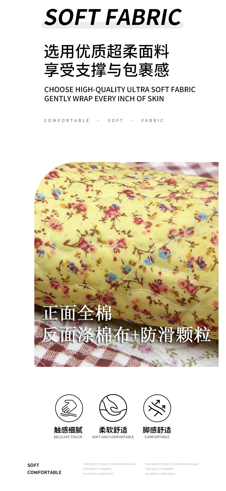 面 料:正面全棉,反面是涤棉布+防滑颗粒