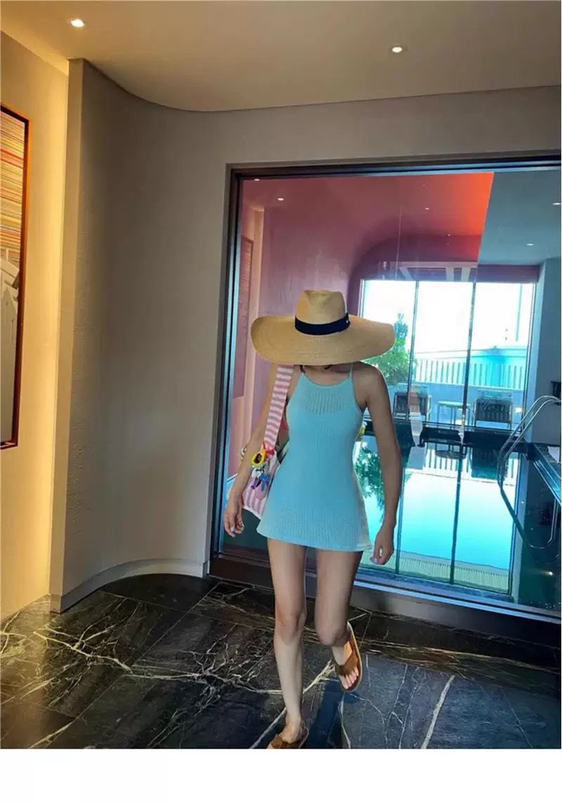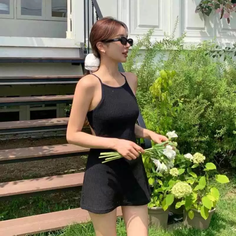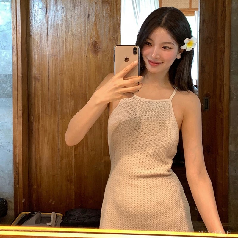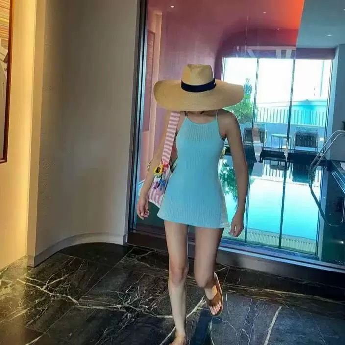 5색 니트 크로스보더 2025 한국 신작 백리스 스트랩 하이웨이스트 배 커버 보수적인 원피스 스커트 수영복 여성용스토어 가기