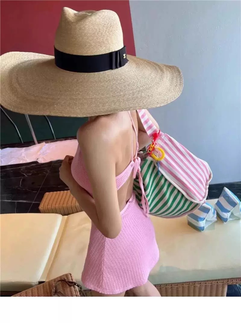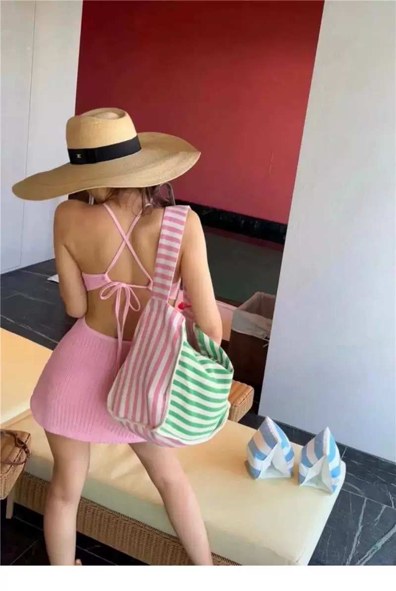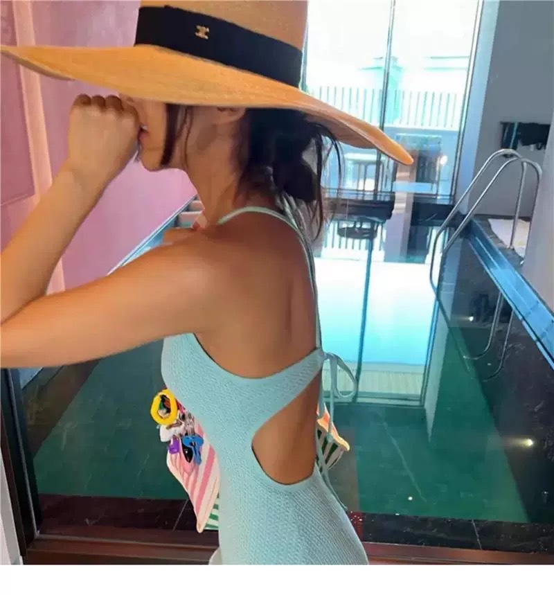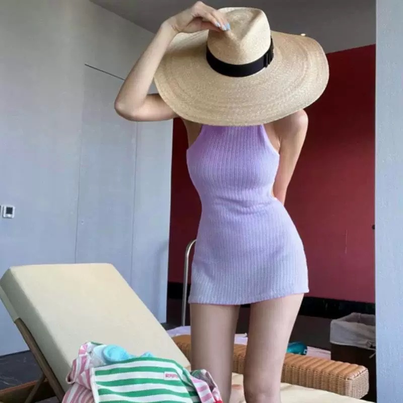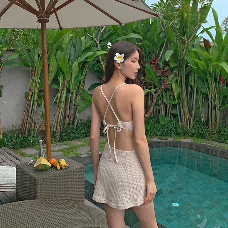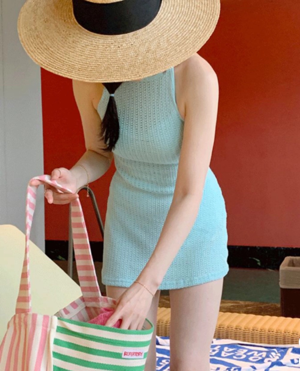 5색 니트 크로스보더 2025 한국 신작 백리스 스트랩 하이웨이스트 배 커버 보수적인 원피스 스커트 수영복 여성용