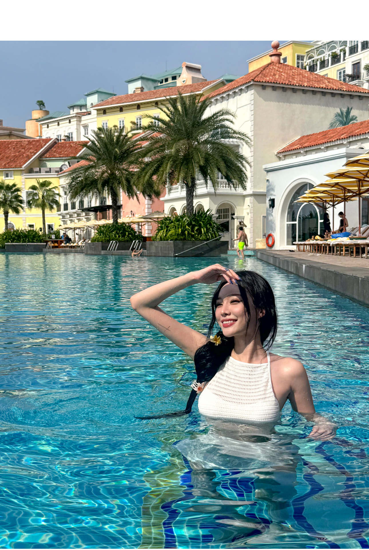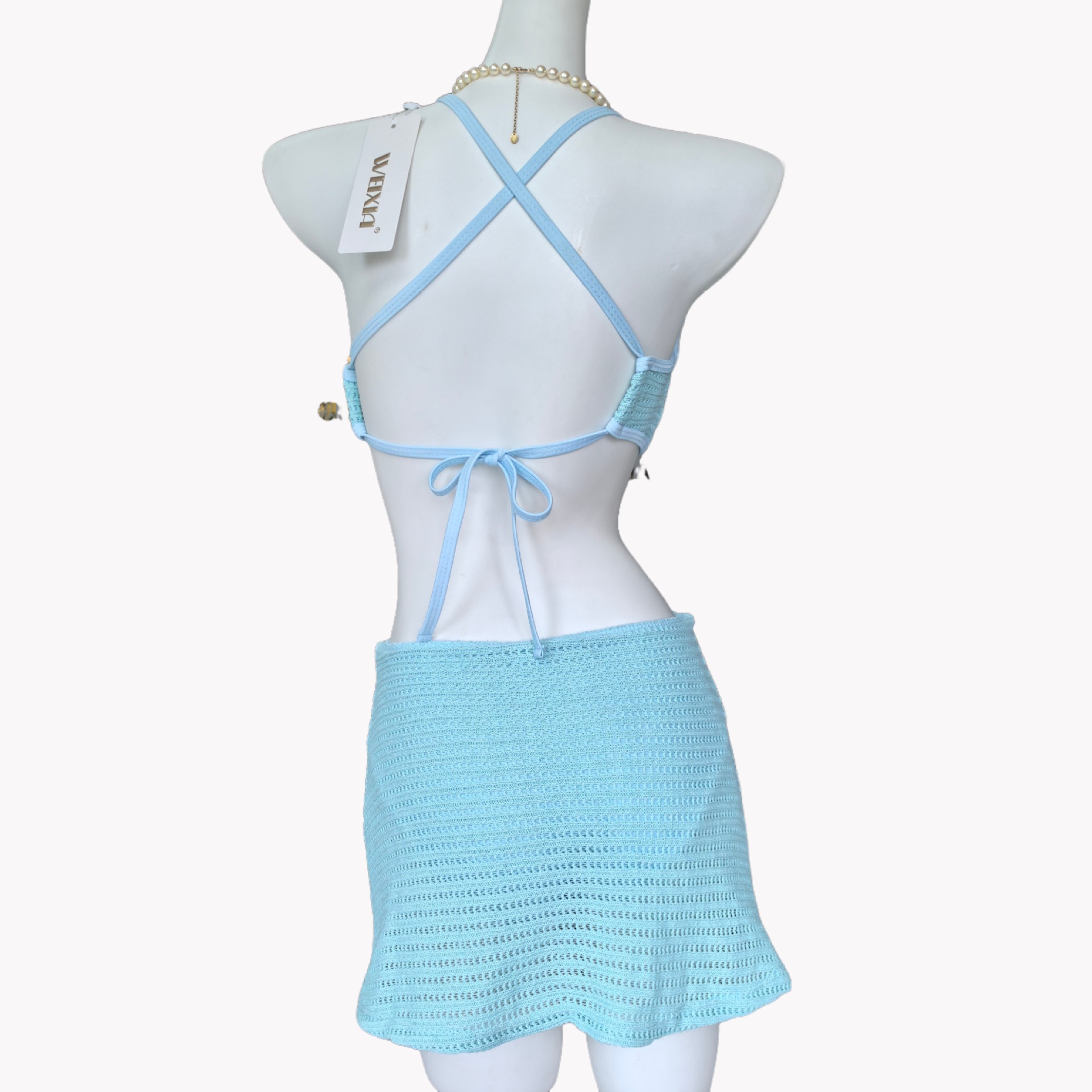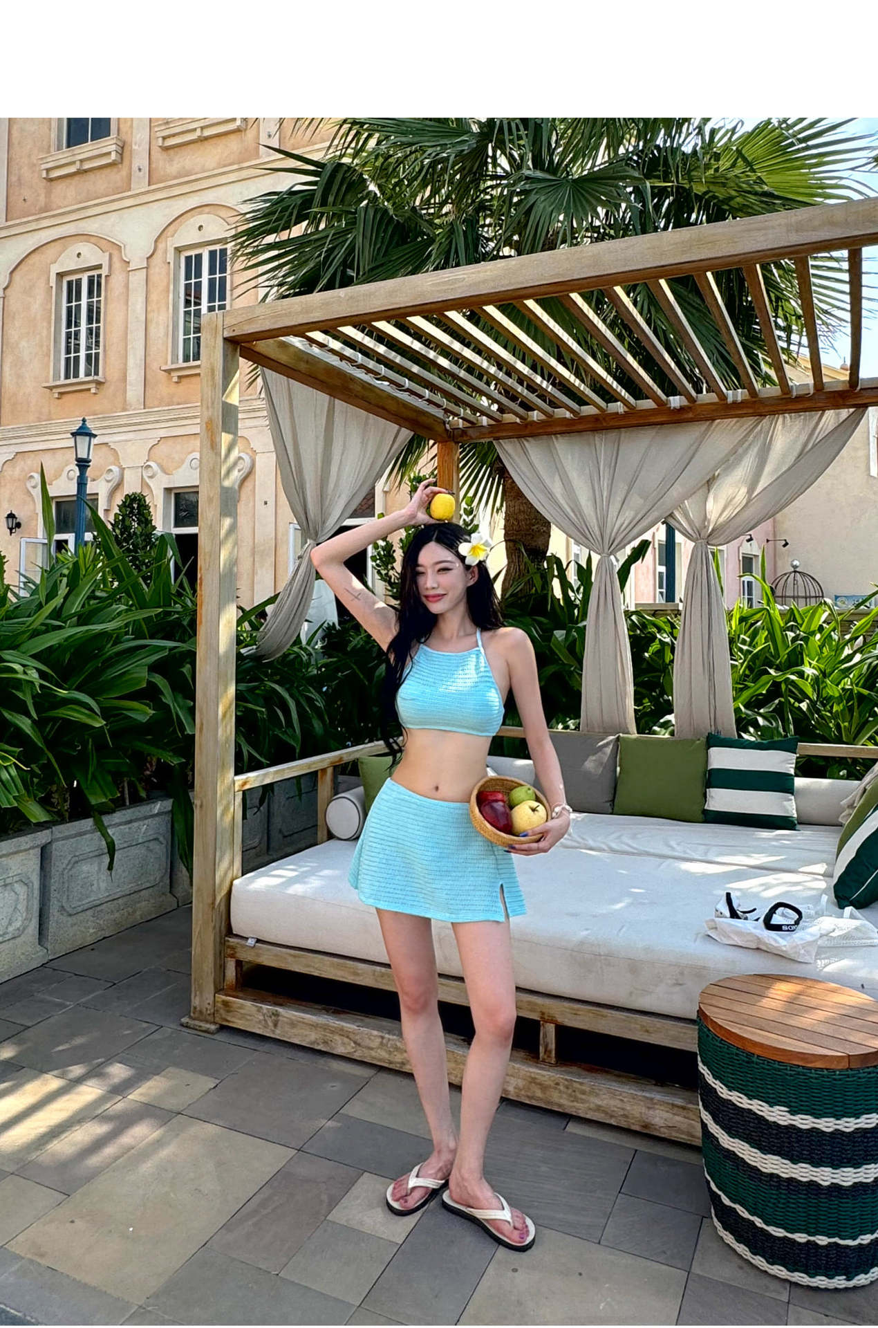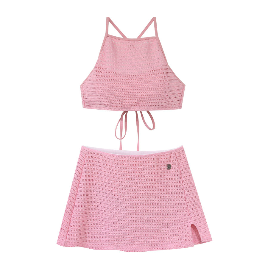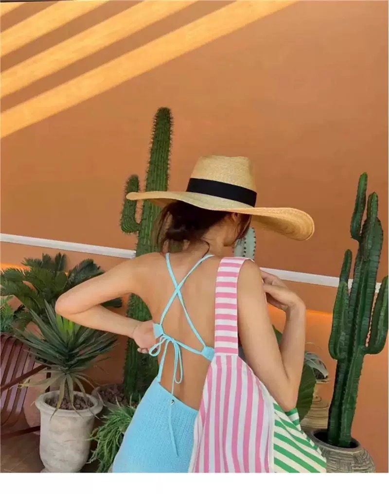 5색 니트 크로스보더 2025 한국 신작 백리스 스트랩 하이웨이스트 배 커버 보수적인 원피스 스커트 수영복 여성용