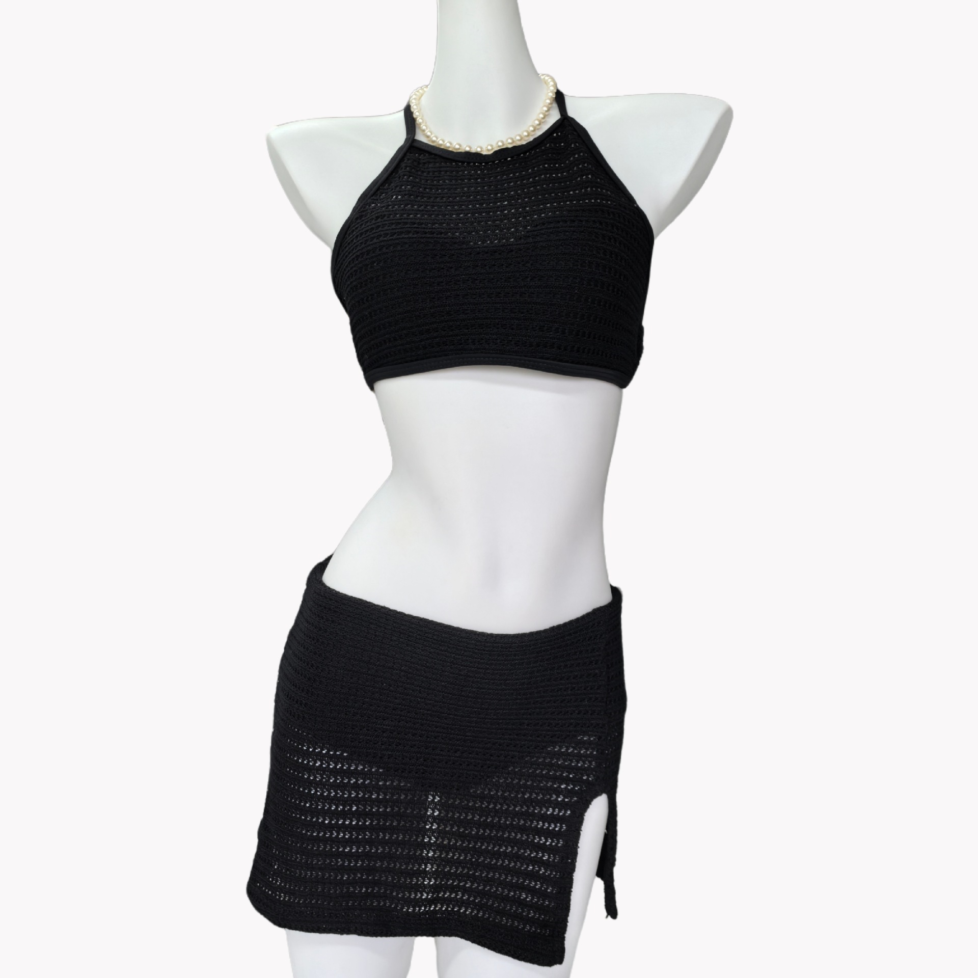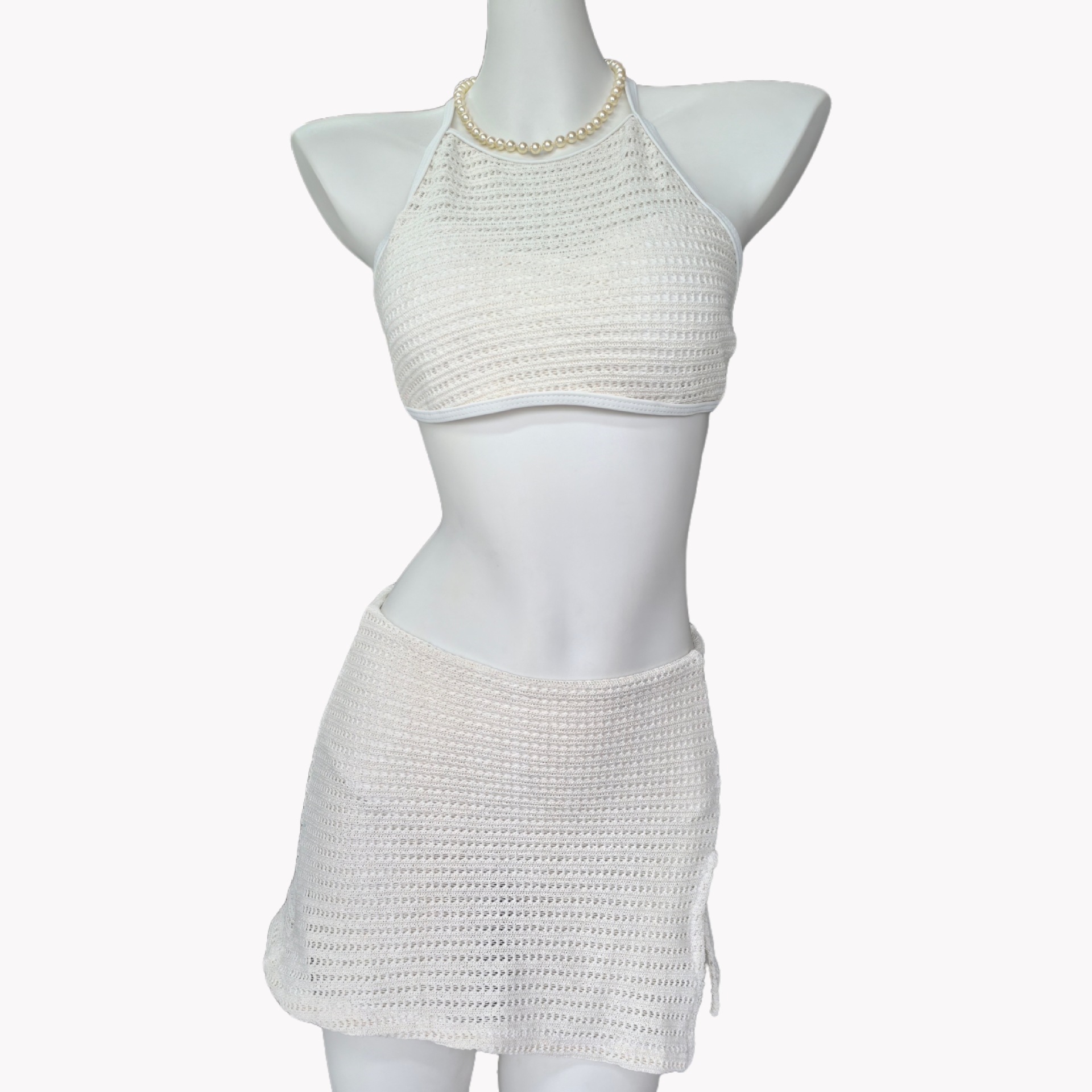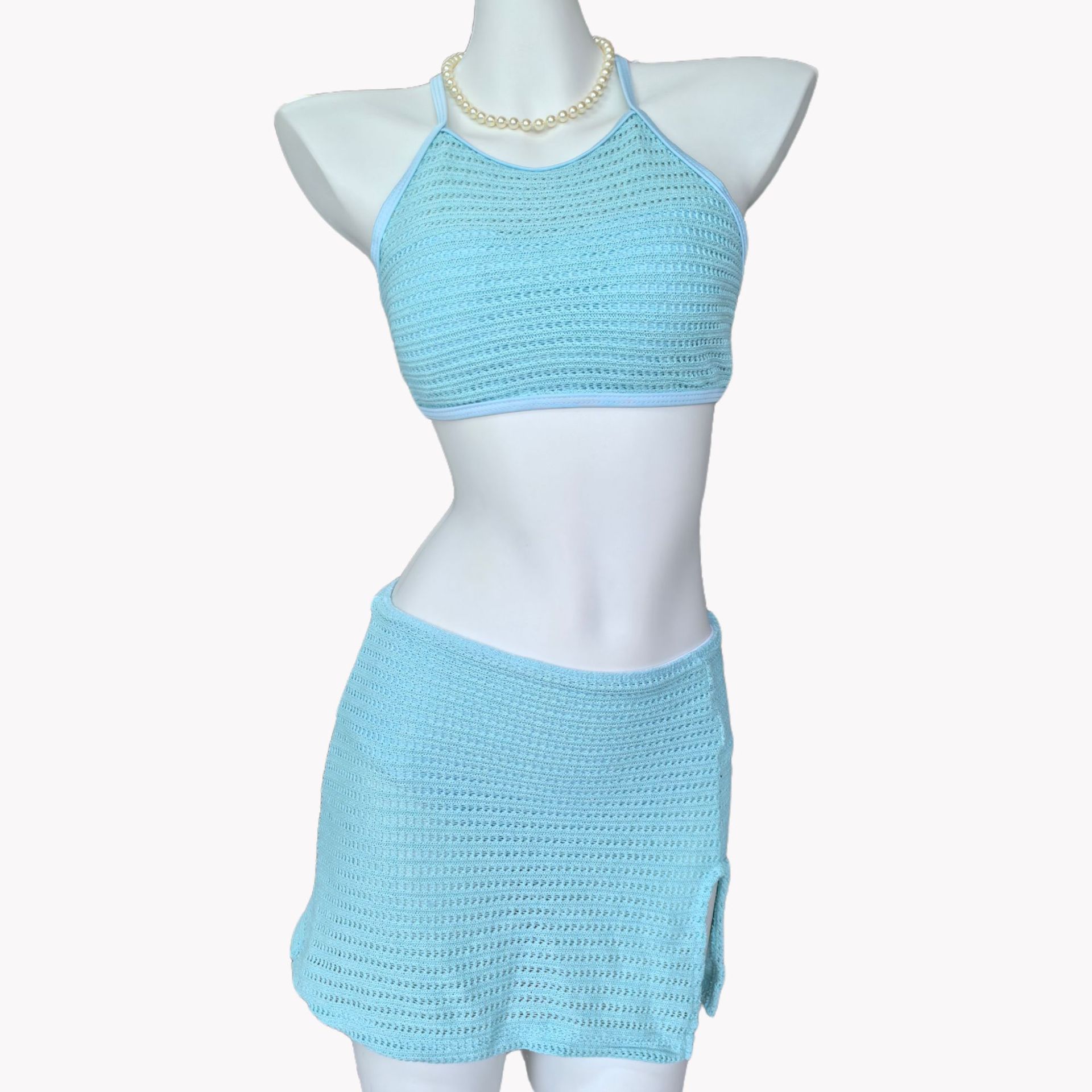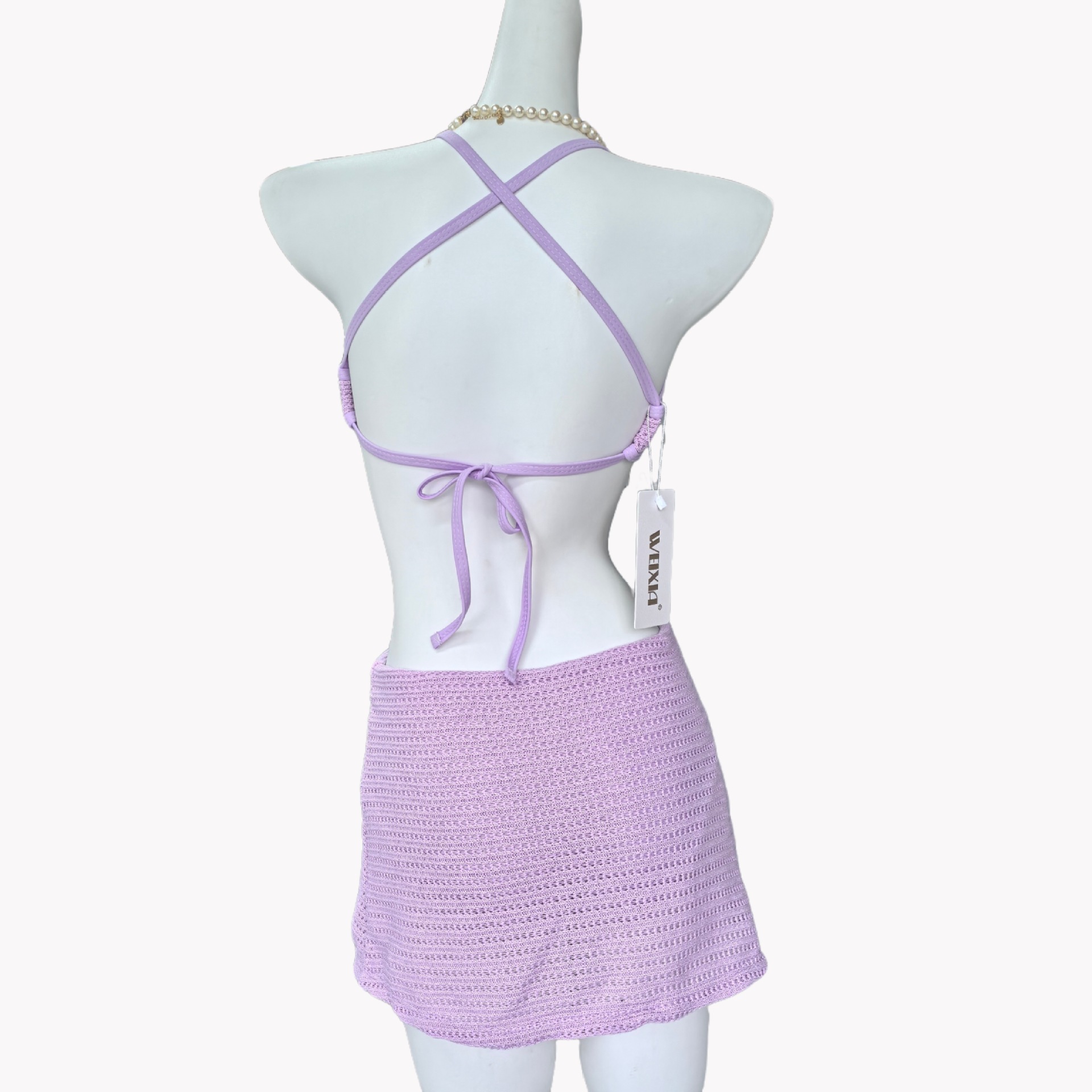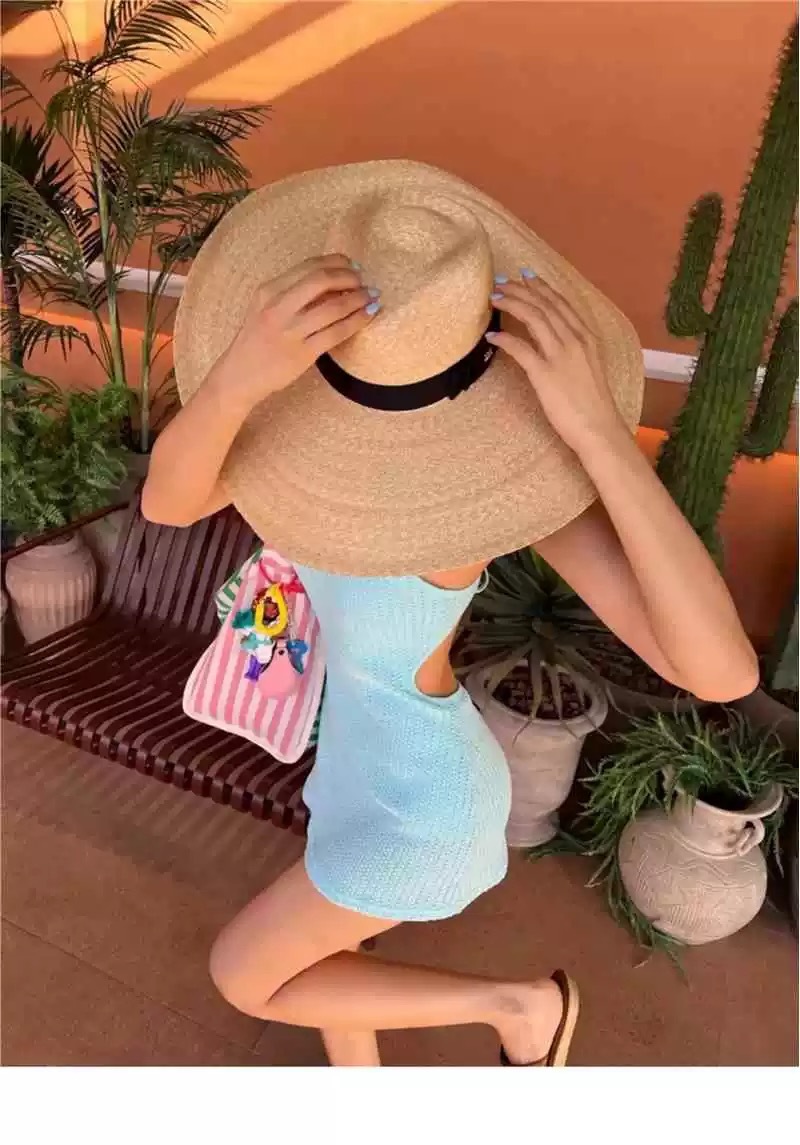 5색 니트 크로스보더 2025 한국 신작 백리스 스트랩 하이웨이스트 배 커버 보수적인 원피스 스커트 수영복 여성용