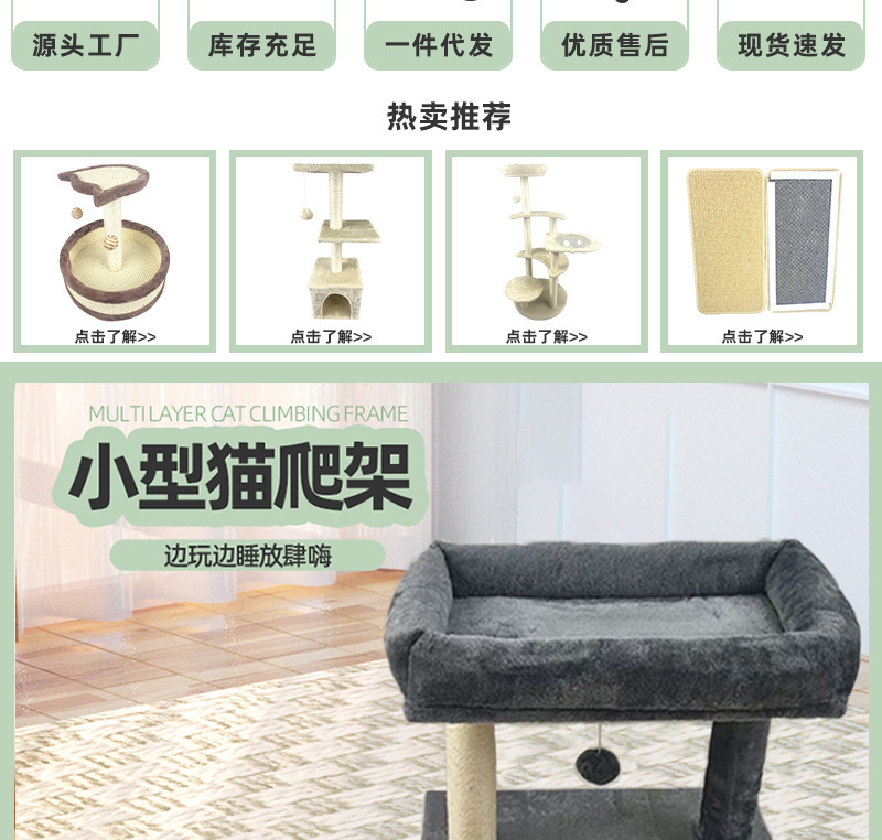 작고 귀엽고 실용적이며 편안한 일체형 고양이 클라이밍 프레임, 고양이 점프 플랫폼, 고양이 둥지, 고양이 발톱 기둥스토어 가기