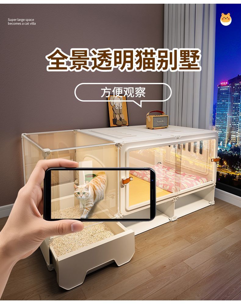 파노라마 전망과 고양이 쓰레기통이 있는 고양이 빌라, 집 내부의 대형 공간 고양이 둥지, 고양이 캐비닛, 고양이 사육을 위한 특수 고양이 케이지
