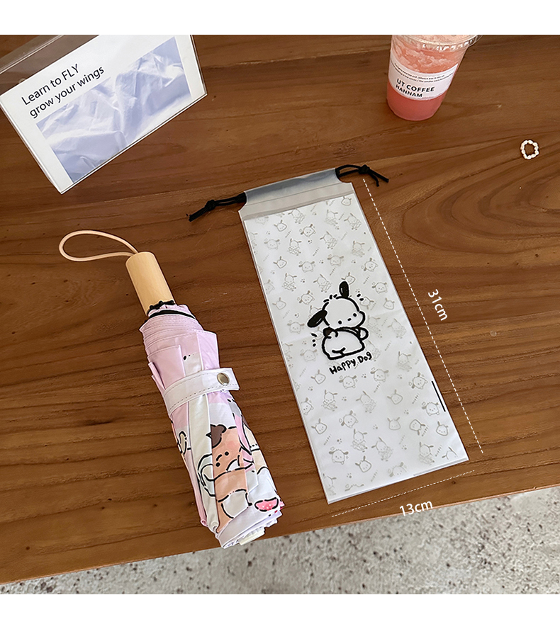 ♡ 우산 세트 우산 가방 얇은 태양 우산 보호 커버 보관 가방 휴대용 어린이 우산 가방 Pacha 개 투명