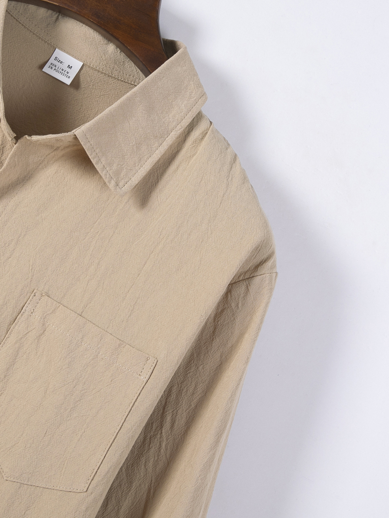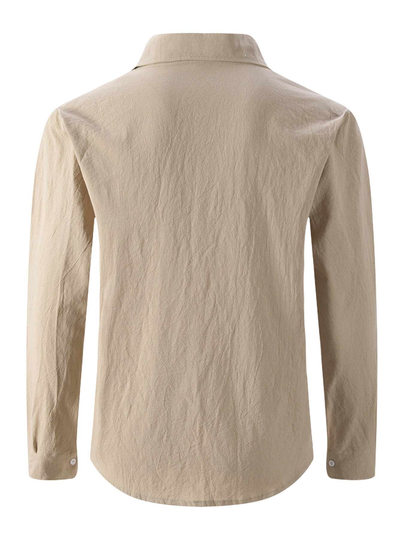 2025 Amazon Cross-Border 가을 리넨 셔츠 긴 소매 옷깃 통기성 캐주얼 남성 새로운 중국 스타일 포켓 셔츠