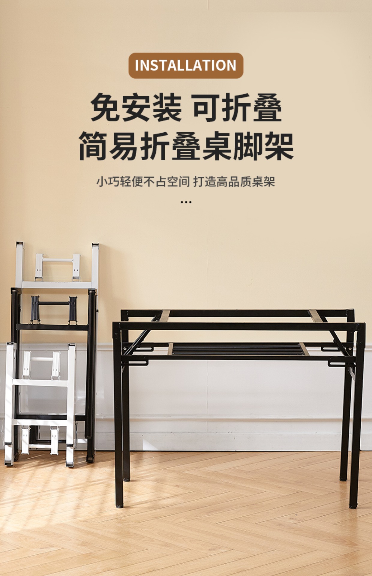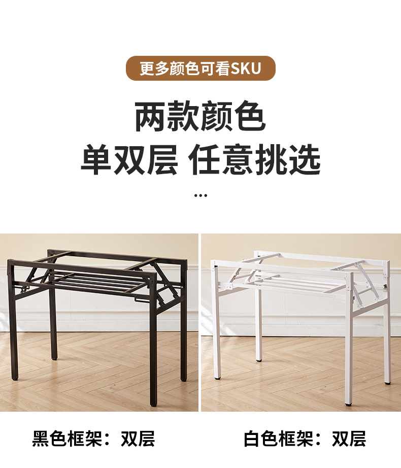 접이식 식탁 철제 프레임 이중 스프링 테이블 프레임 가정 학습 테이블 임대 주택 간단한 식탁 접이식 테이블 삼각대스토어 가기