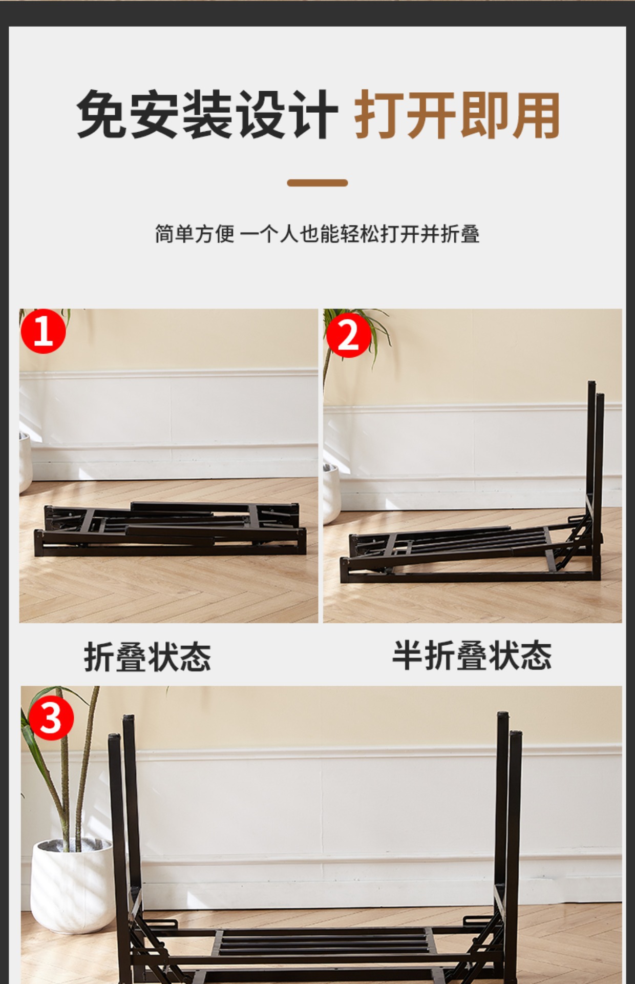 접이식 식탁 철제 프레임 이중 스프링 테이블 프레임 가정 학습 테이블 임대 주택 간단한 식탁 접이식 테이블 삼각대