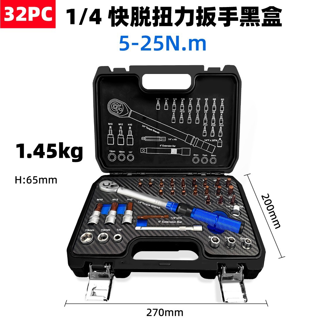 • A1342-32pcs1/4 퀵 릴리스 토크 렌치(5-25N.m)[[블랙박스]1.45kg