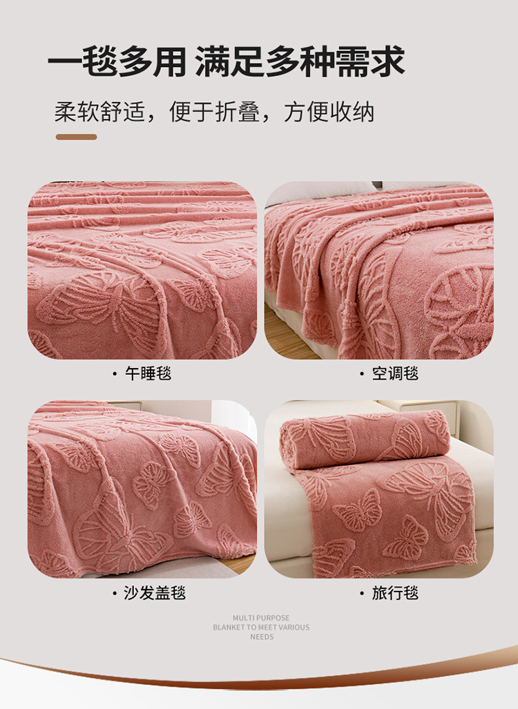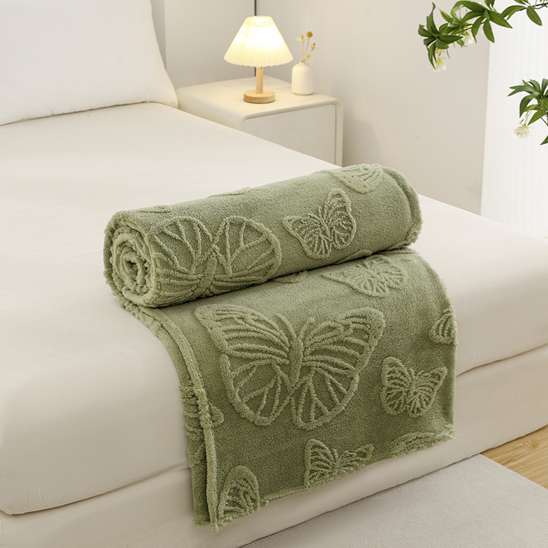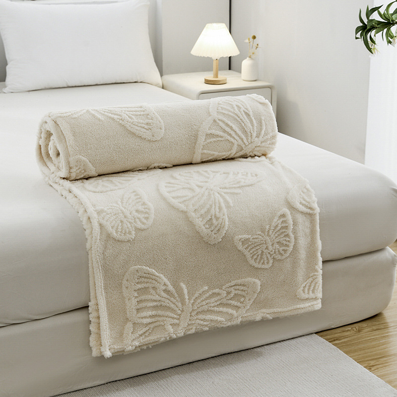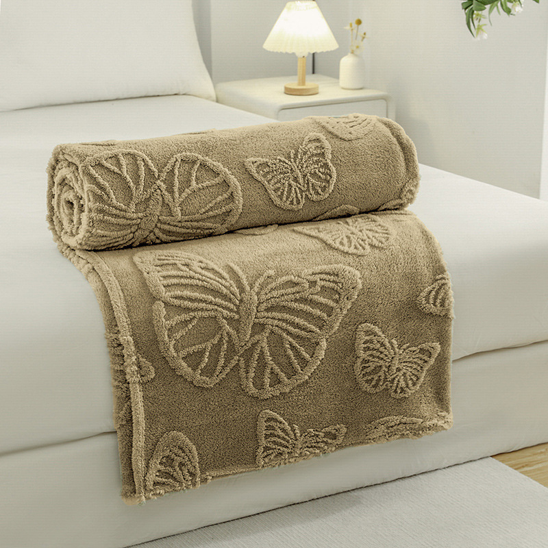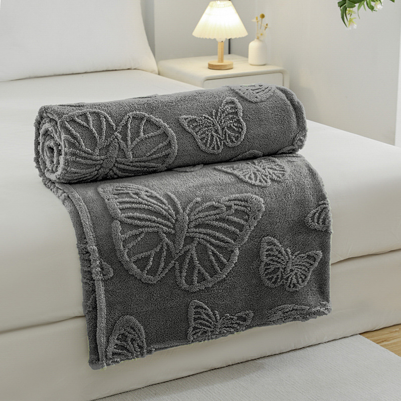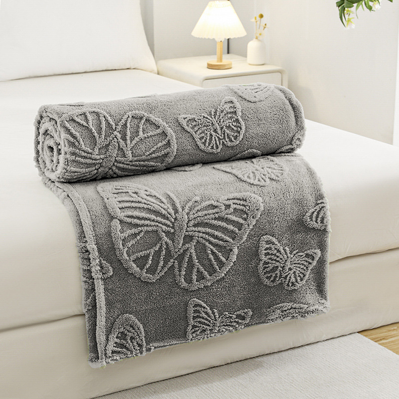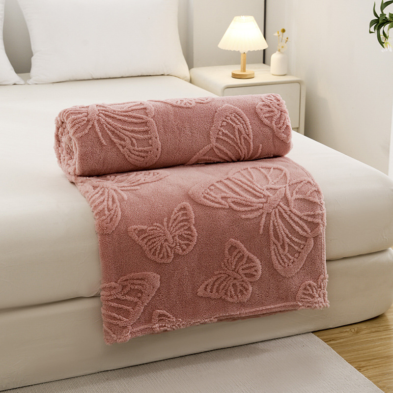양면 태피터 플러시 담요, 두꺼운 담요, 나비 자카드 입체 담요, 벨벳 사무실 에어컨 점심 담요