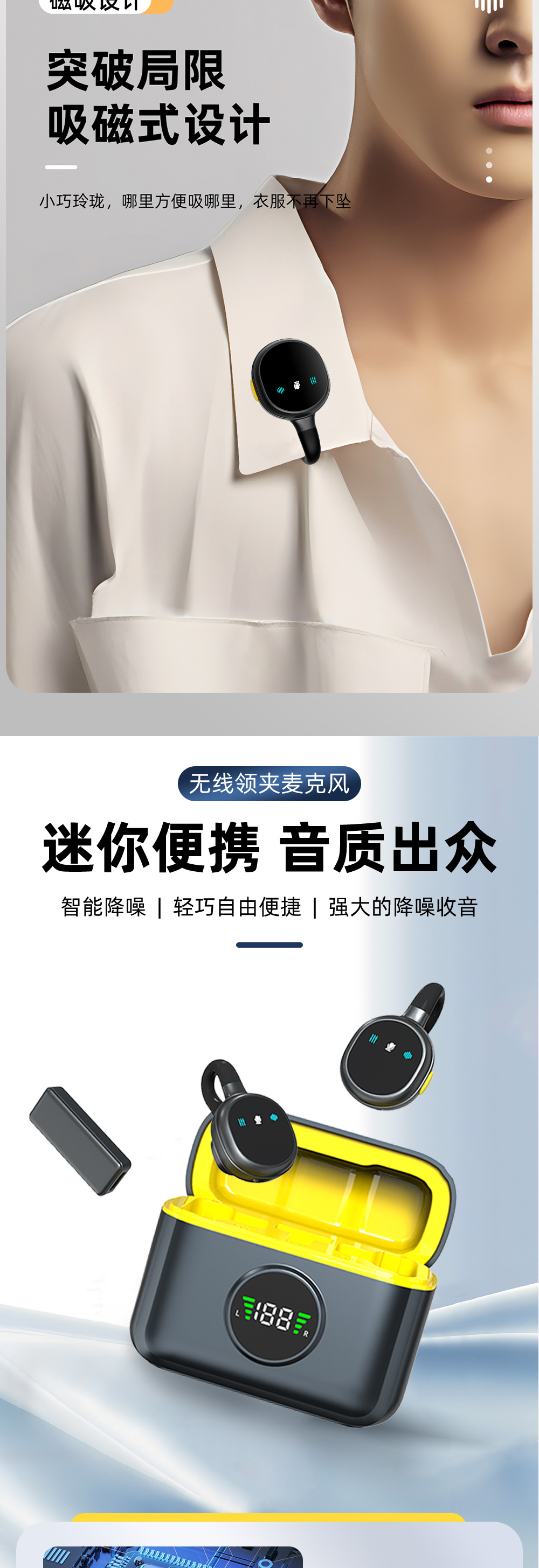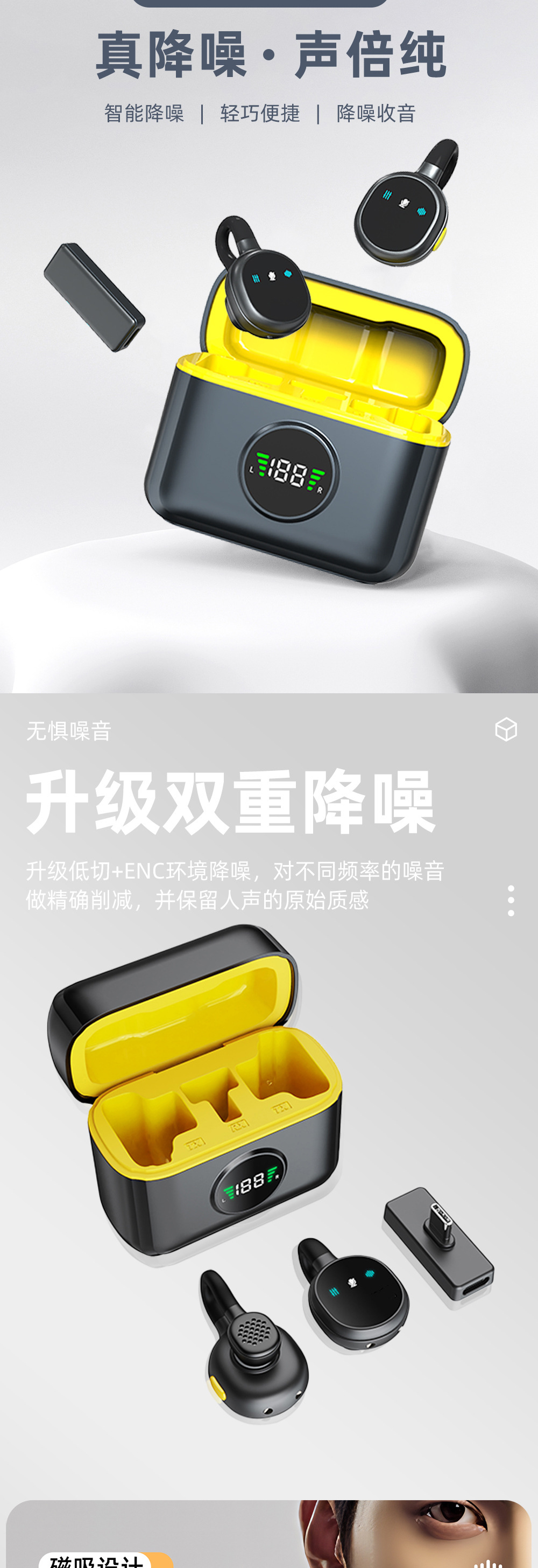 국경 간 DX68 무선 라발리에 마이크 숨겨진 자기 버튼 원 클릭 소음 감소 녹음 라이브 방송 마이크스토어 가기