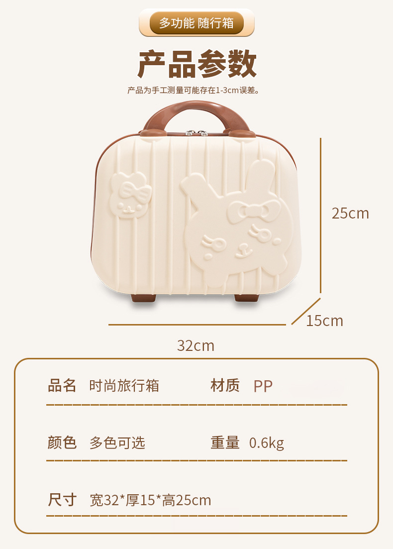 3D 만화 귀여운 토끼 14inch 가방 화장품 가방 휴대용 미니 가방 빨간색 동반자 선물 상자