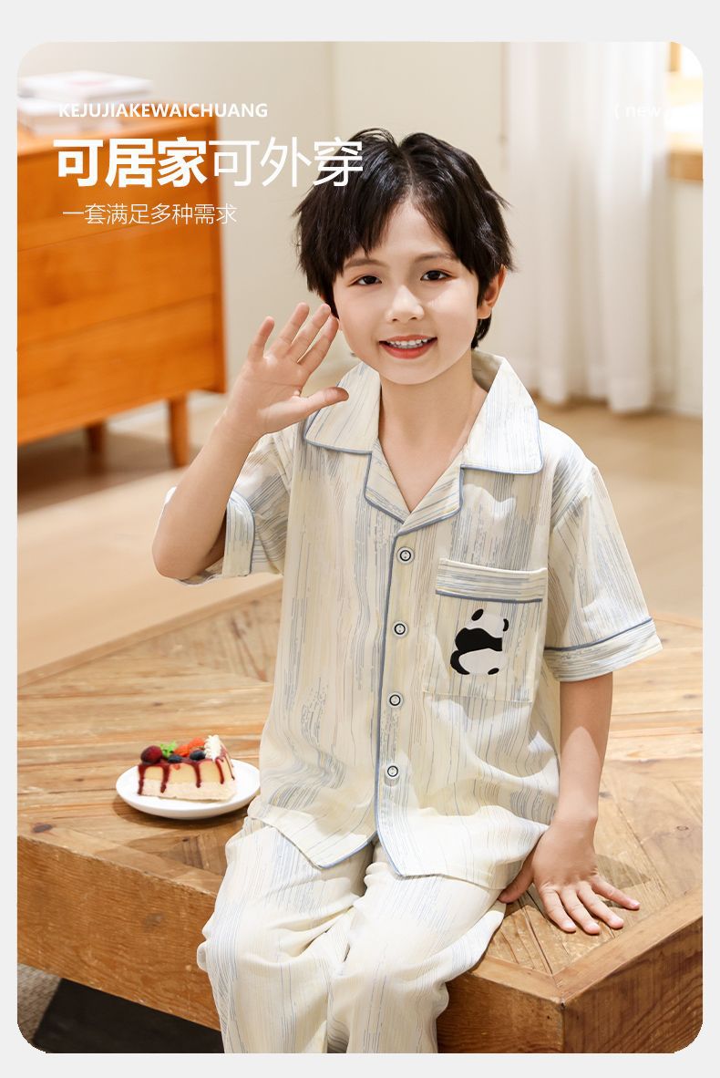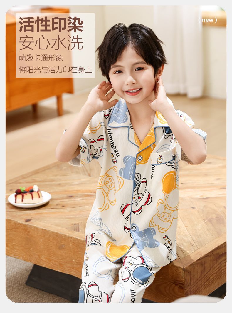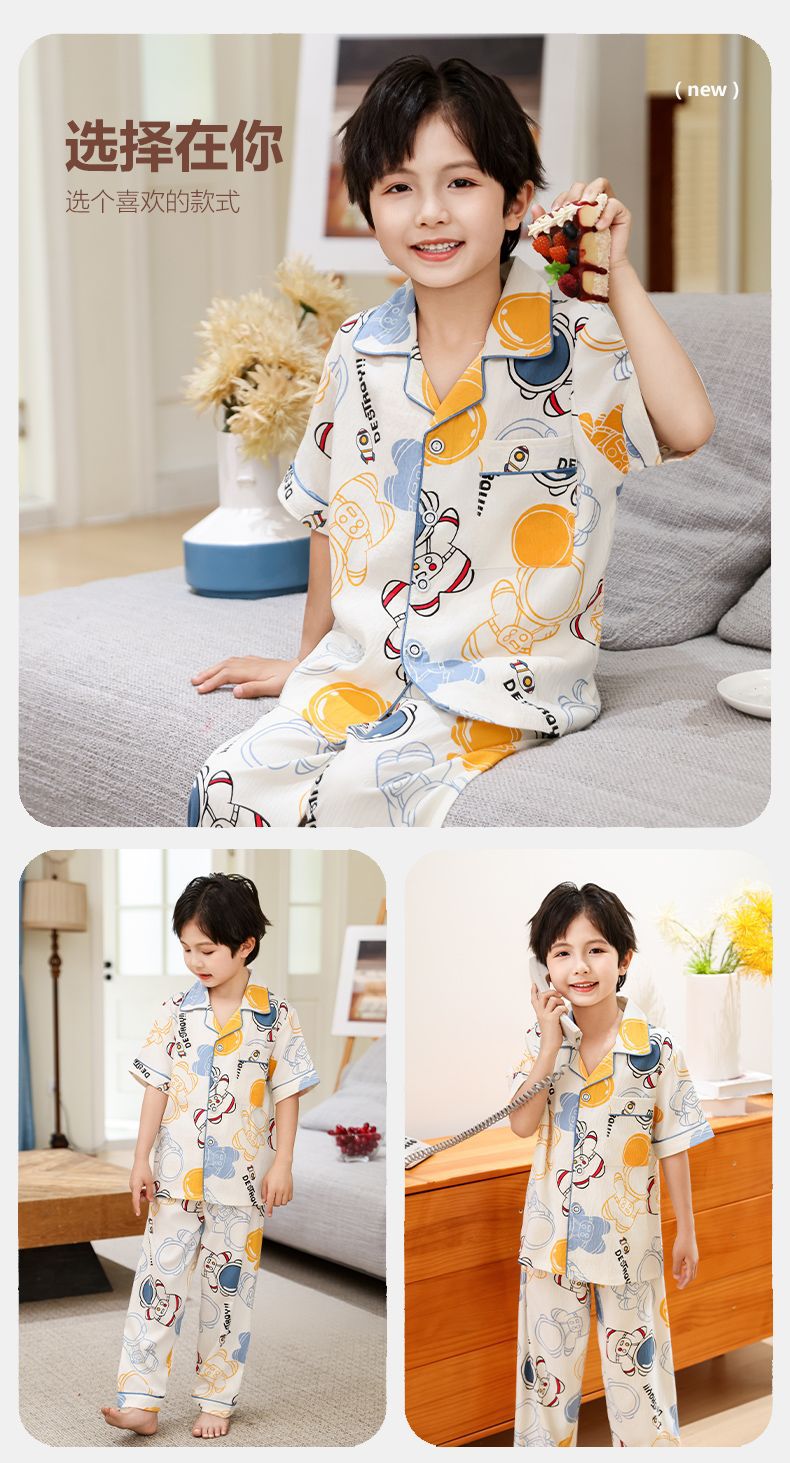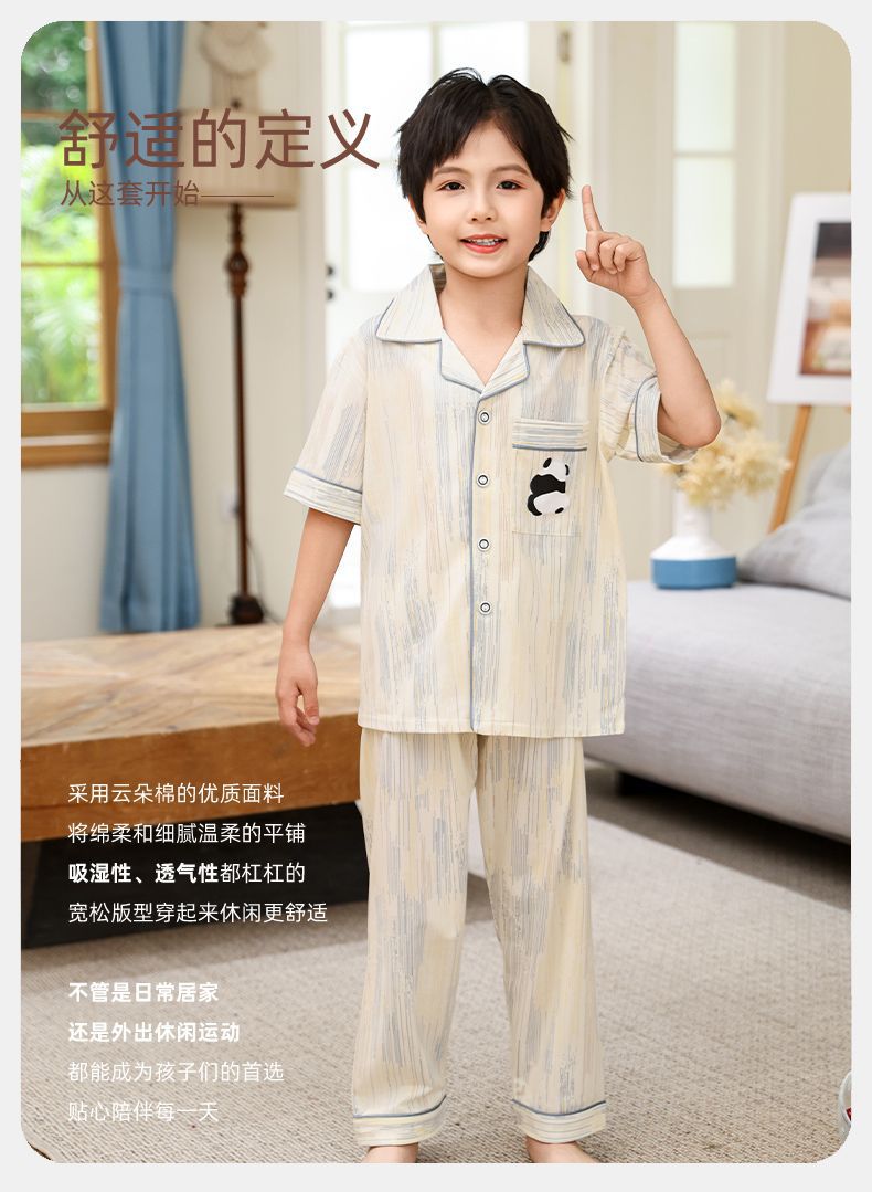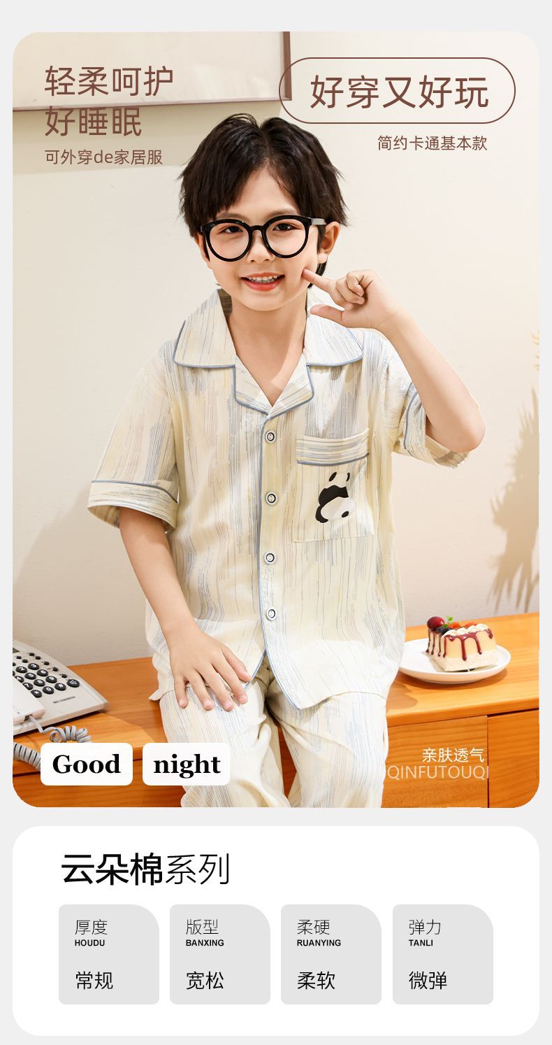 아동 잠옷, 여름 남아, 중대형 아동용 클라우드 코튼 가디건, 남아용 반팔 바지, 홈웨어, 캐주얼 슈트스토어 가기