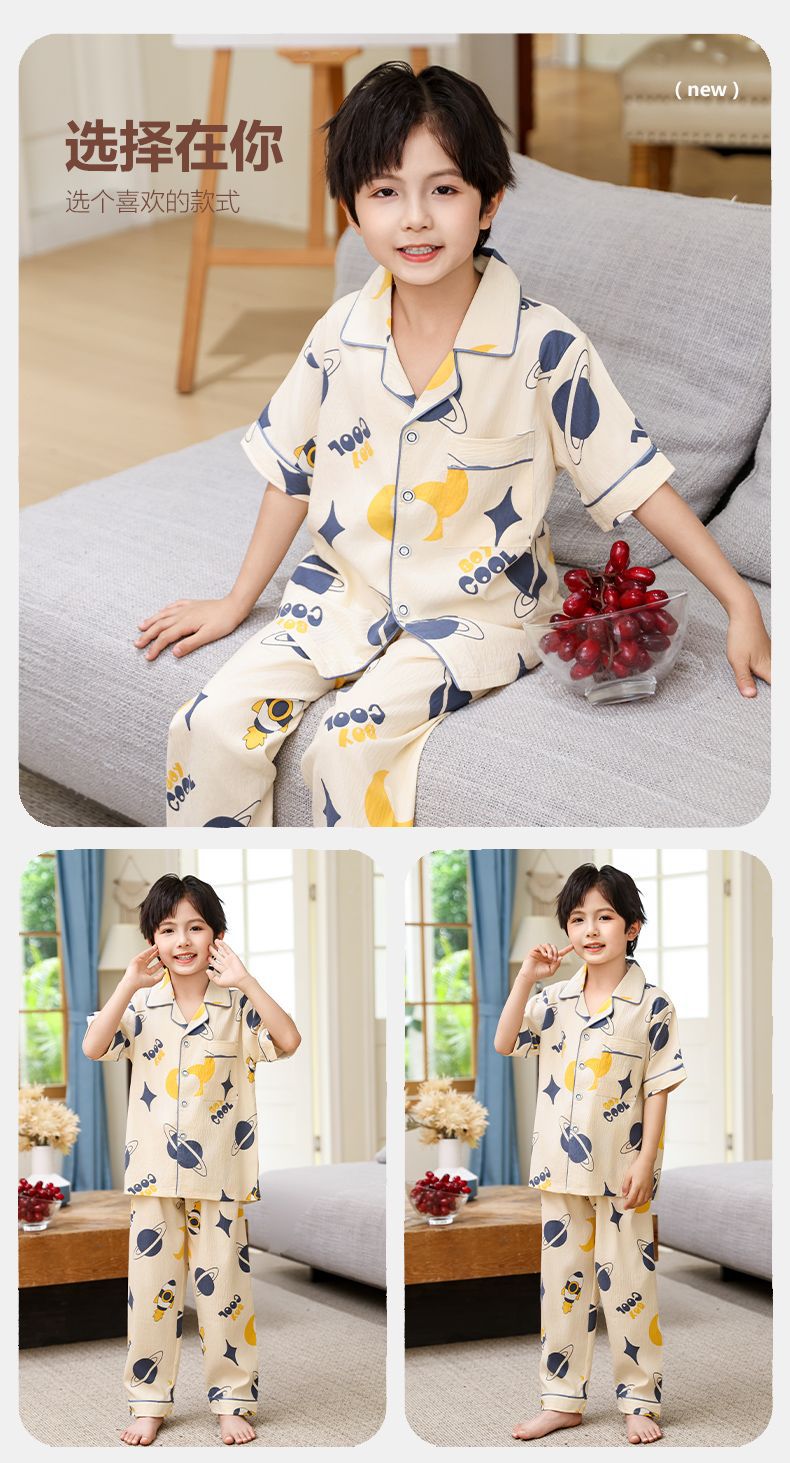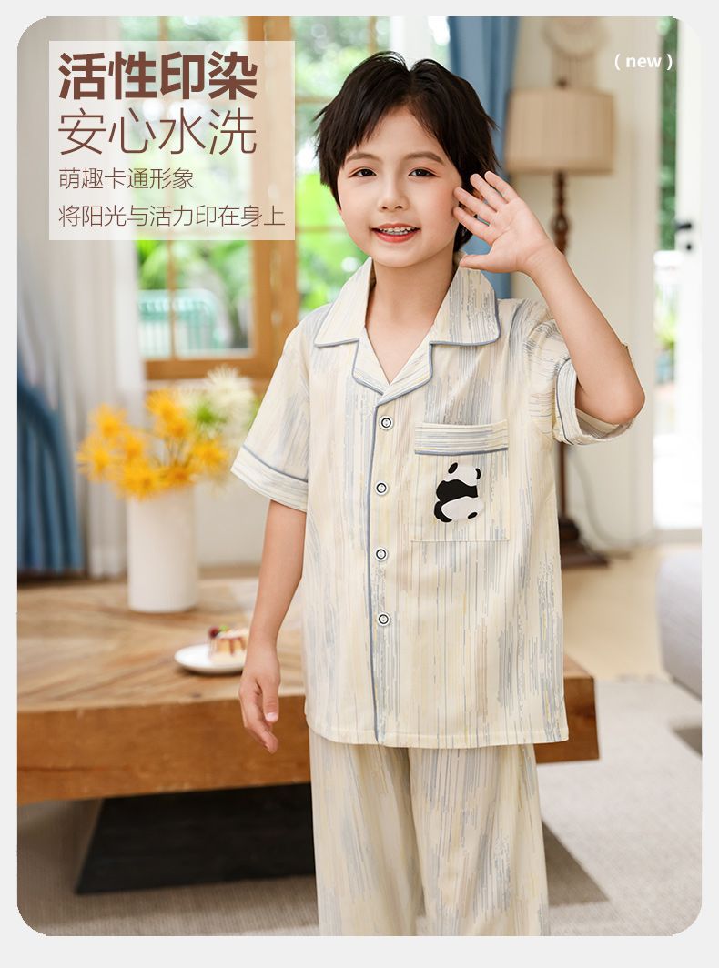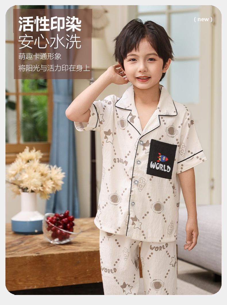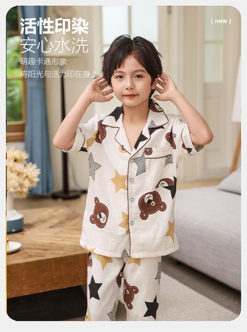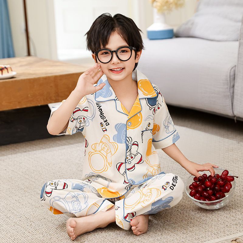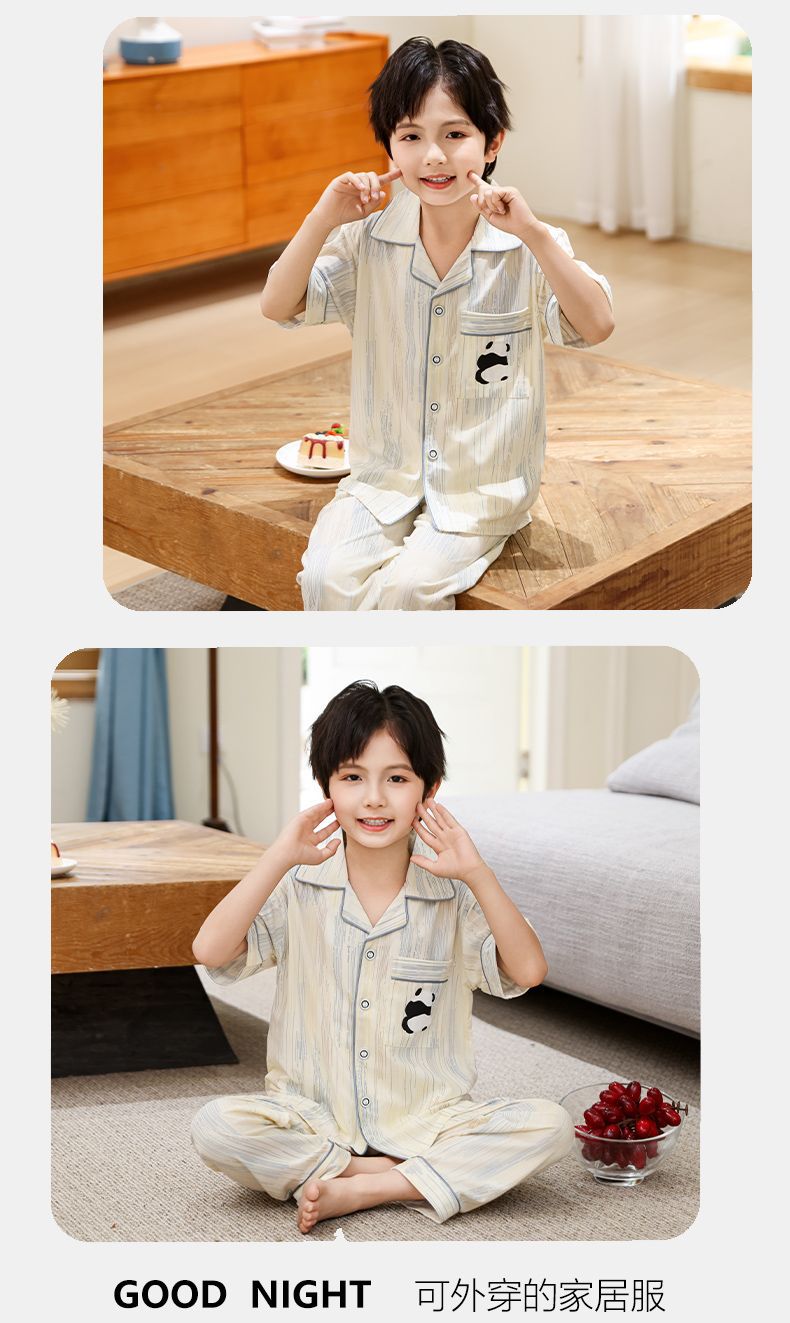 아동 잠옷, 여름 남아, 중대형 아동용 클라우드 코튼 가디건, 남아용 반팔 바지, 홈웨어, 캐주얼 슈트스토어 가기
