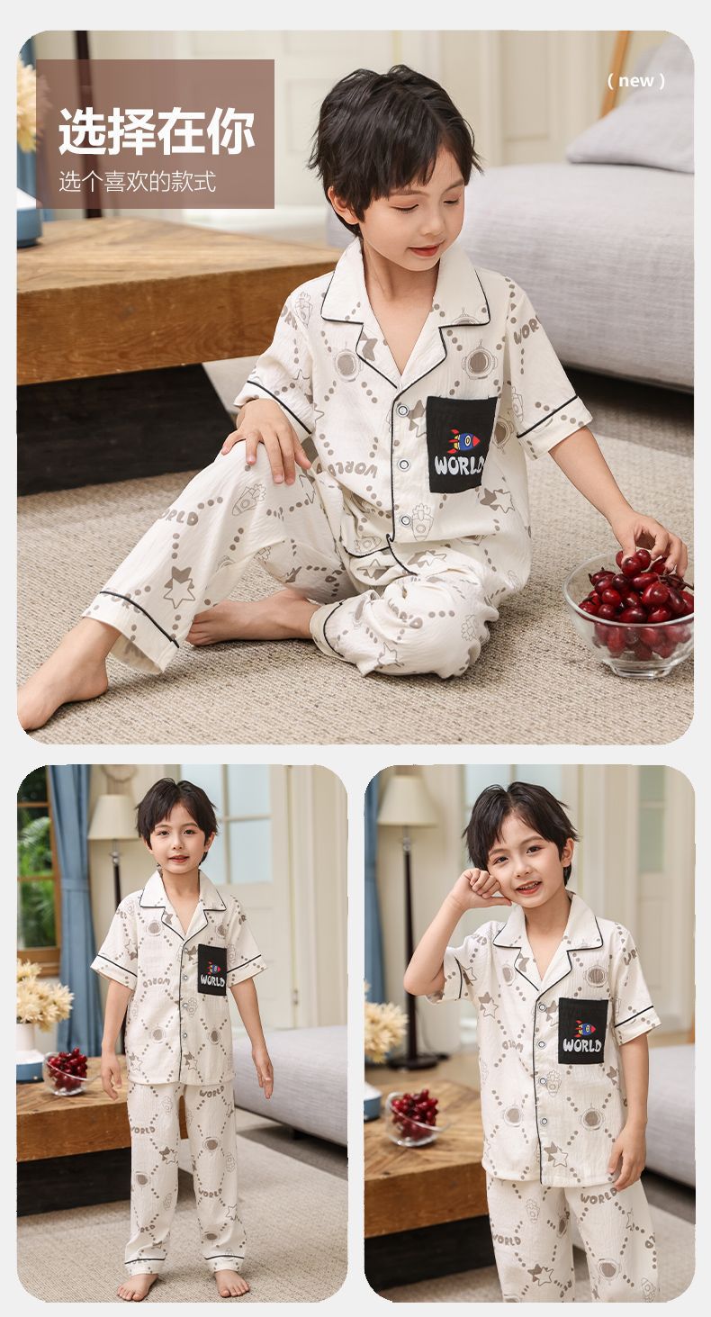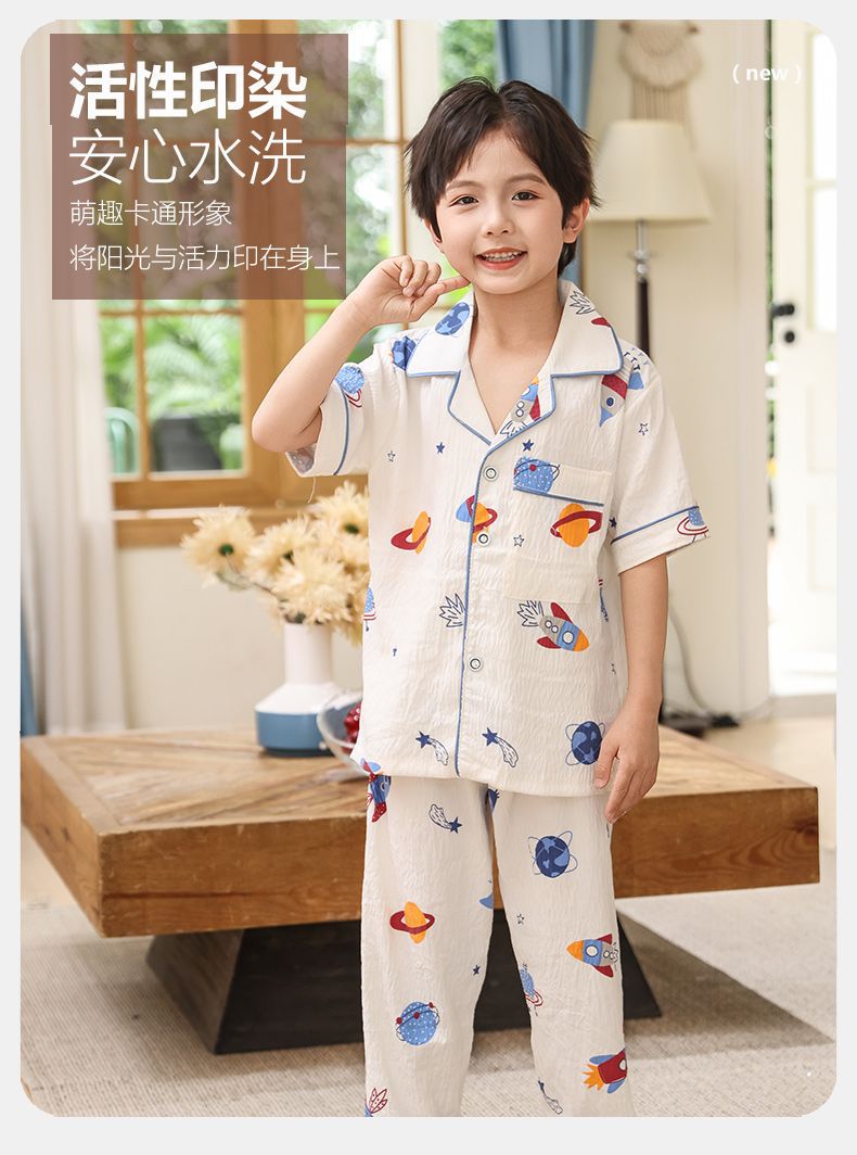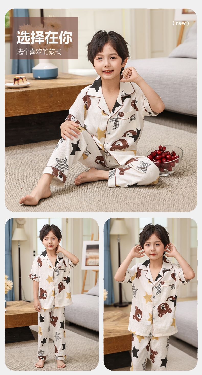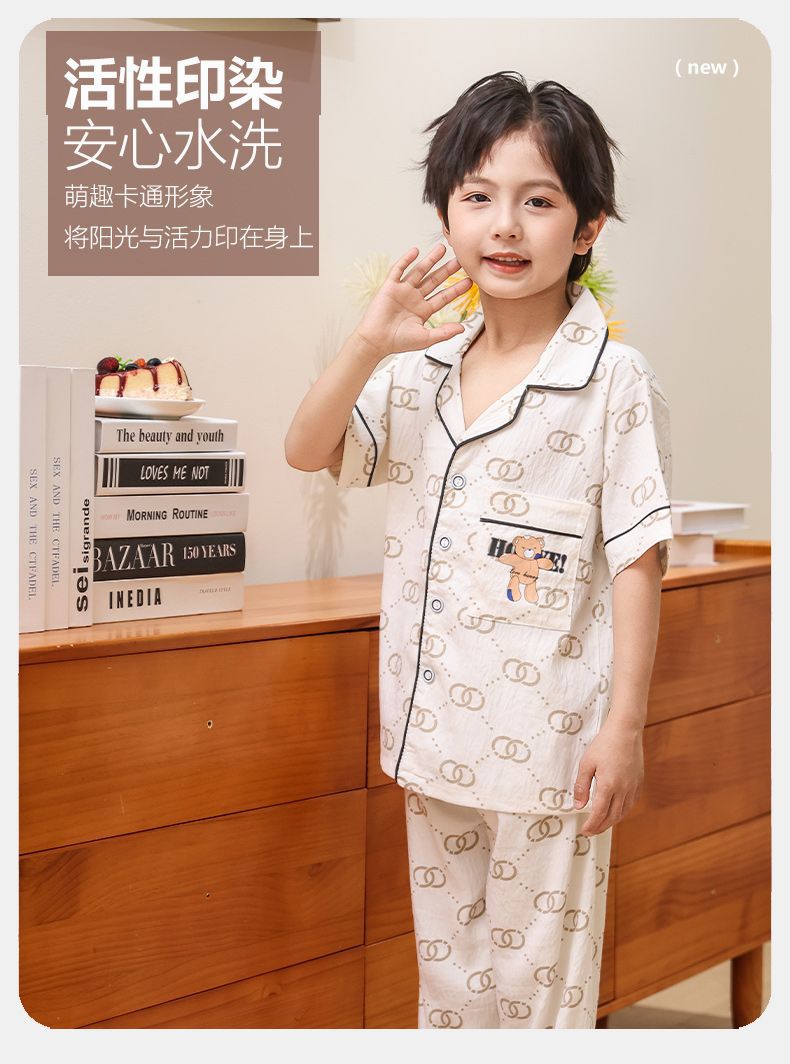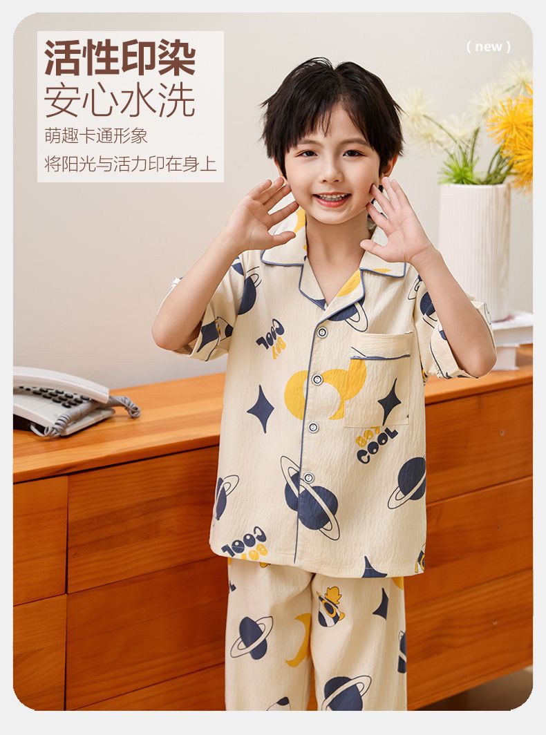 아동 잠옷, 여름 남아, 중대형 아동용 클라우드 코튼 가디건, 남아용 반팔 바지, 홈웨어, 캐주얼 슈트스토어 가기