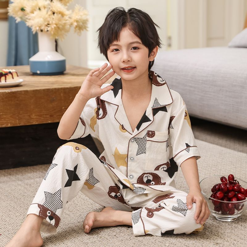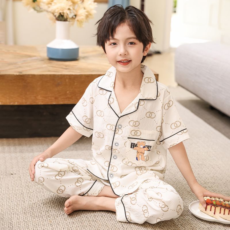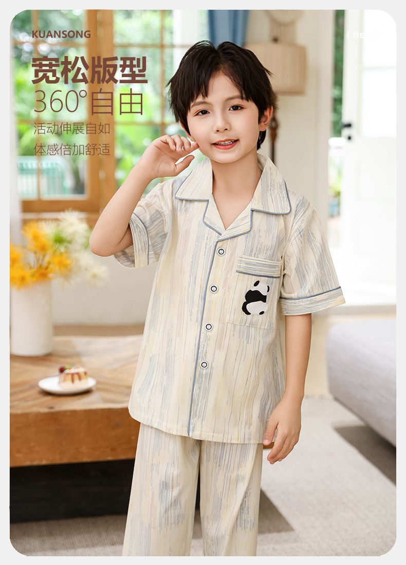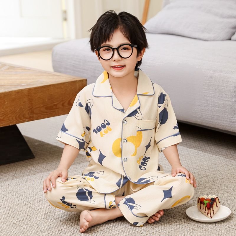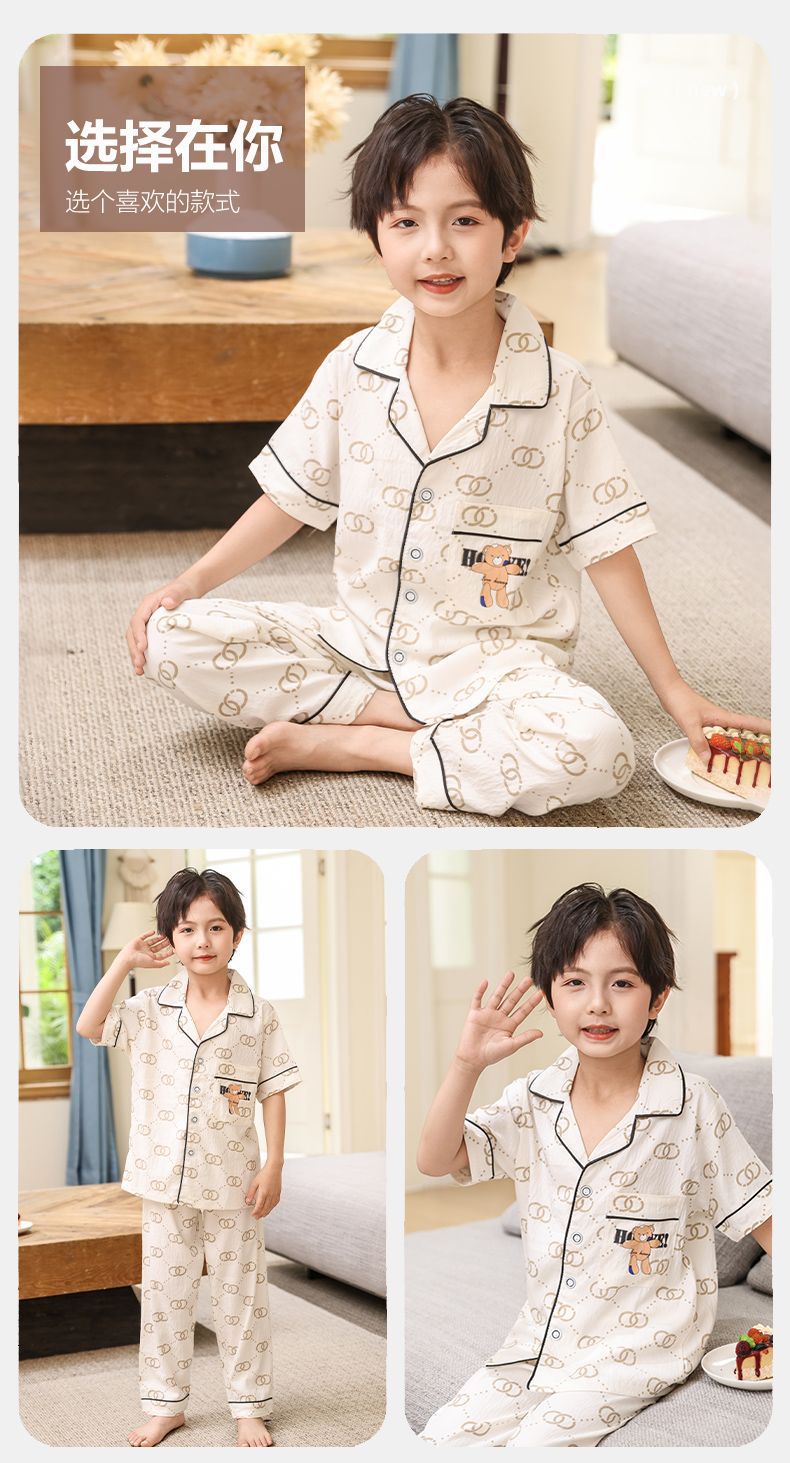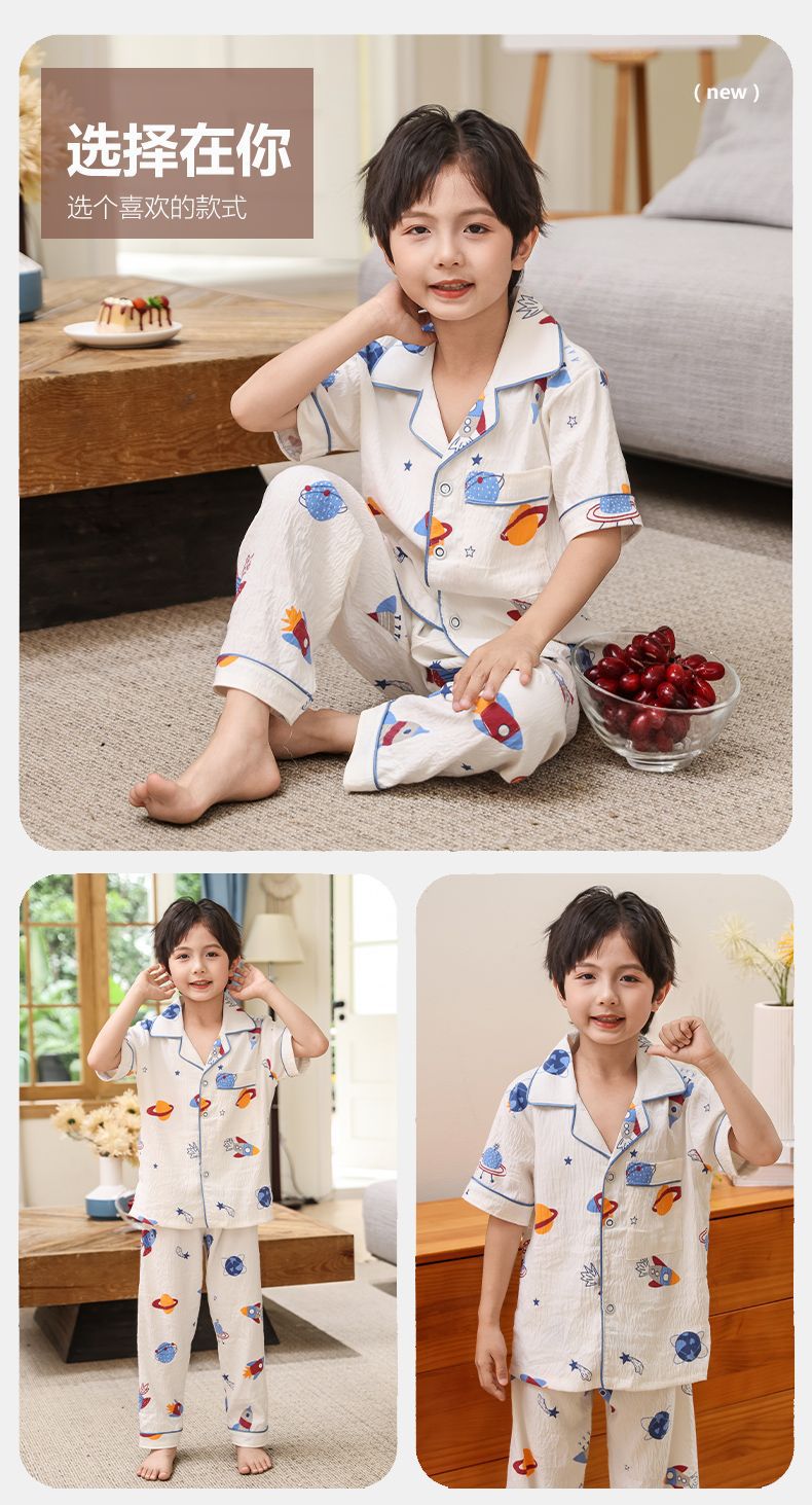 아동 잠옷, 여름 남아, 중대형 아동용 클라우드 코튼 가디건, 남아용 반팔 바지, 홈웨어, 캐주얼 슈트스토어 가기