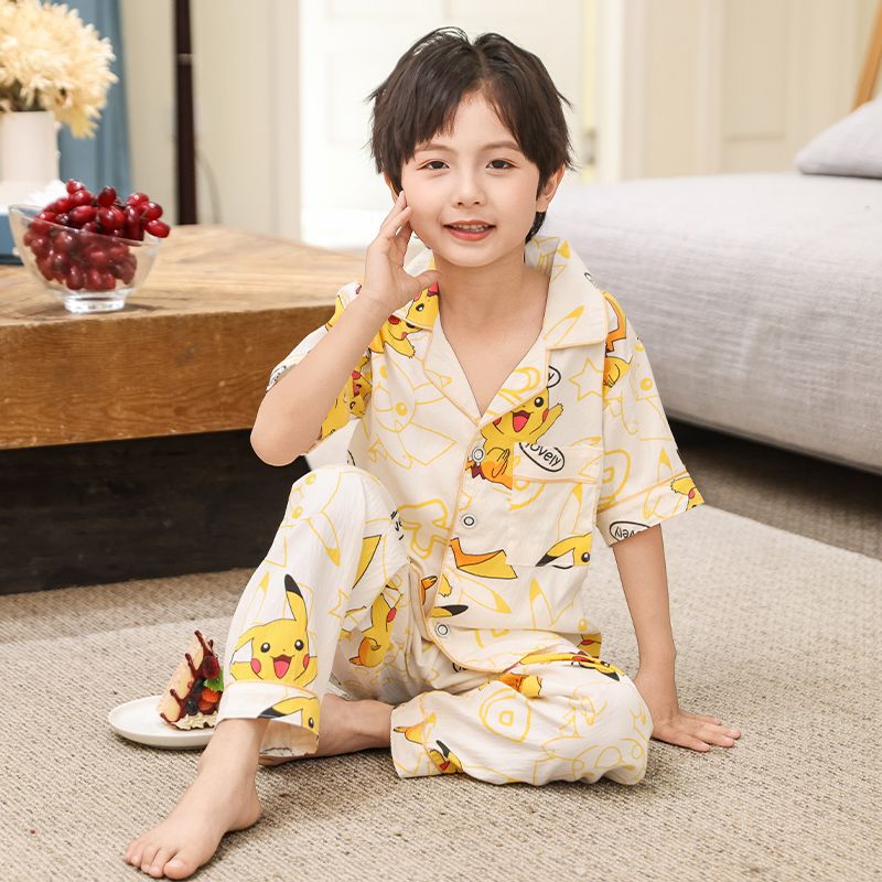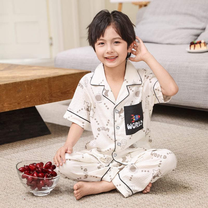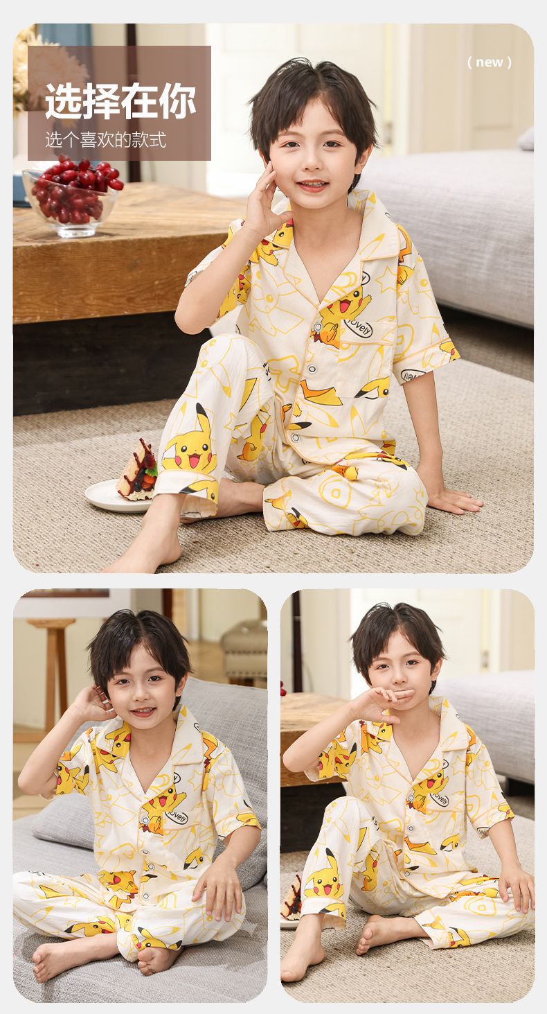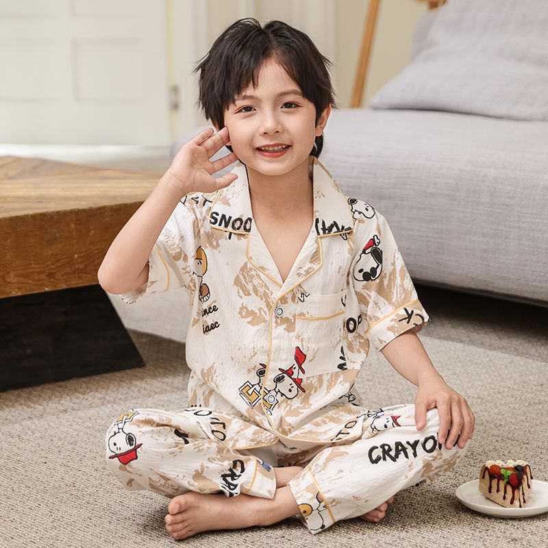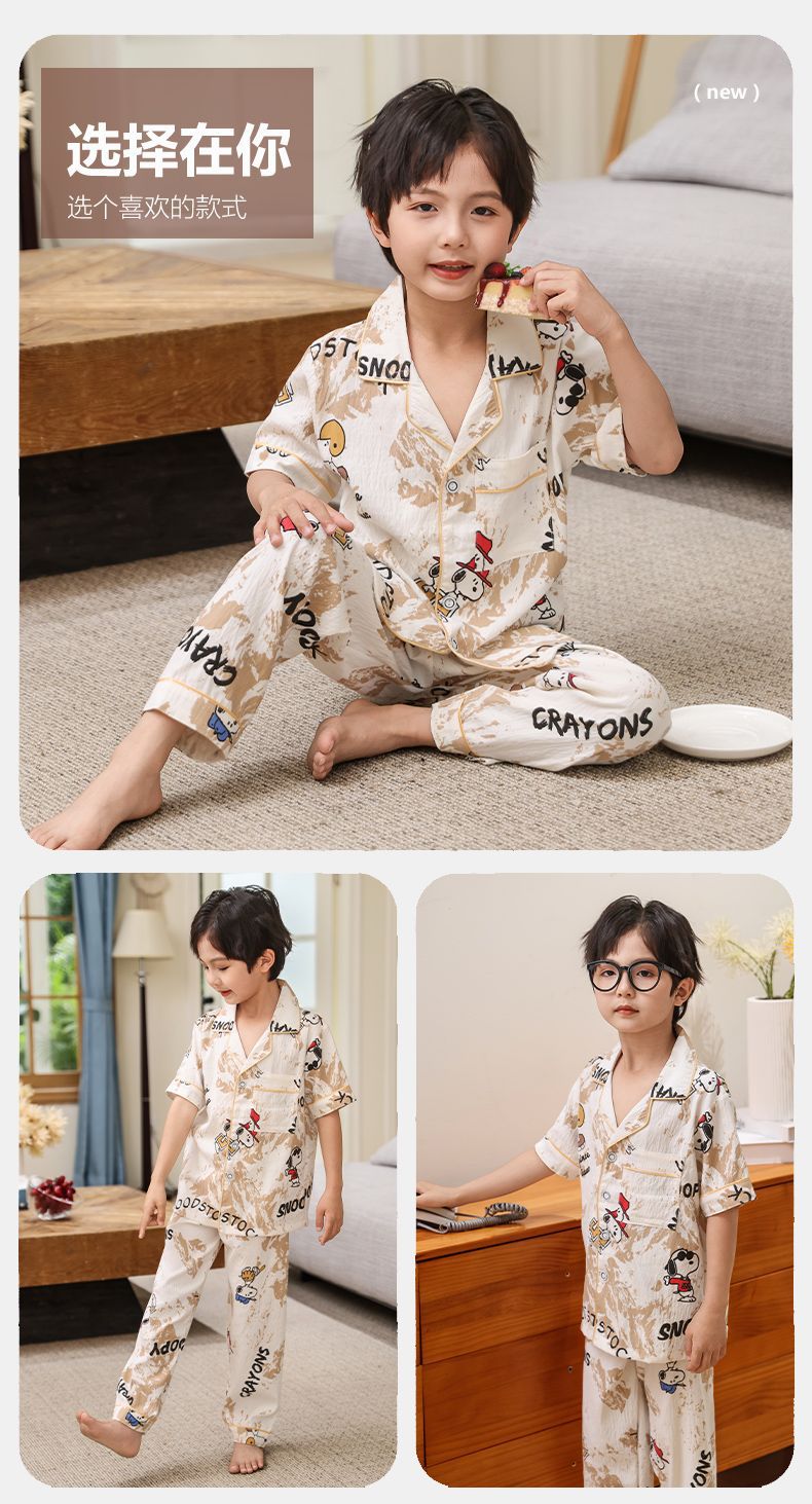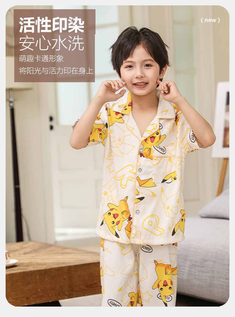 아동 잠옷, 여름 남아, 중대형 아동용 클라우드 코튼 가디건, 남아용 반팔 바지, 홈웨어, 캐주얼 슈트스토어 가기