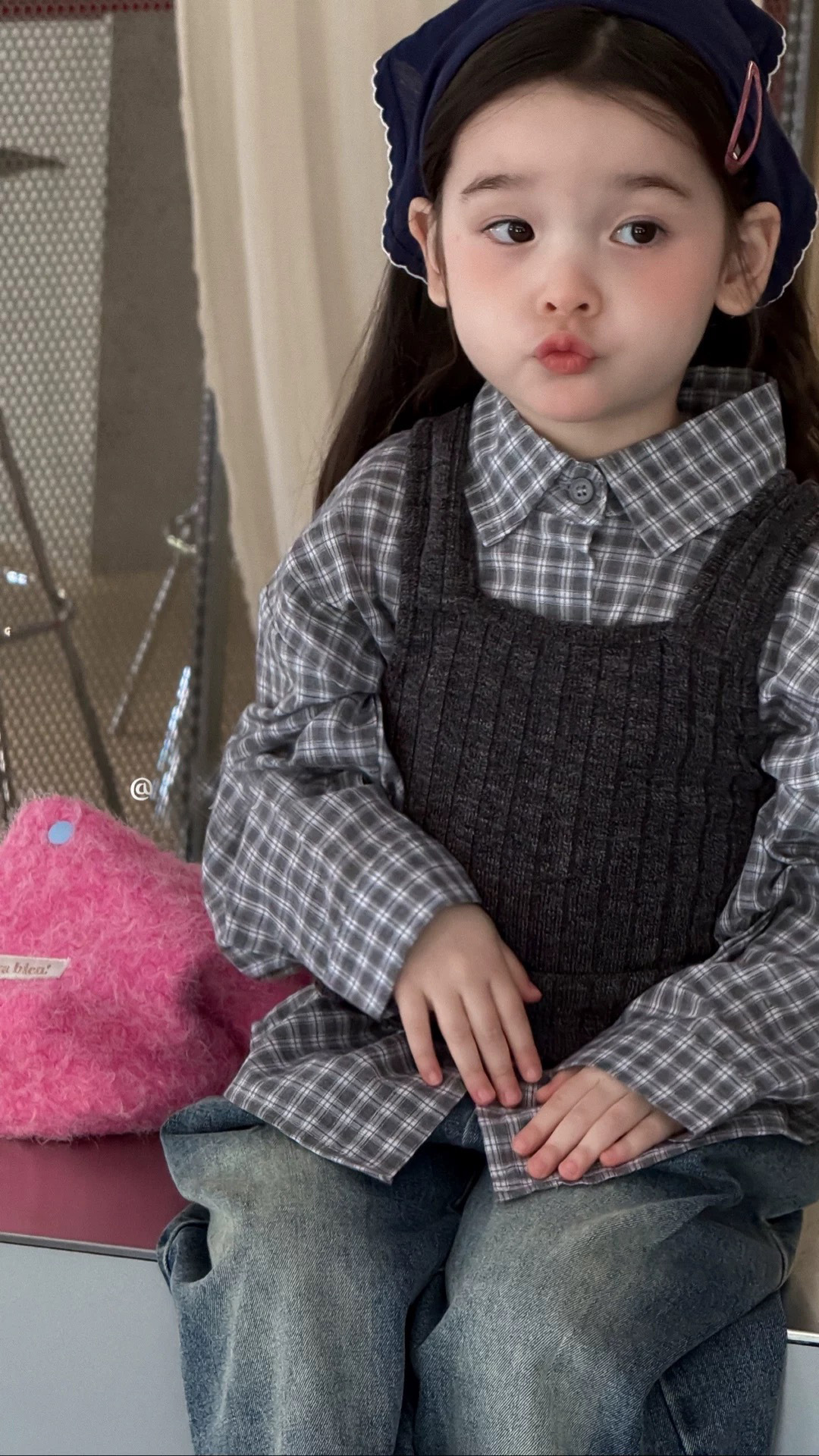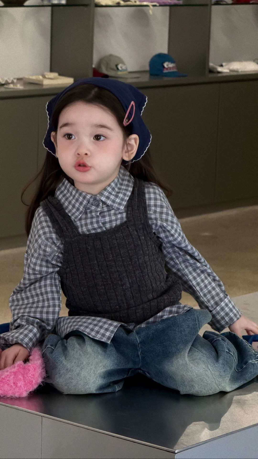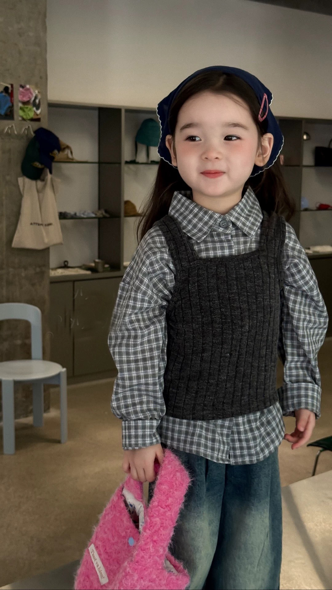 • 다크 그레이 스몰 서스펜더 스웨터