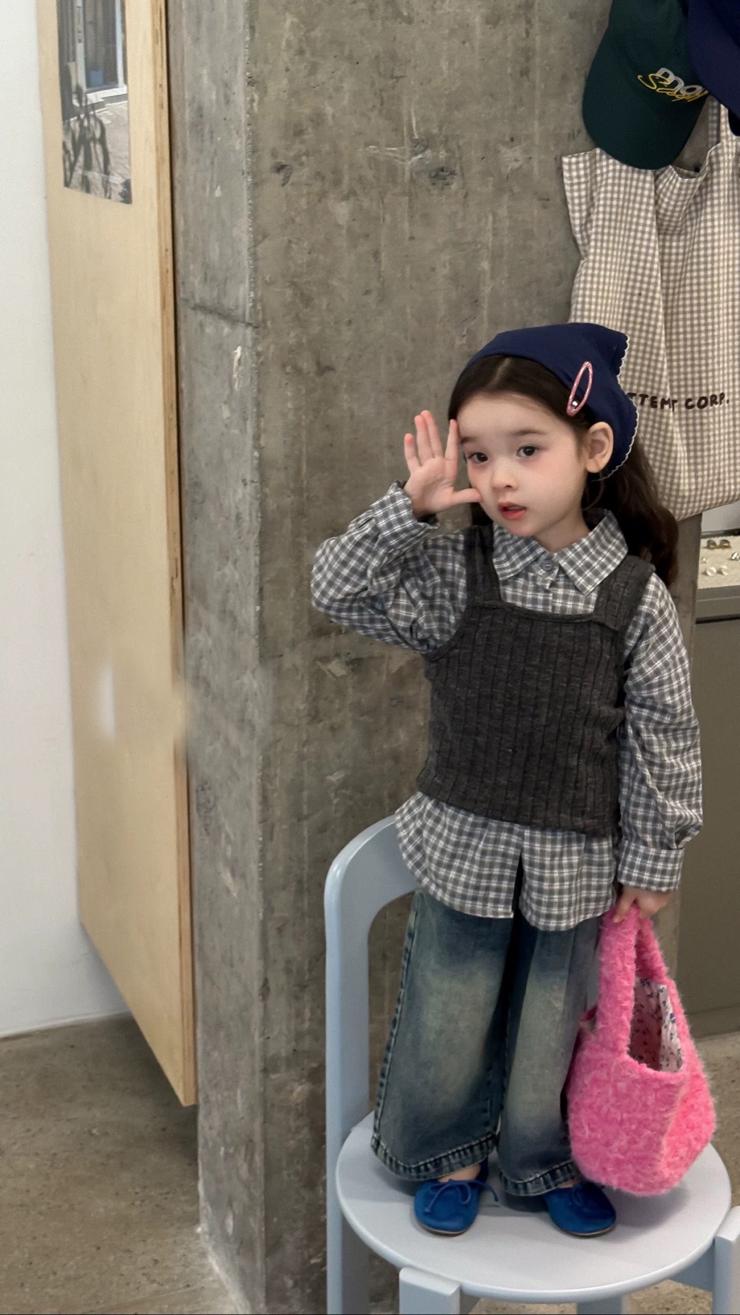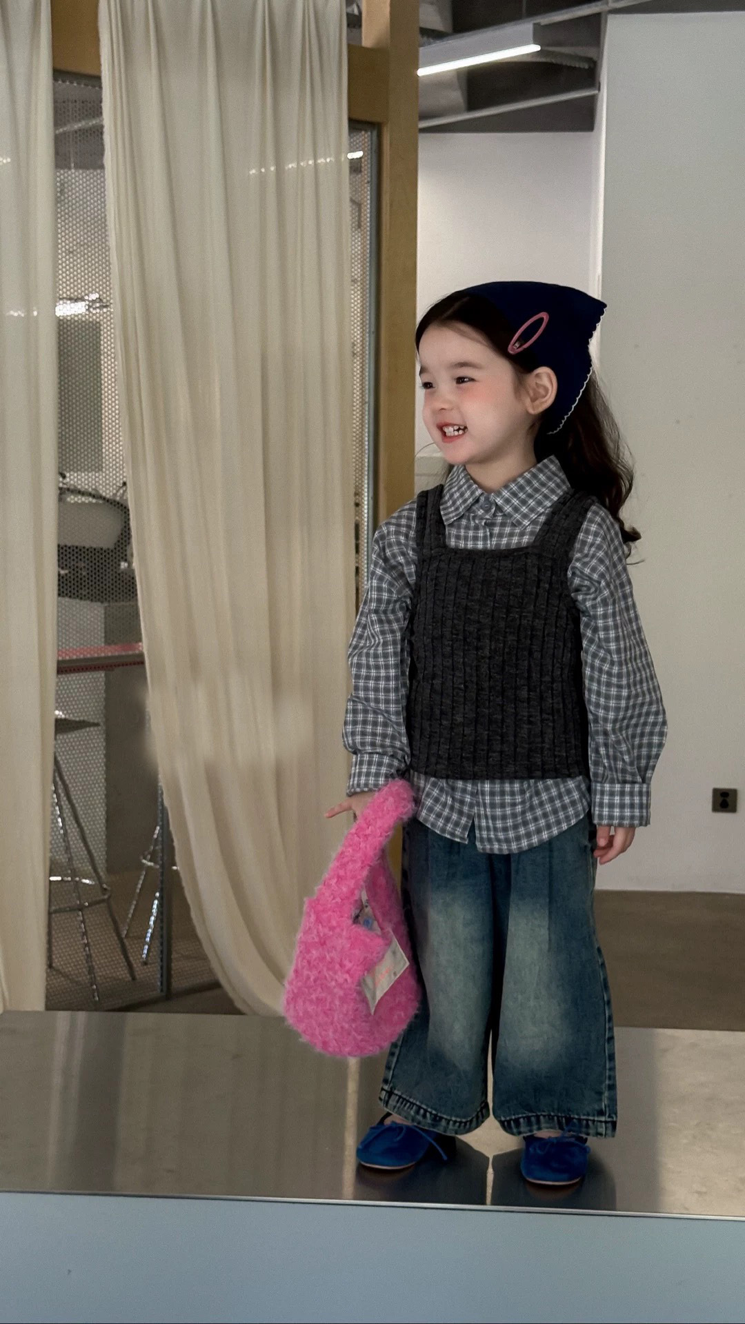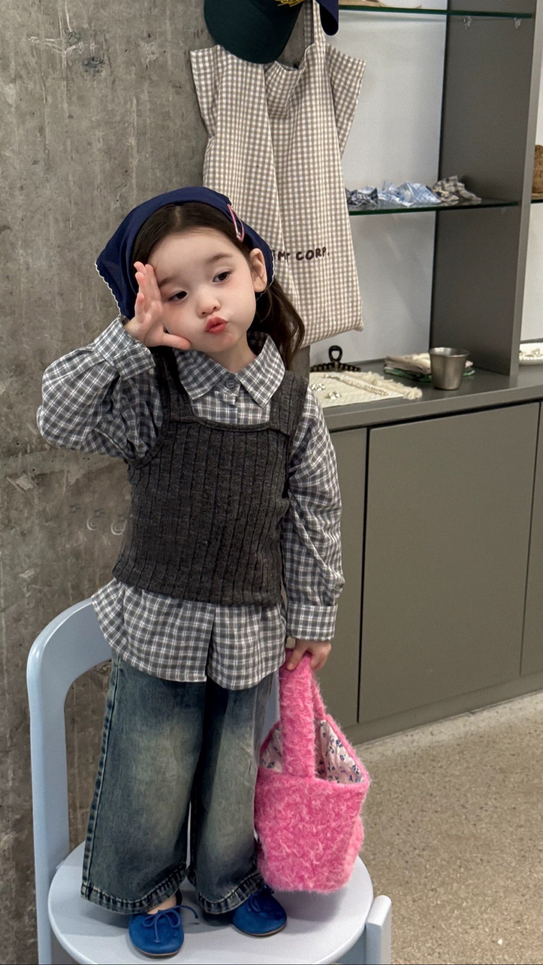 • 회색 격자 무늬 셔츠