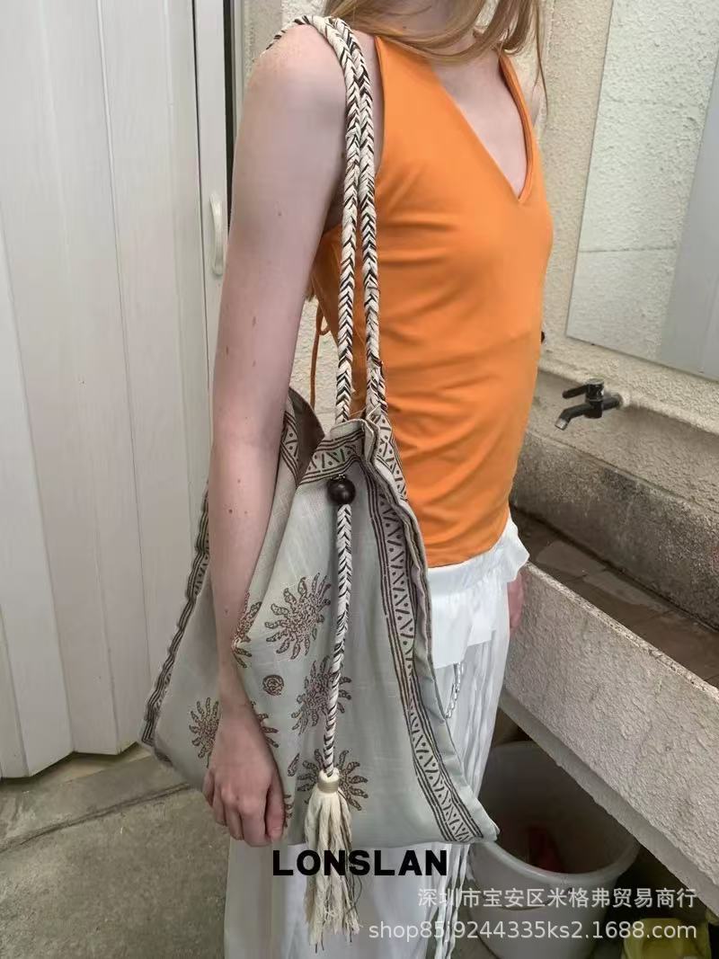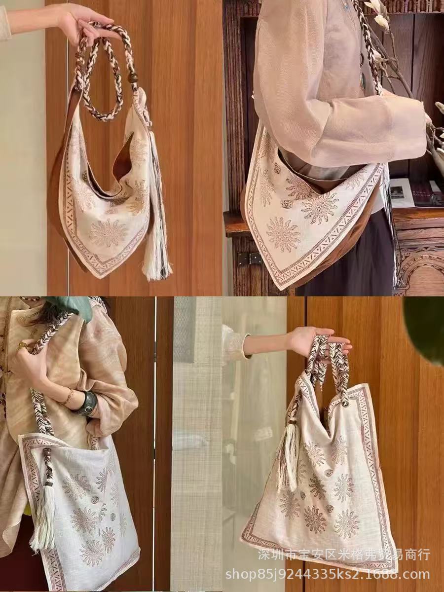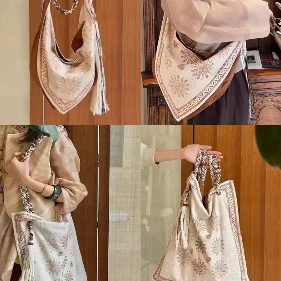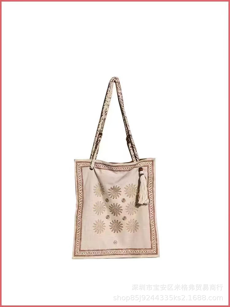보헤미안 휴가 대용량 핸드메이드 린넨 숄더백 틈새 디자인 통근 다용도 크로스백스토어 가기