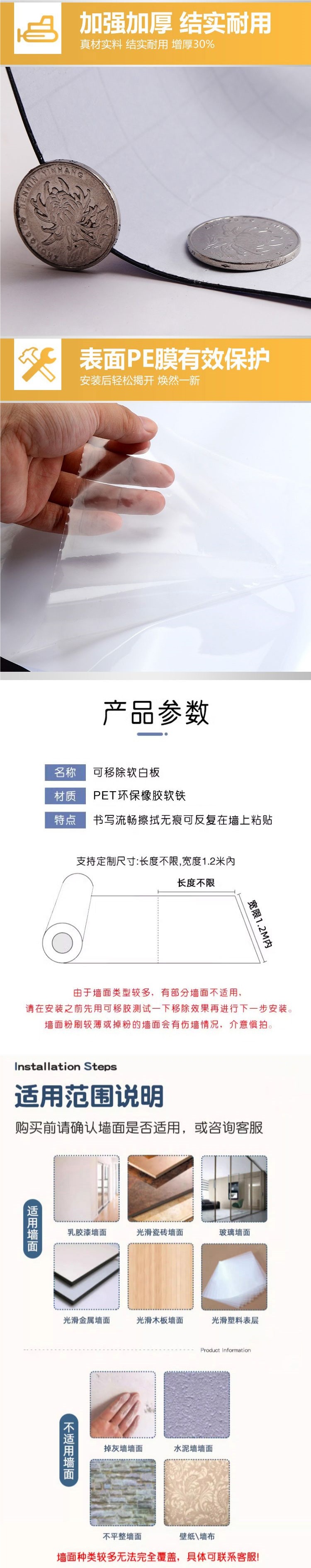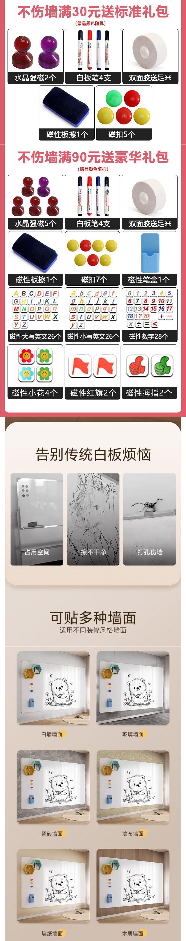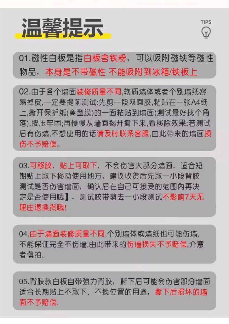 • 화이트보드[접착식 뒷면 포함]는 더 단단하게 붙어 있어 떼어내면 벽이 손상될 수 있습니다.