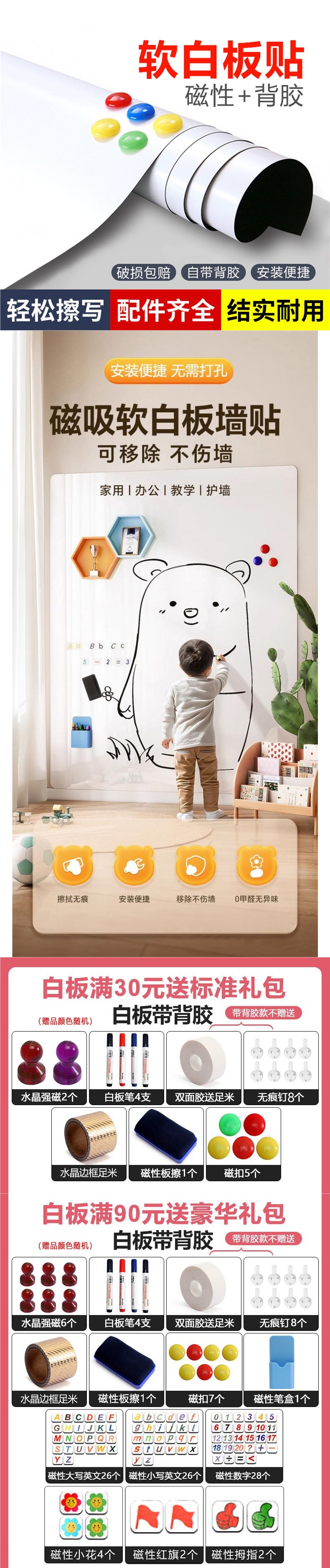 화이트 보드 벽 스티커 사무실 교육 스티커 자기 쓰기 보드 어린이 작은 가정용 지울 수있는 드로잉 보드스토어 가기
