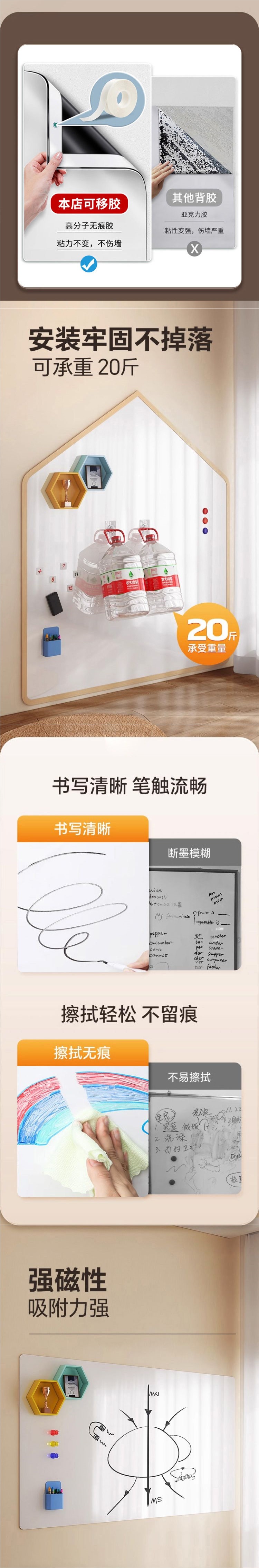 • 화이트보드 [흰색 페인트 벽 전용] - 벽을 손상시키지 않는 탈착식 접착제