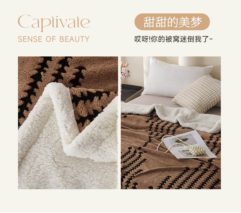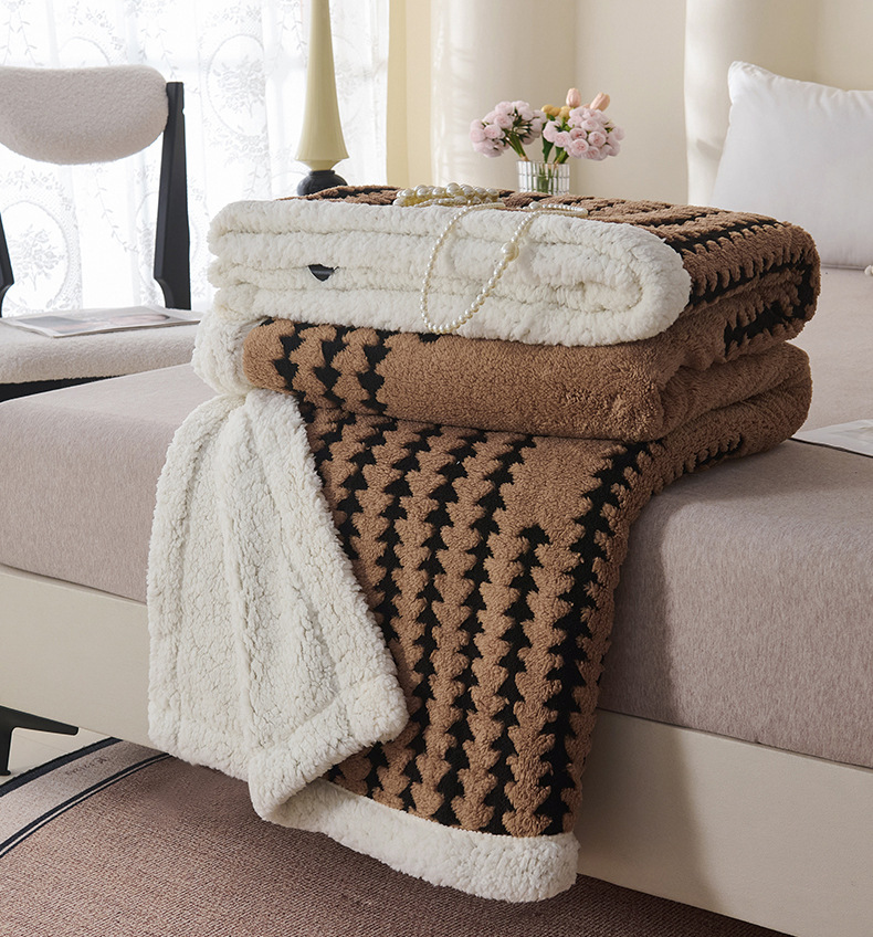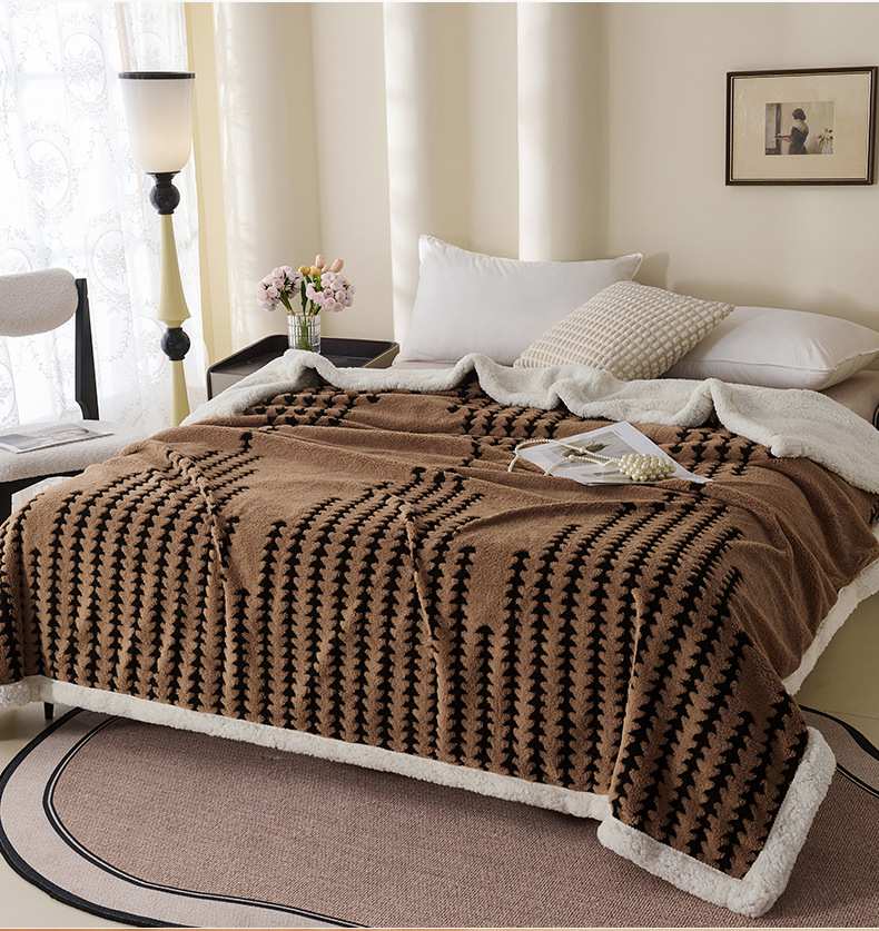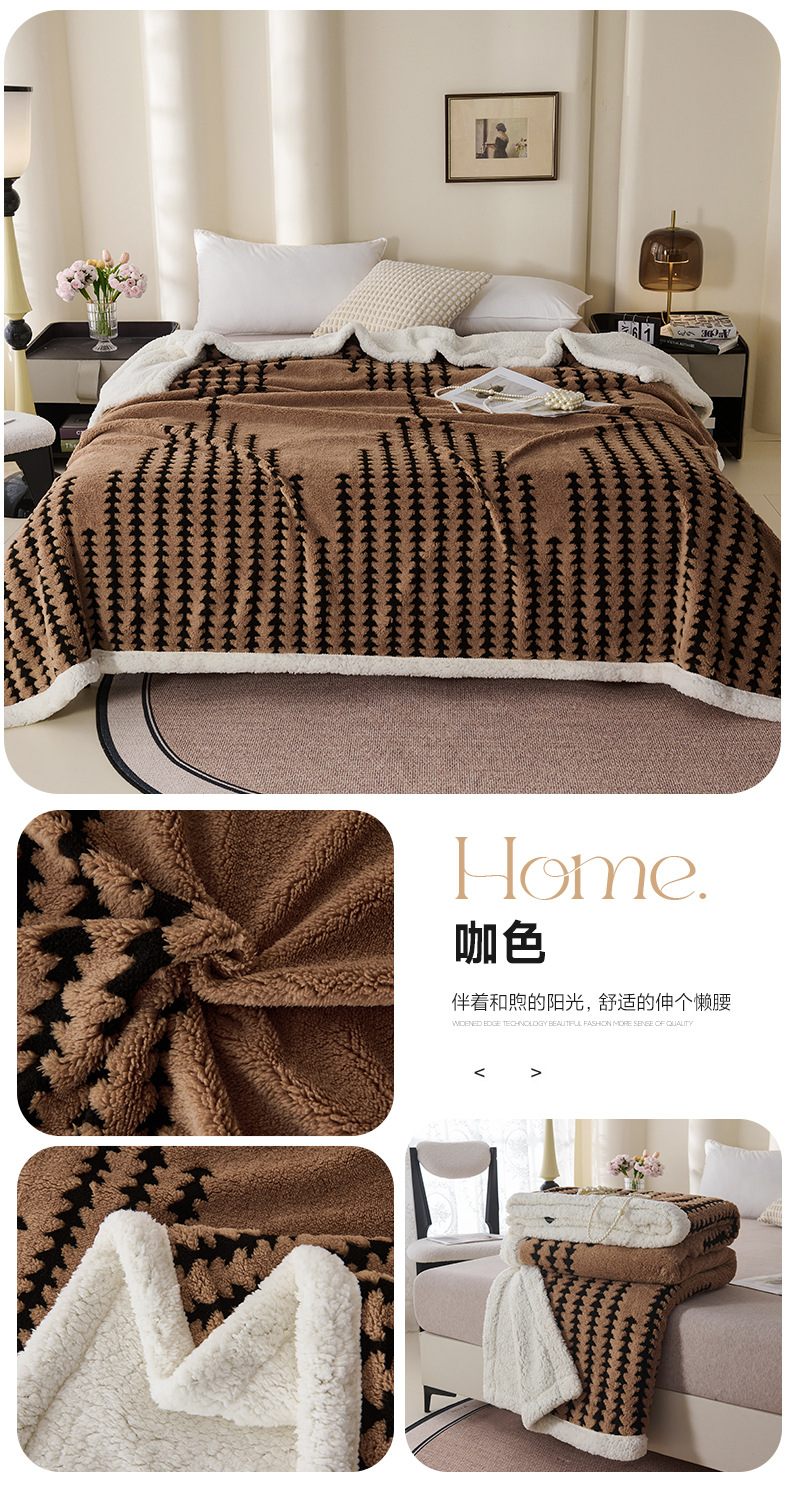 양이온 따뜻한 벨벳 자카드 더블 레이어 담요 가정용 두꺼운 담요 점심 담요 싱글 및 더블 학생 기숙사 봄, 가을, 겨울
