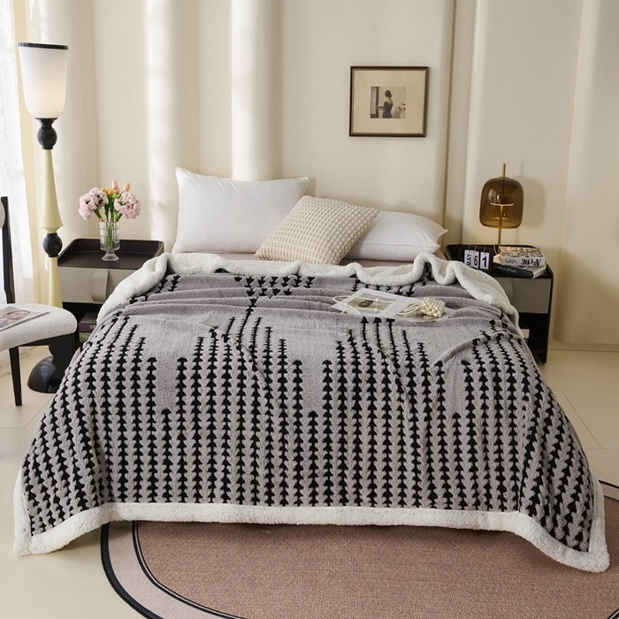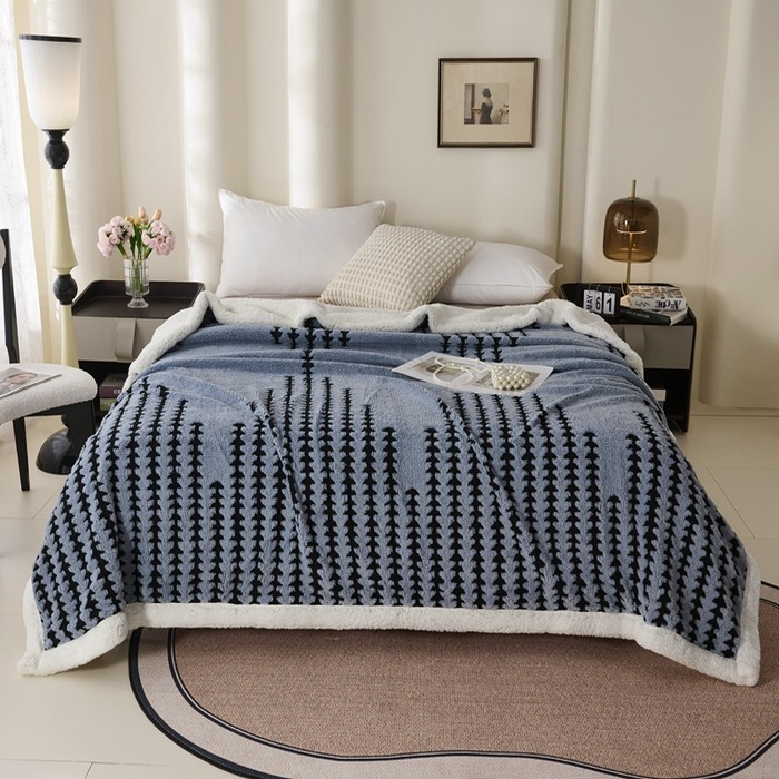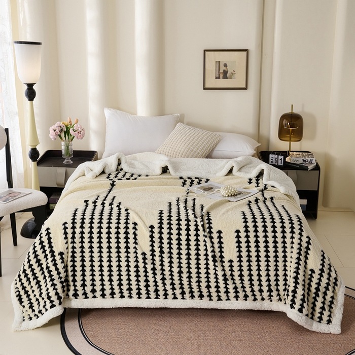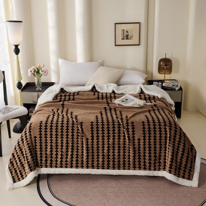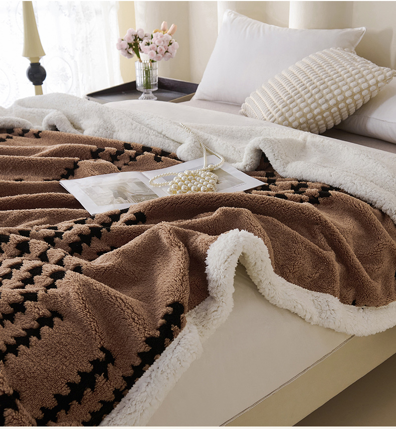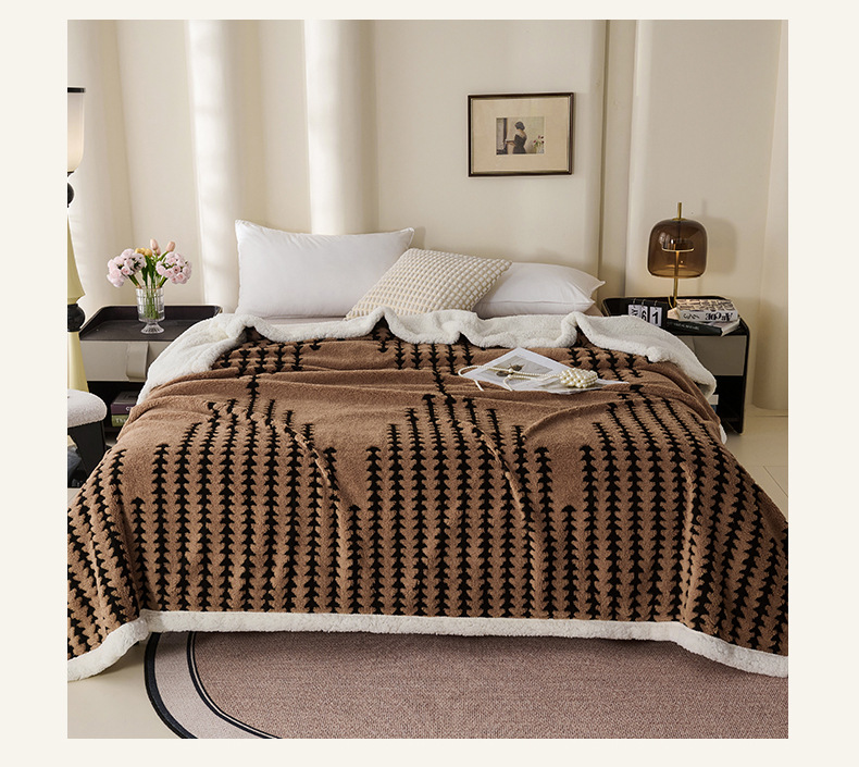 양이온 따뜻한 벨벳 자카드 더블 레이어 담요 가정용 두꺼운 담요 점심 담요 싱글 및 더블 학생 기숙사 봄, 가을, 겨울