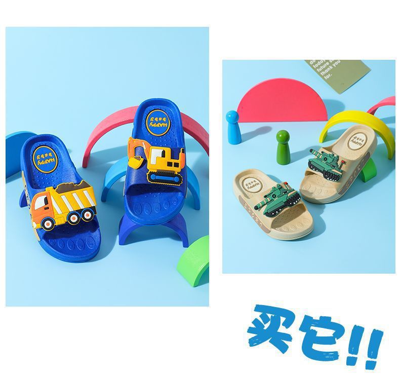 어린이 슬리퍼 여름 소년과 소녀 만화 귀여운 굴삭기 샌들 미끄럼 방지 중대형 어린이 인터넷 연예인 샌들스토어 가기