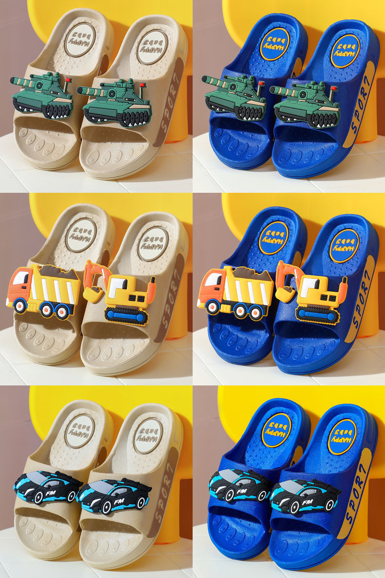 어린이 슬리퍼 여름 소년과 소녀 만화 귀여운 굴삭기 샌들 미끄럼 방지 중대형 어린이 인터넷 연예인 샌들
