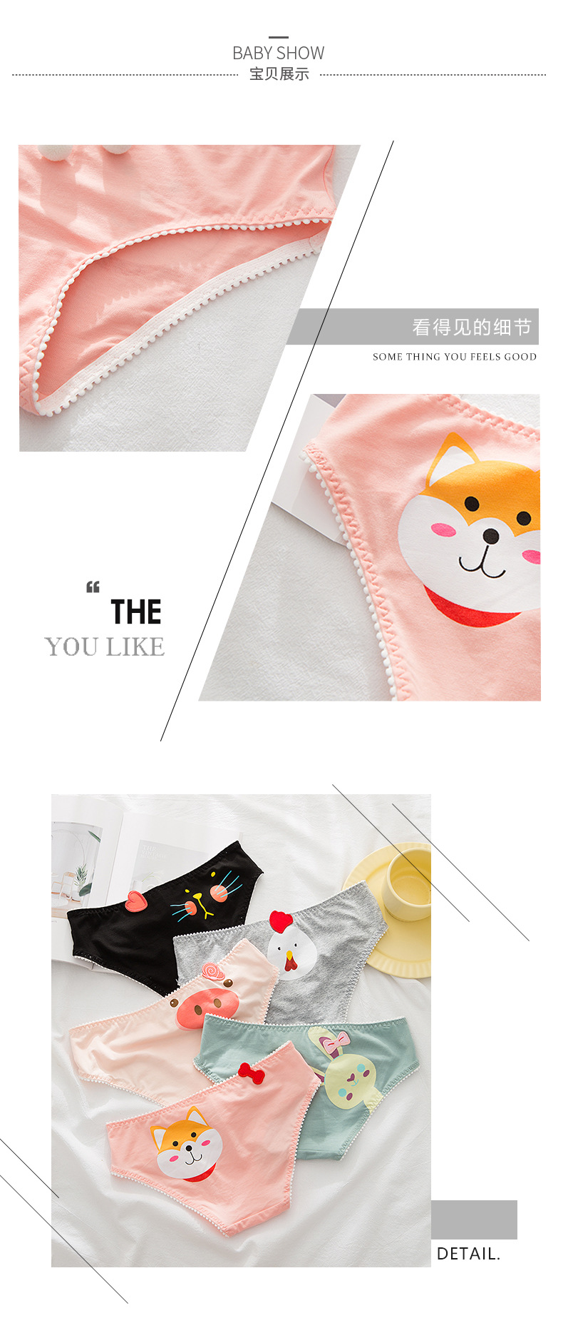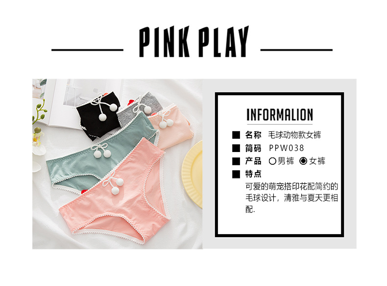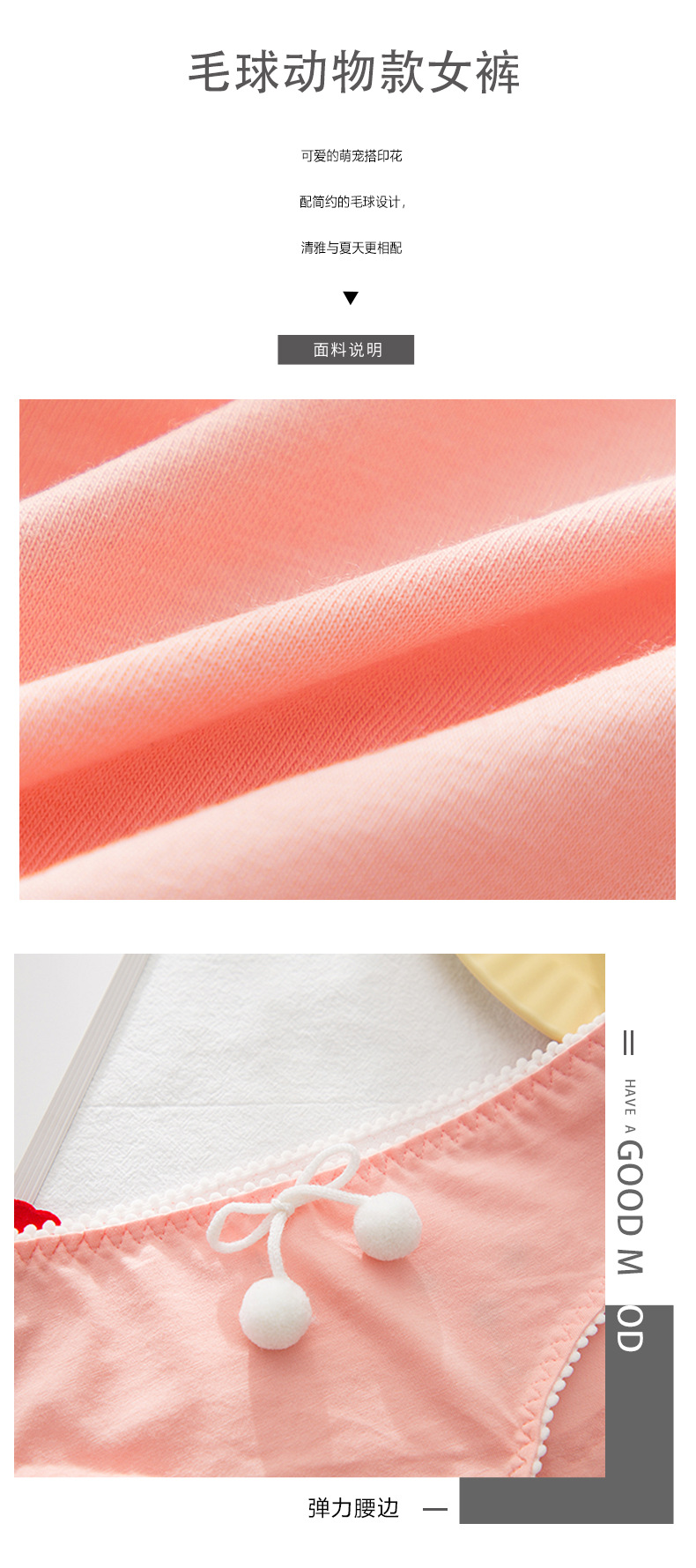 새로운 로우 웨이스트 모피 볼 동물 스타일 여성용 Zhongshan 속옷, 달콤하고 섹시하며 귀여운 여성용 팬티