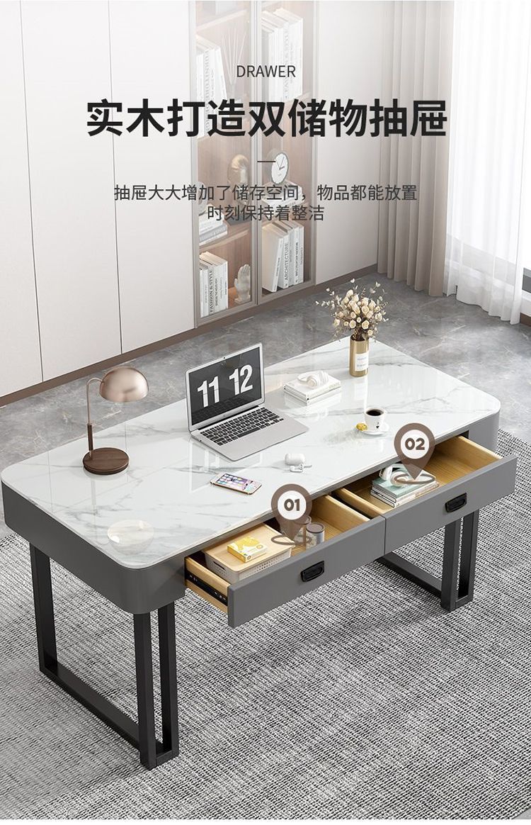 Jmo 컴퓨터 책상 락 슬레이트 데스크탑 홈 라이트 럭셔리 현대 미니멀리스트 침실 테이블 의자 사무실 책상 드레싱 테이블 올인원스토어 가기