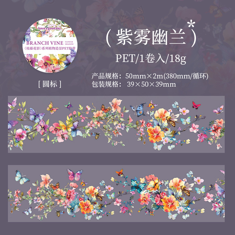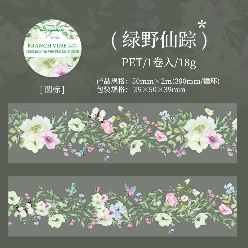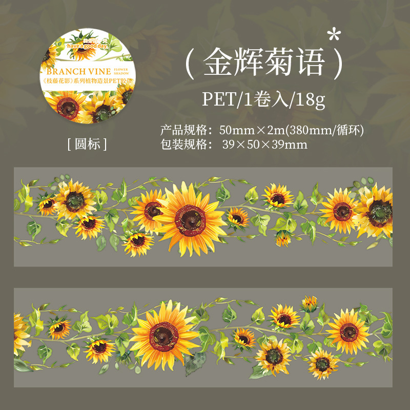 지팡이 꽃 그림자 시리즈 아름다운 하루 PET 테이프 식물 조경 핸드북 DIY 장식 사이클링 스티커 6가지 스타일스토어 가기