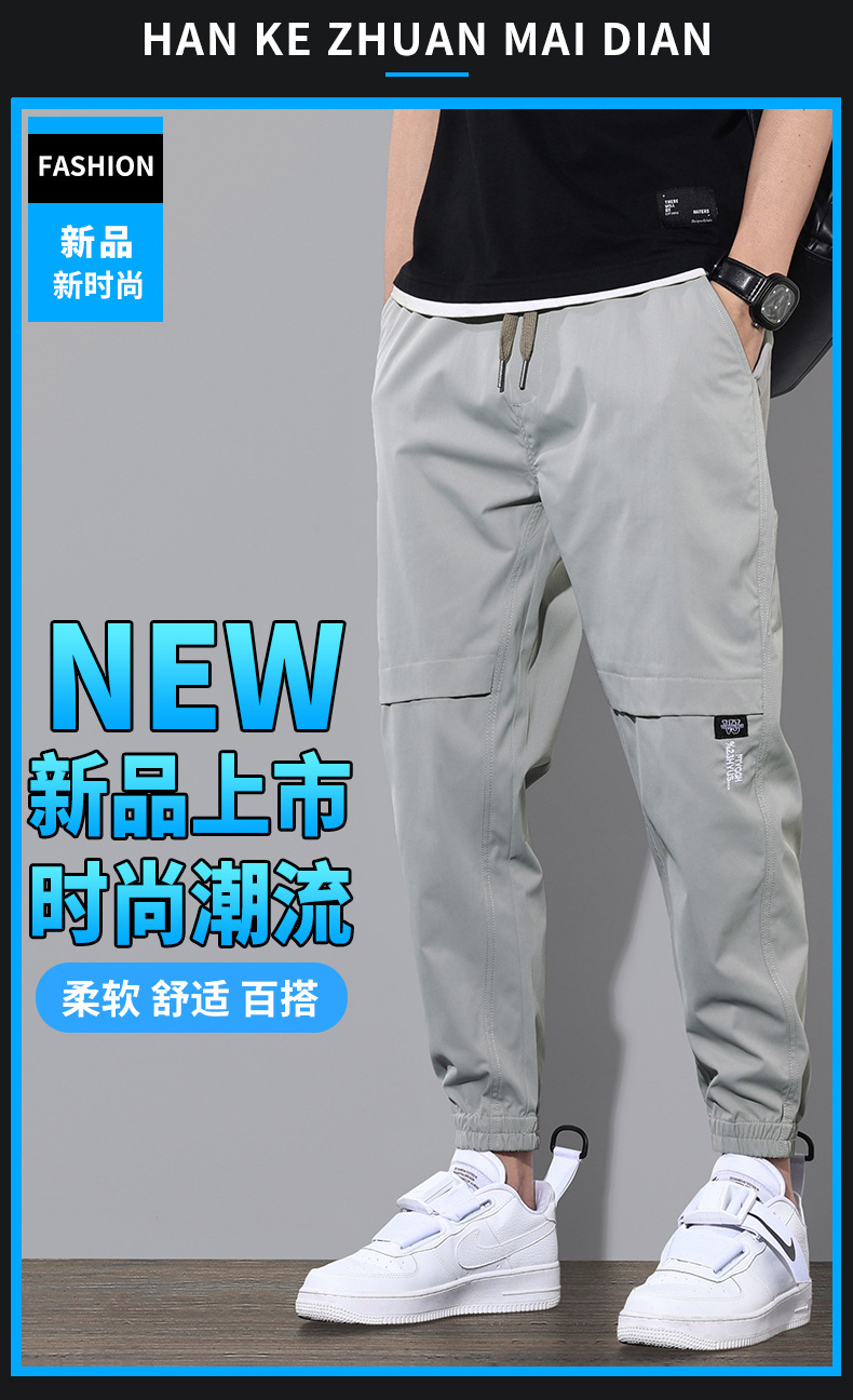 2025 여름 작업복 캐주얼 긴 바지 남성 루즈한 스포츠 바지 트렌디한 얇은 봄 9부 레깅스스토어 가기