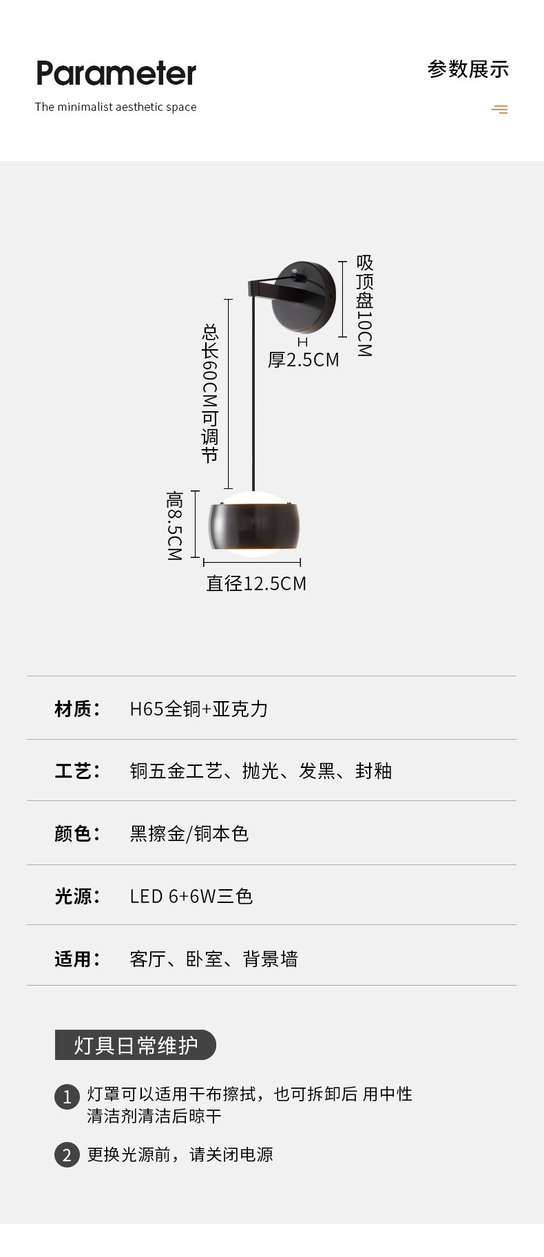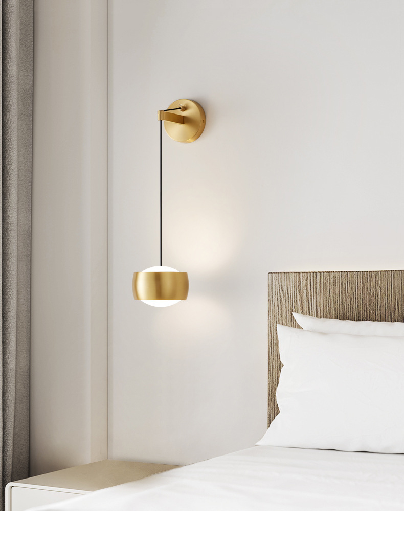 현대적인 가벼운 고급 전체 구리 램프 침실 머리맡 교수형 벽 램프 북유럽 디자이너 크리 에이 티브 마스터 침실 미니멀리스트 벽 램프스토어 가기