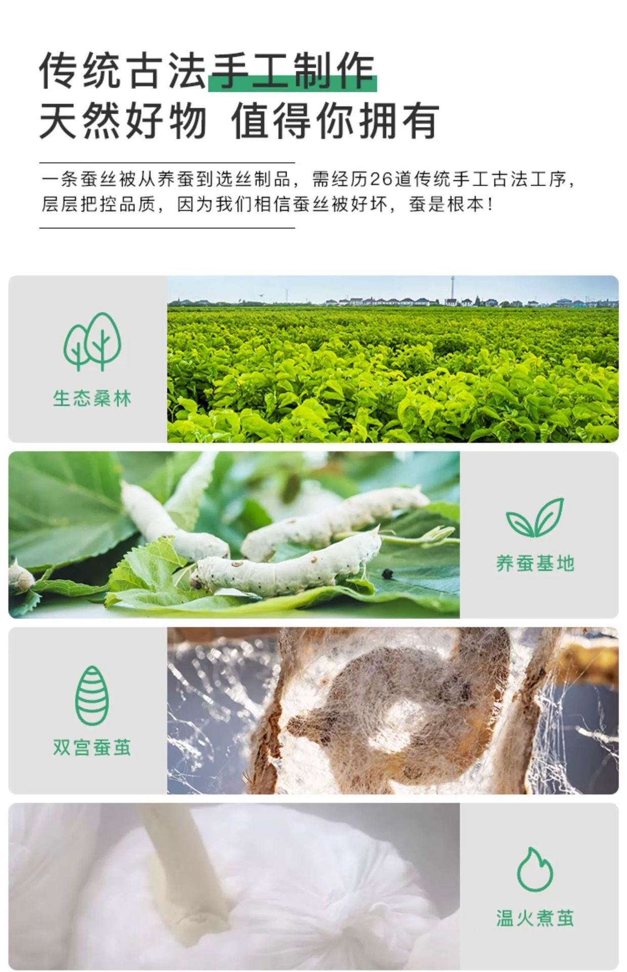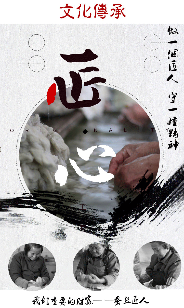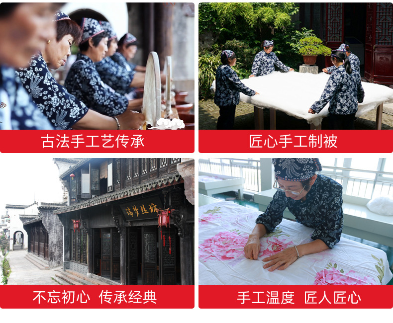 每条蚕丝被都是纯手工拉丝、手工定制。拉链口有80厘米,拉开即可看到里面全部蚕丝。