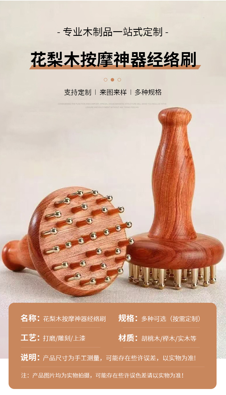 황동 경락 브러시 전신용, 흰단나무 손잡이, 복부 마사지 도구, 지방 감소 및 간 담낭 마사지, 목재스토어 가기
