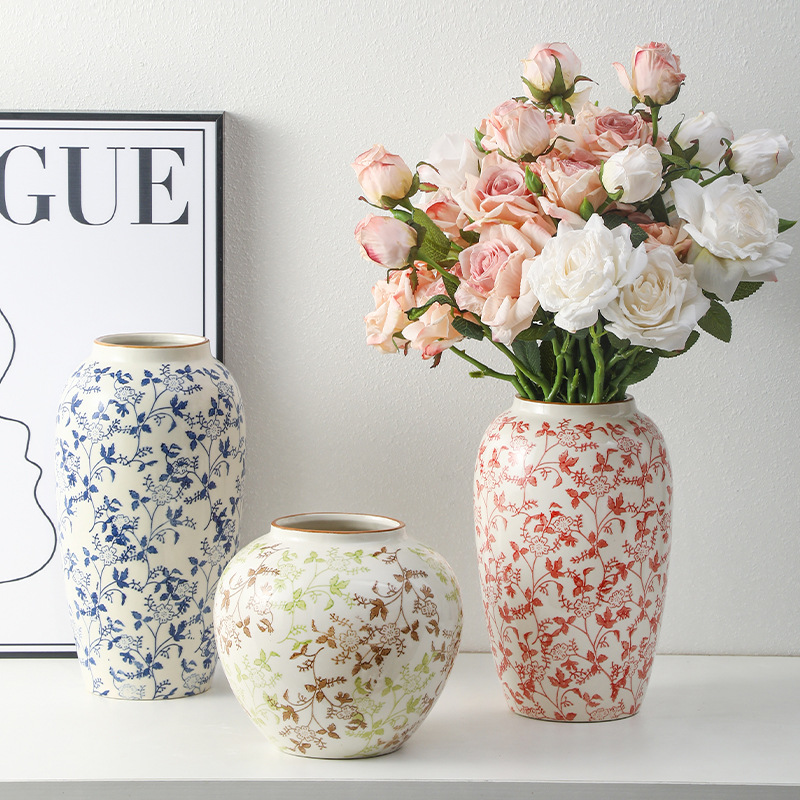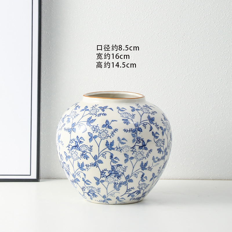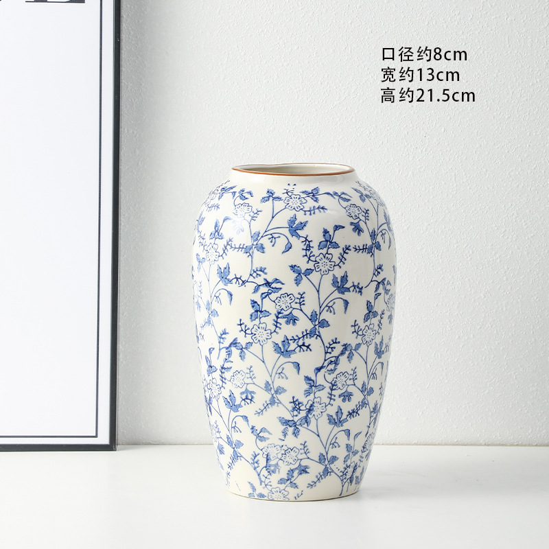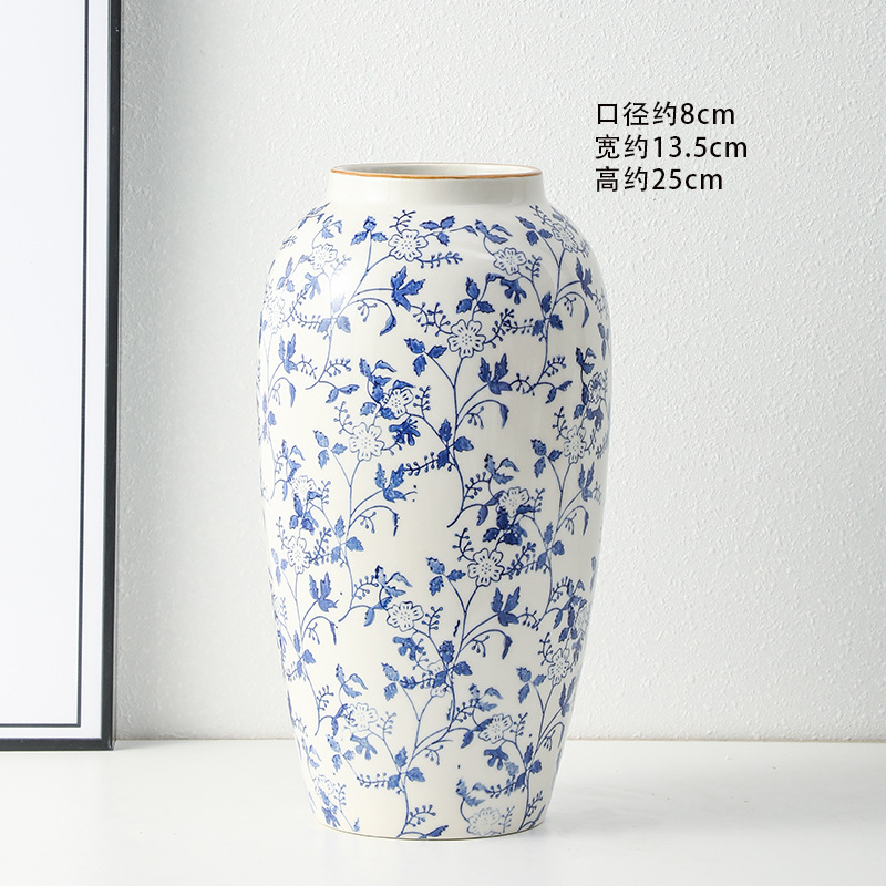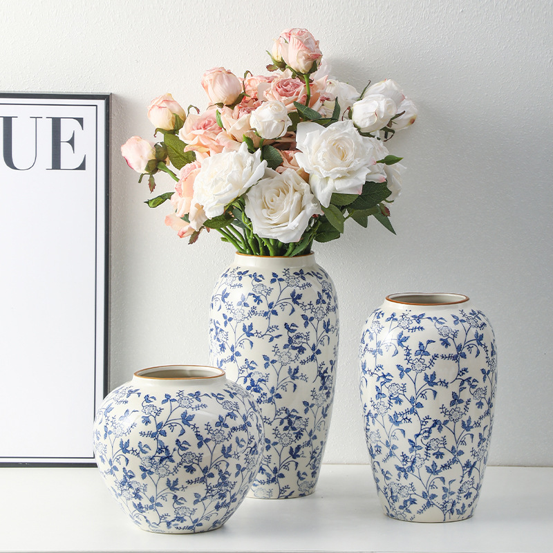 고급 복고풍 새로운 중국 스타일 파란색과 흰색 도자기 꽃병 3 피스 세트 레스토랑 꽃꽂이 홈 장식 장식품스토어 가기