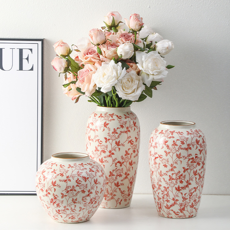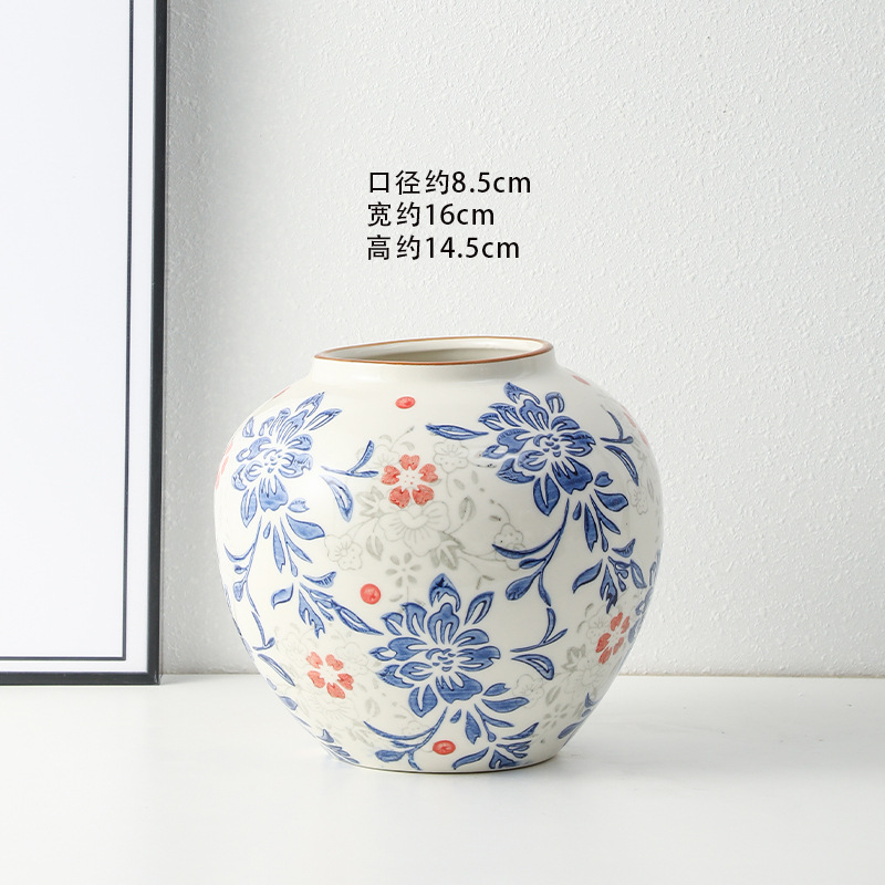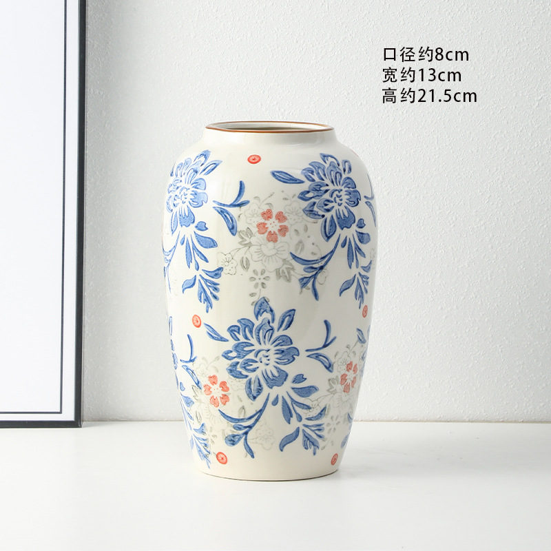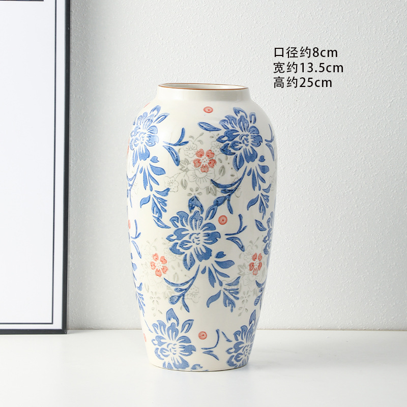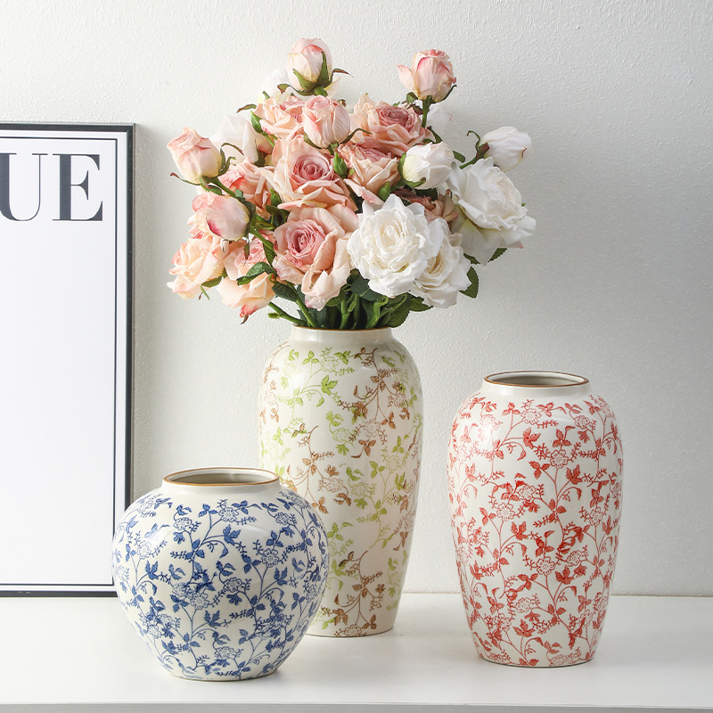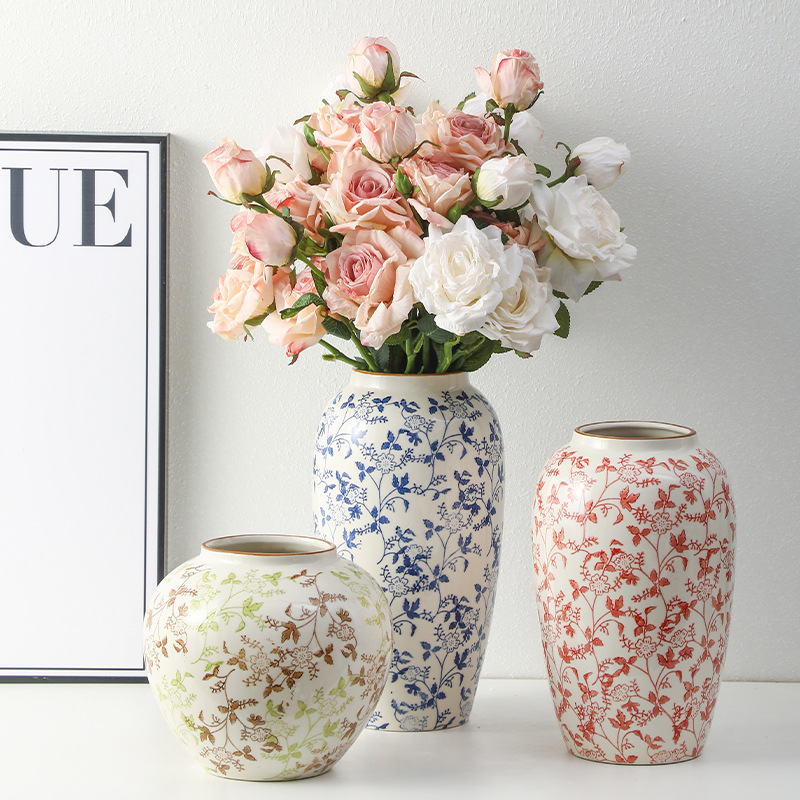 고급 복고풍 새로운 중국 스타일 파란색과 흰색 도자기 꽃병 3 피스 세트 레스토랑 꽃꽂이 홈 장식 장식품스토어 가기
