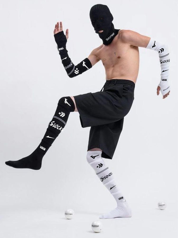 유럽과 미국의 트렌디 브랜드 Doublet 스포츠 슈트 레이어드 디자인 긴 양말 스트리트 슬리브 트렌디 인 스타일 남성과 여성