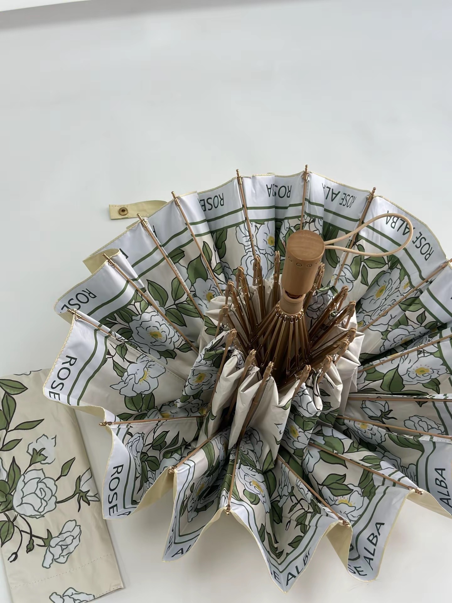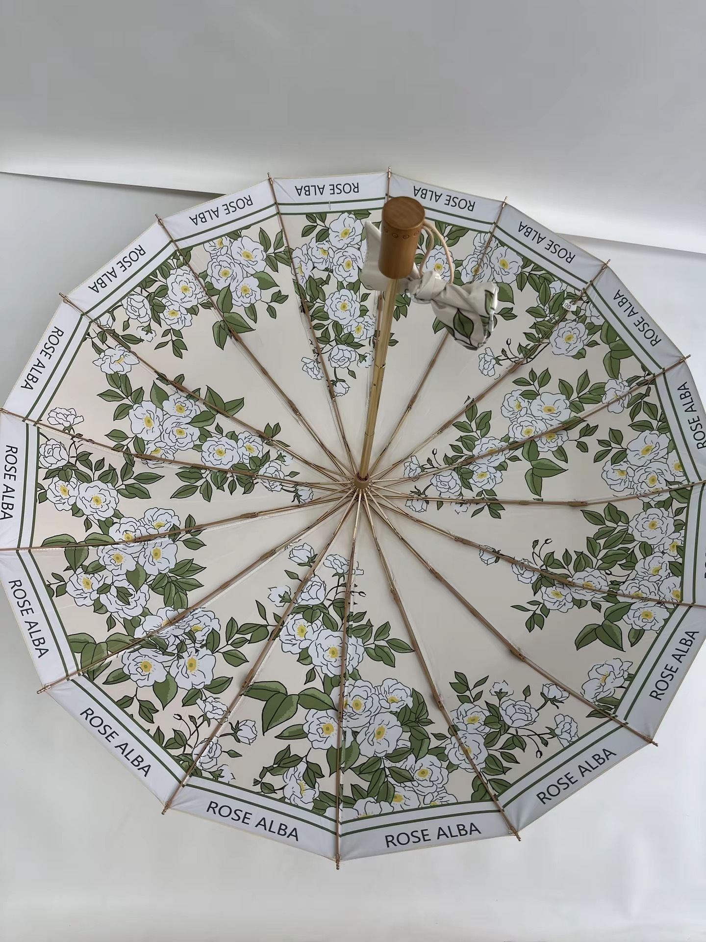 고대 스타일 16 본 우산 대형 접는 우산 비 또는 빛 여성용 파라솔 태양 보호 UV 컬러 접착제 태양 우산
