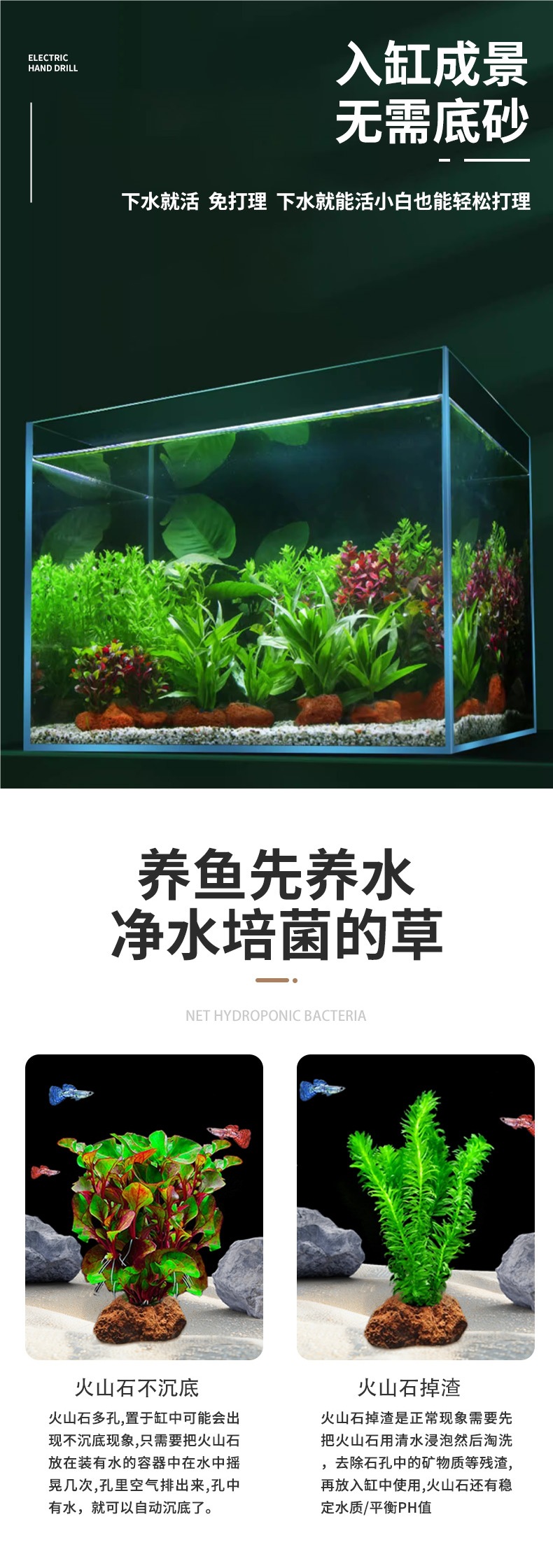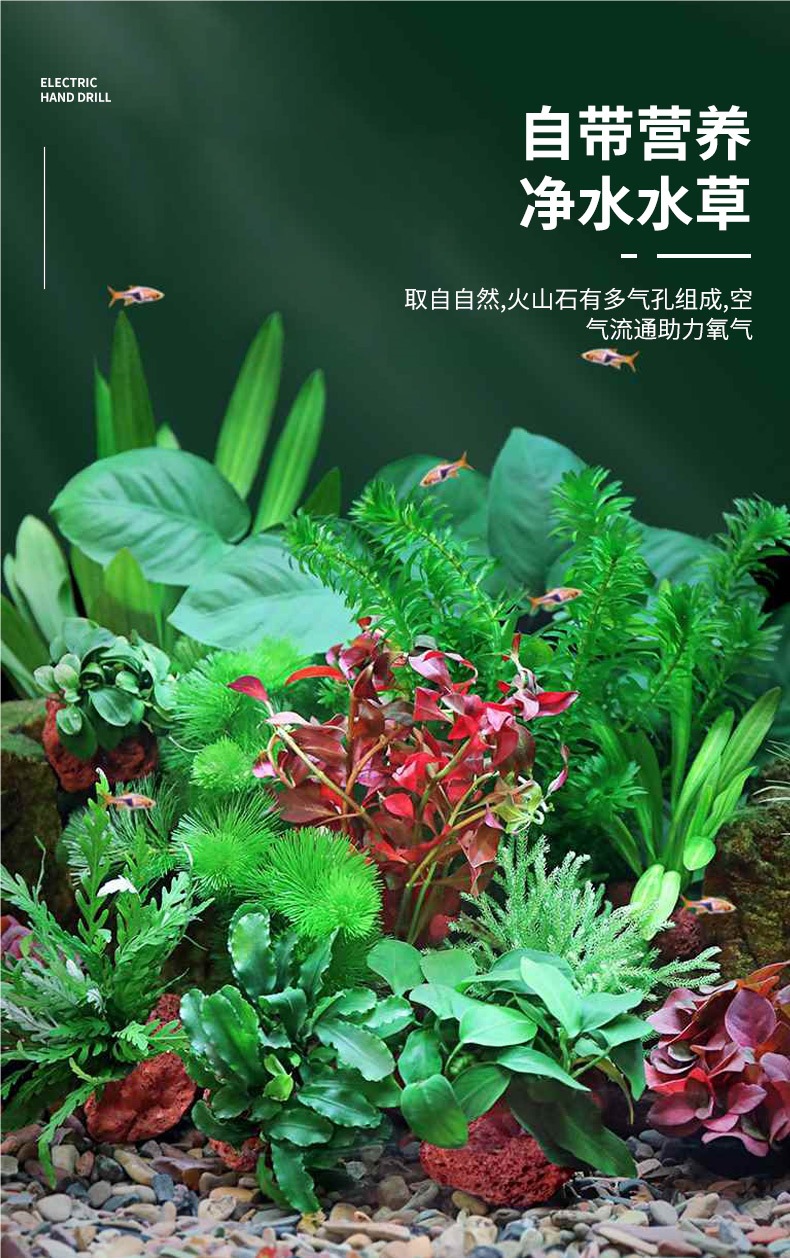화산석 수초, 진짜 잔디, 수조 수초 조경, 게으른 초보자 어항 패키지, 후경 잔디, 백합잔디