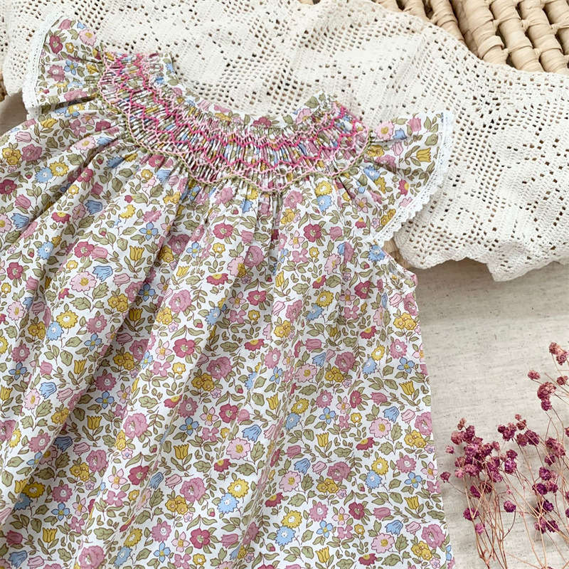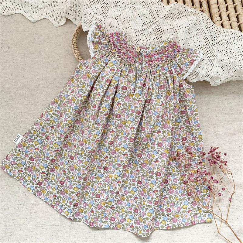 보헤미안 스타일 소녀 꽃무늬 드레스 봄과 여름 베이비 민소매 얇은 면 스커트 휴가 드레스