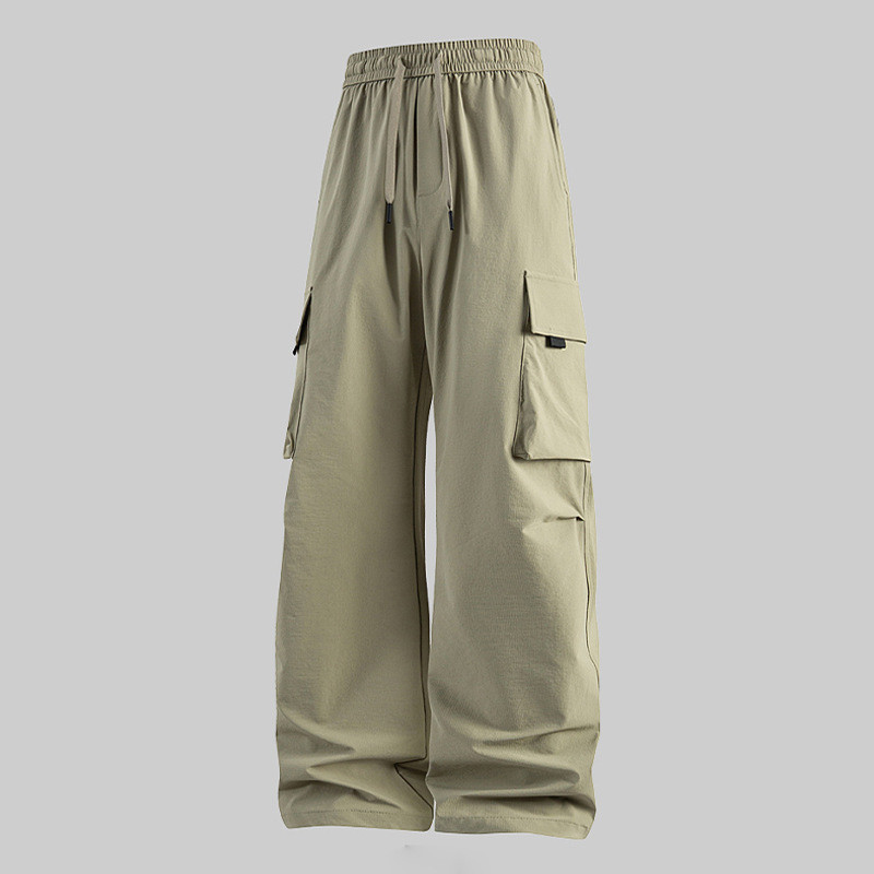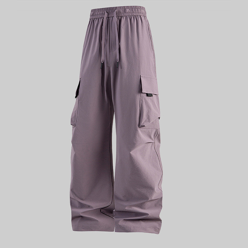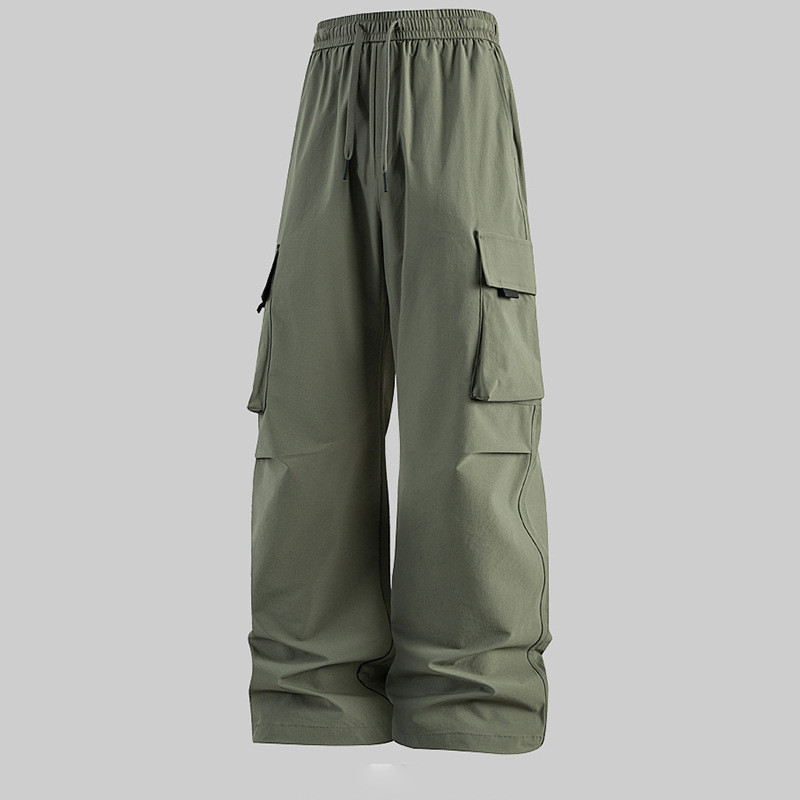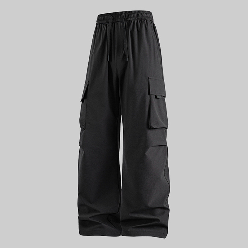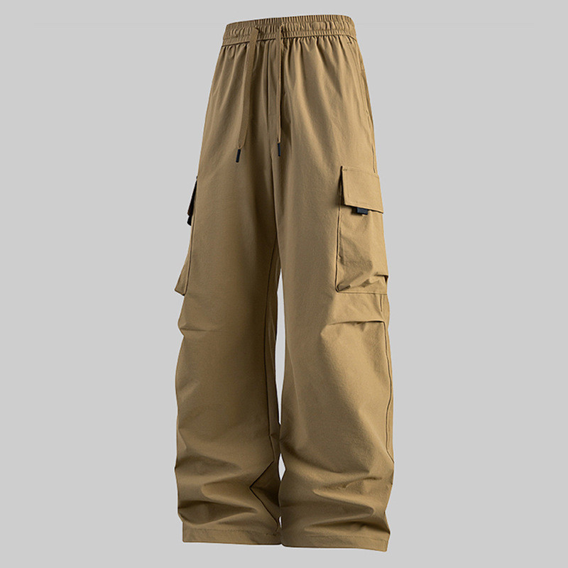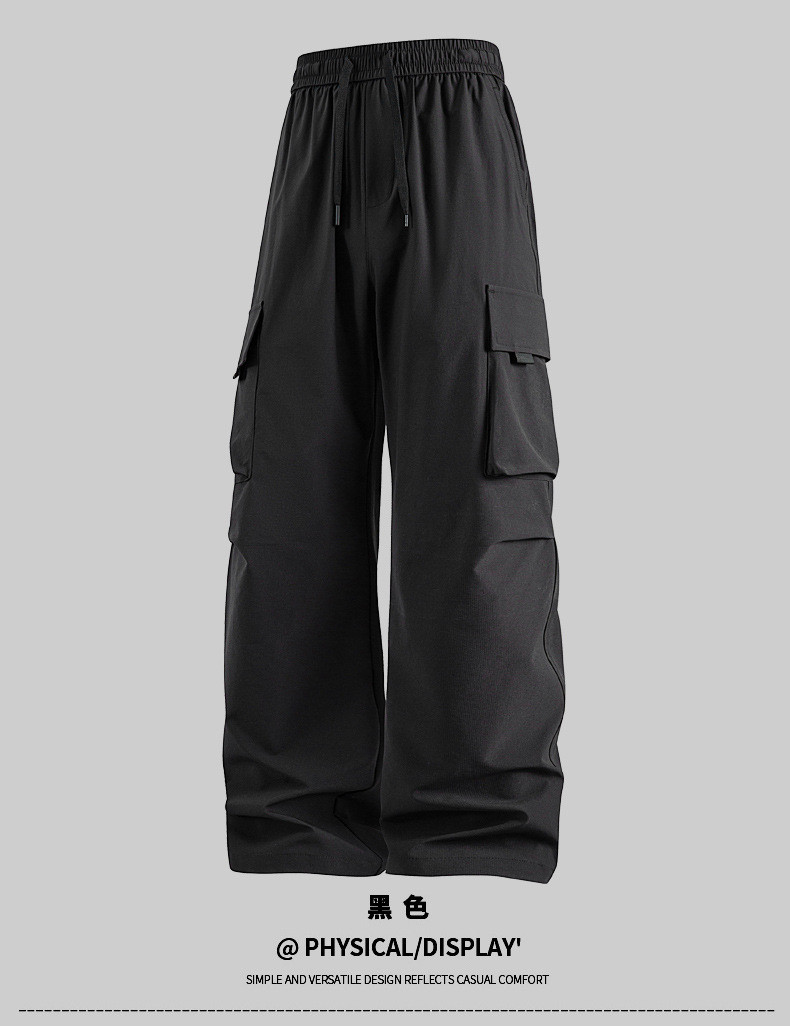 D5O 대형 포켓 방수 바지 하이 웨이스트 슬리밍 남성과 여성의 새로운 작업복 다용도 루즈 커플 와이드 레그 팬츠